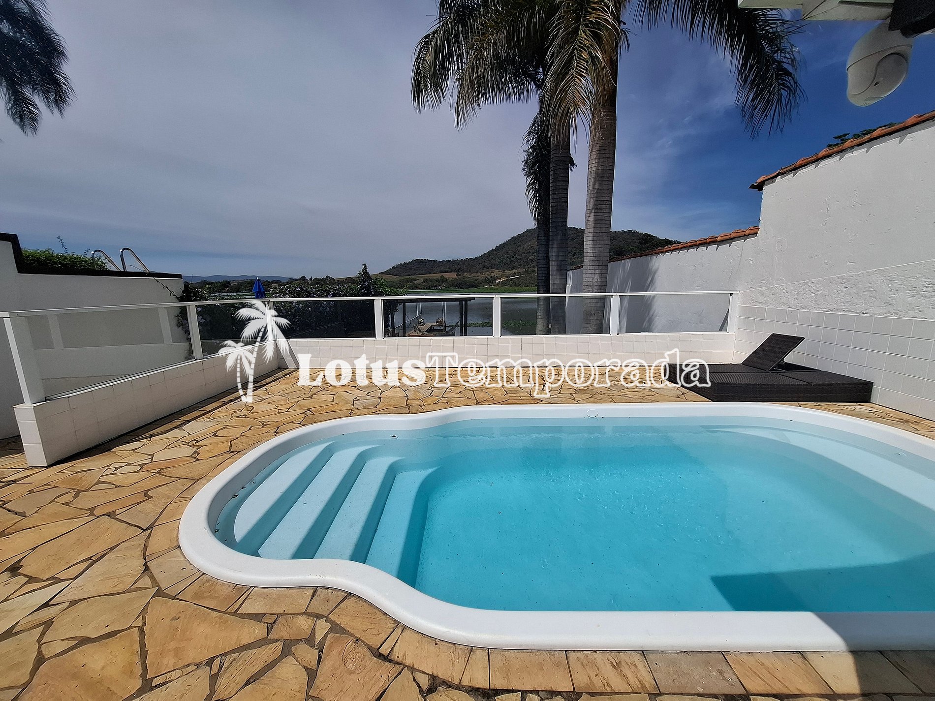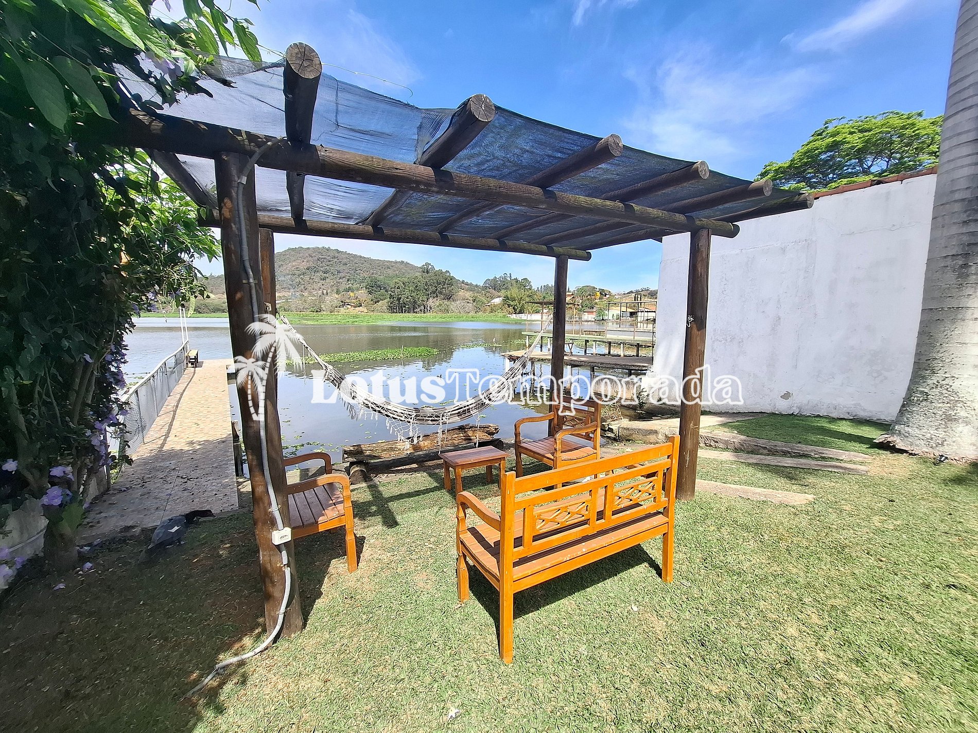 Na área externa, você encontra uma piscina com vista privilegiada para a represa e um pergolado com bancos rústicos, ideal para relaxar e apreciar o pôr do sol. O acesso à represa está disponível para atividades (consulte as condições).