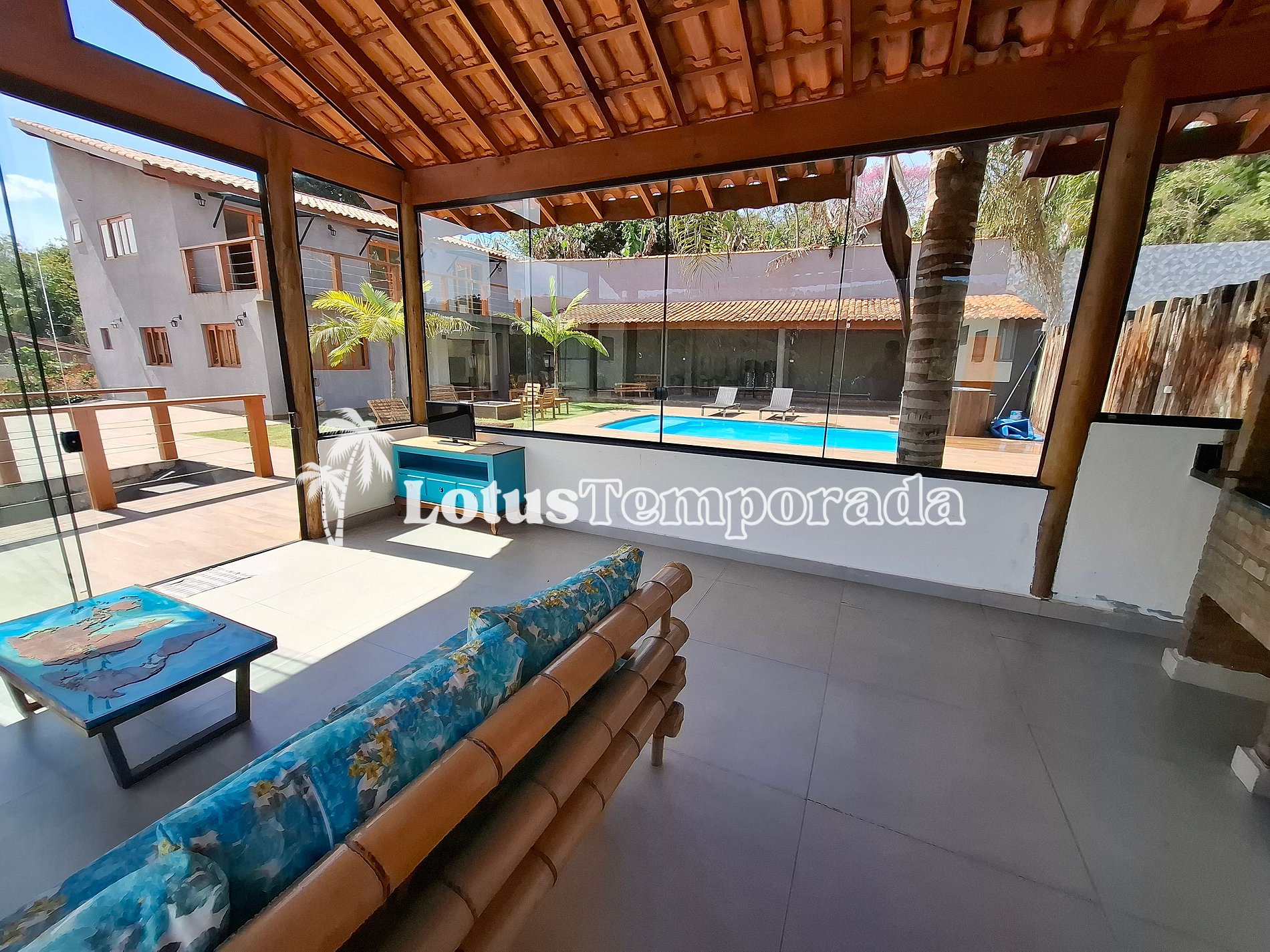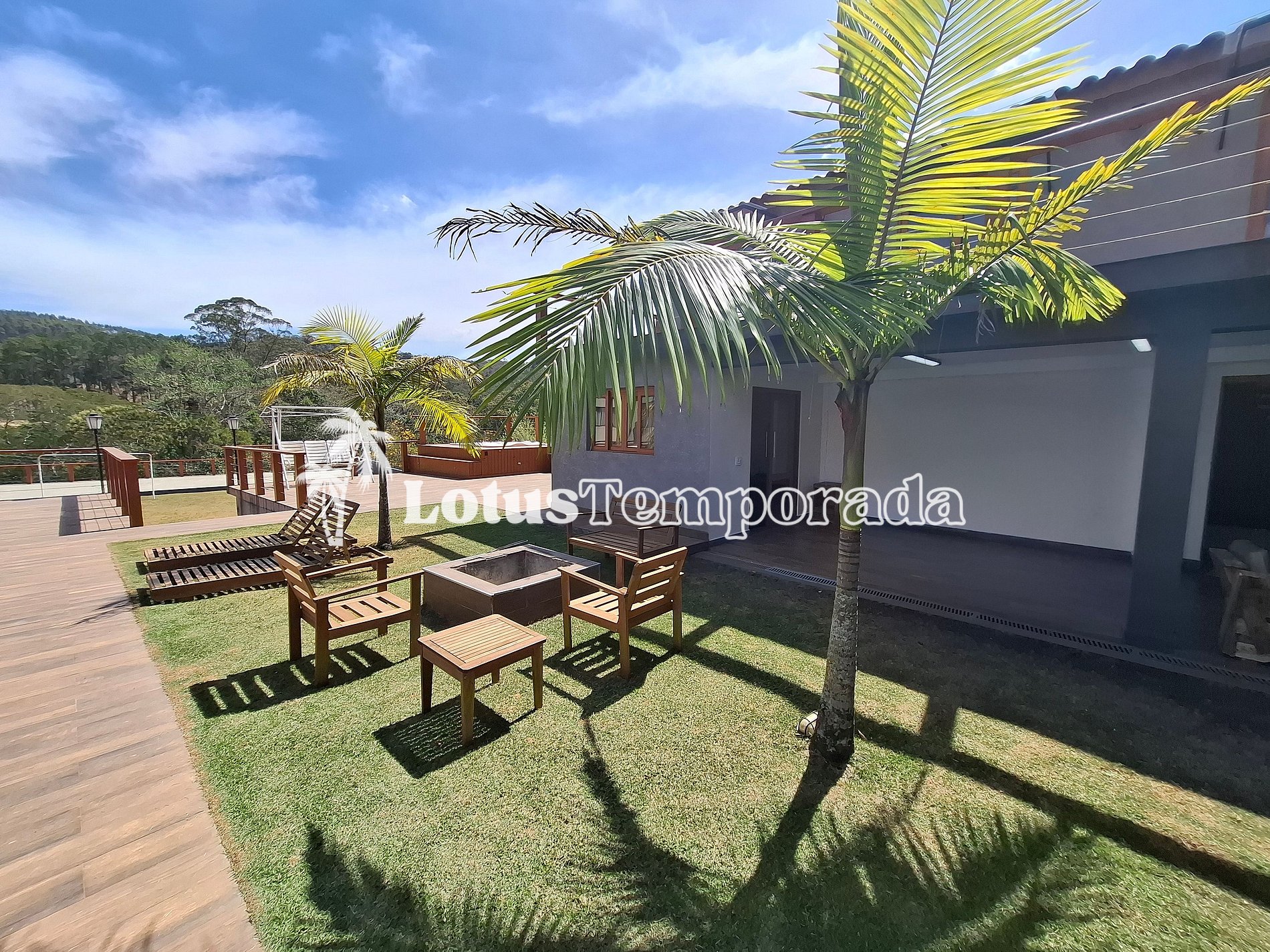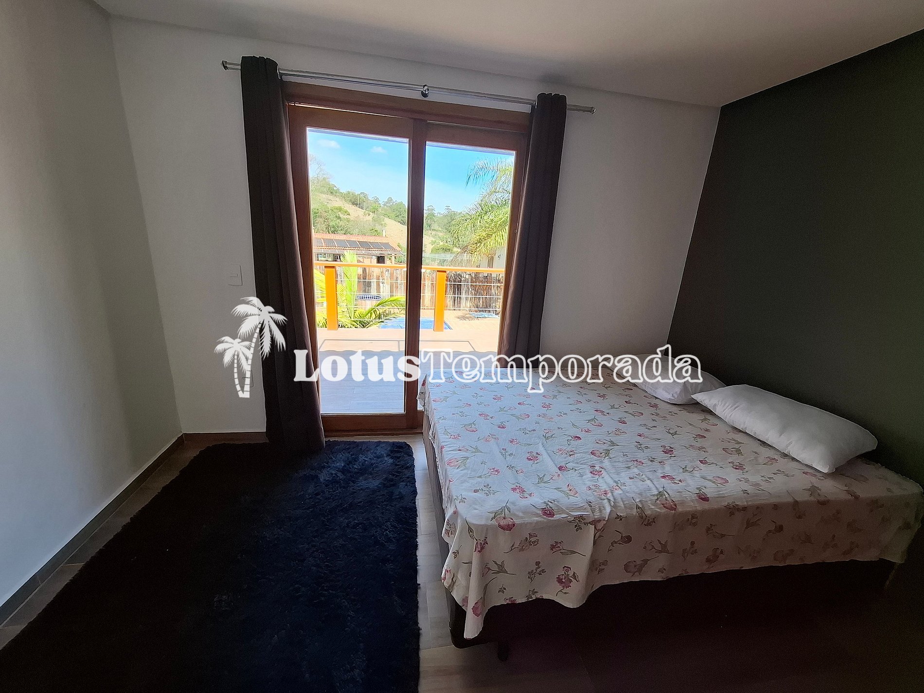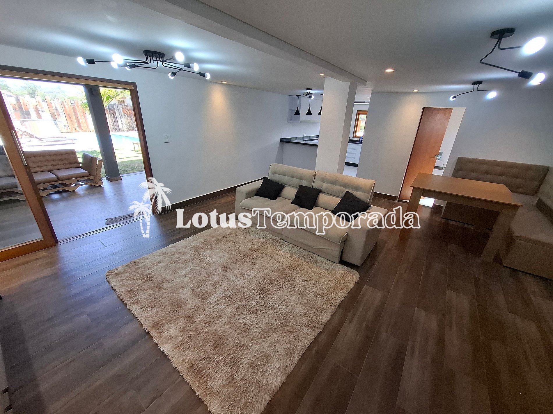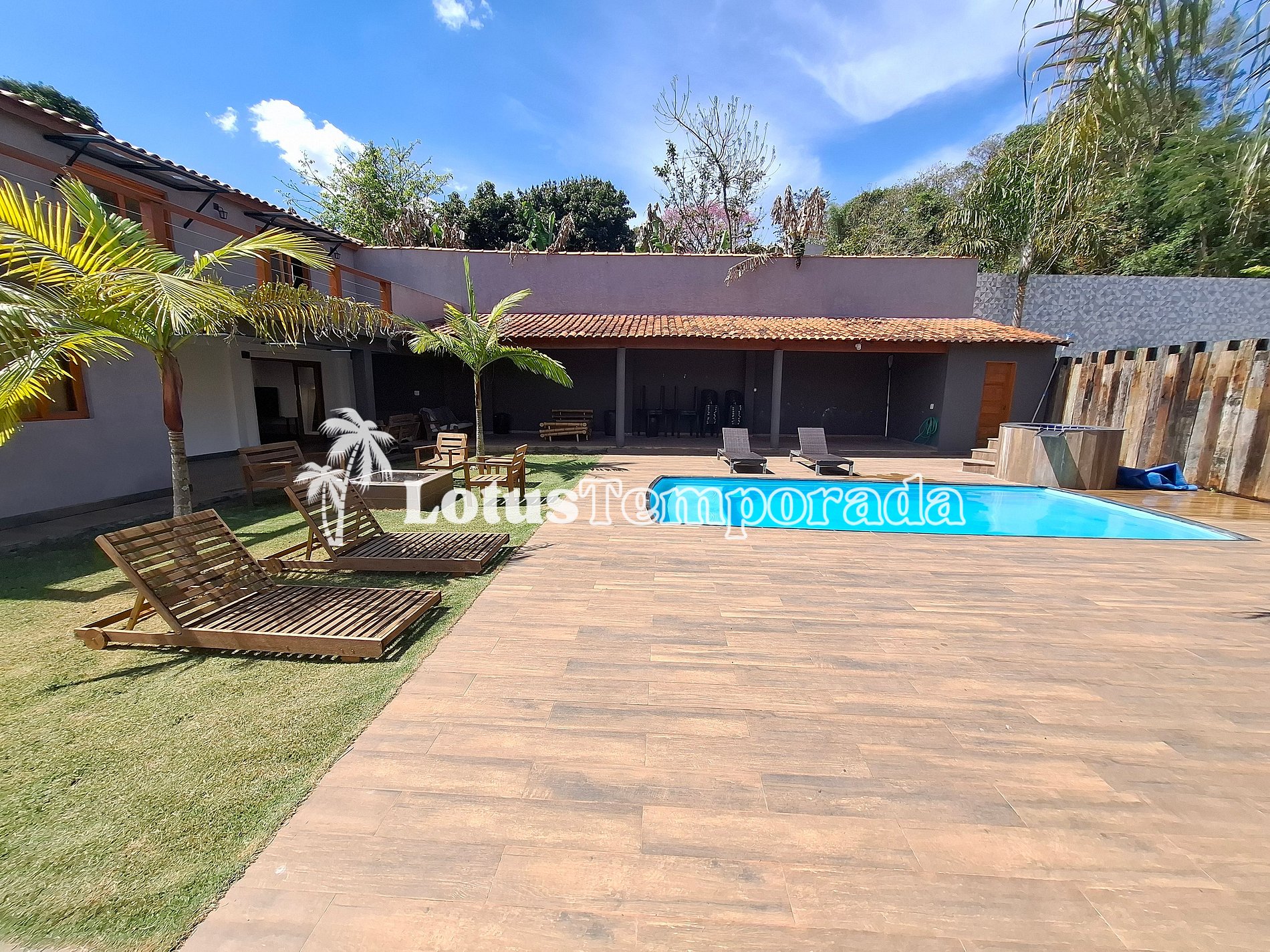 Chácara em condomínio fechado em Atibaia, perfeita para grupos de até 12 pessoas. Conta com 5 dormitórios, sendo 1 suíte e 1 externo, sala ampla, cozinha americana, varanda, espaço gourmet, piscina com cascata, jacuzzi, fogueira e área gramada. Ideal para famílias que buscam conforto, lazer e momentos inesquecíveis.