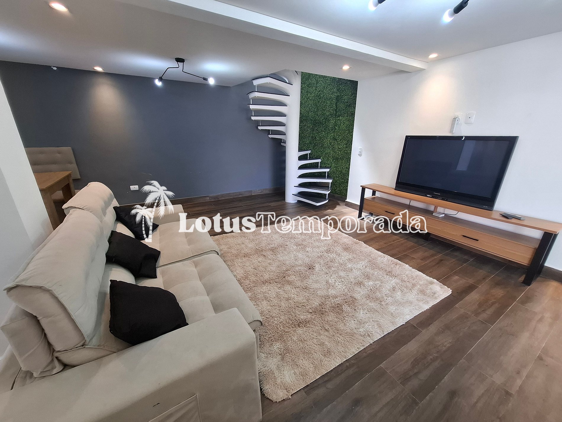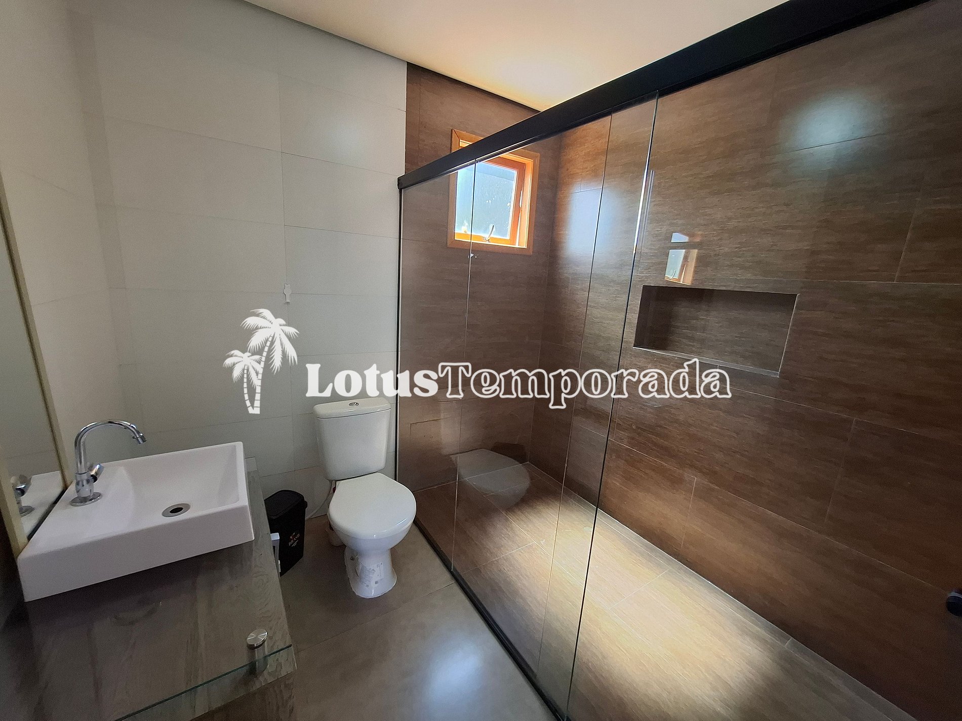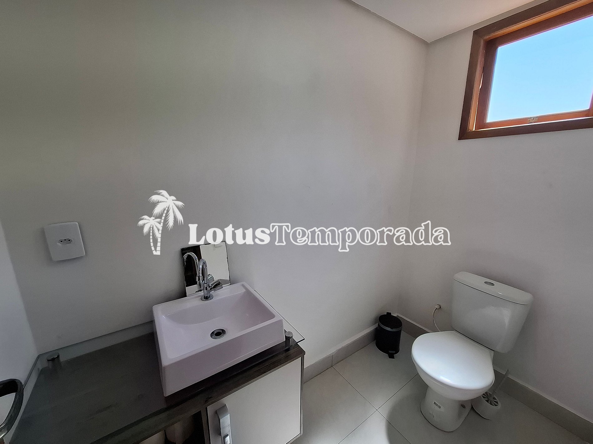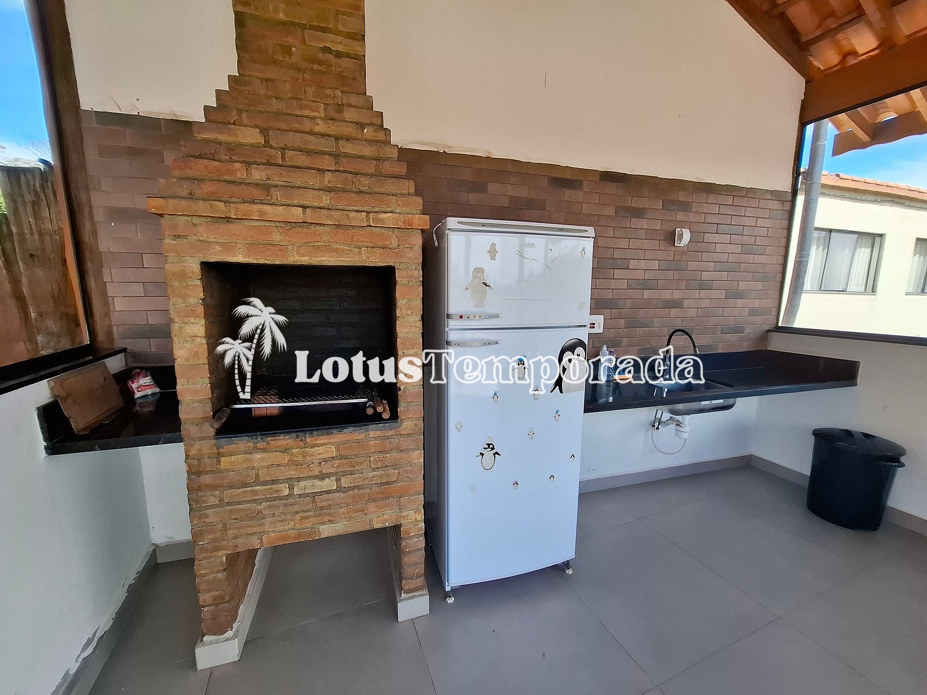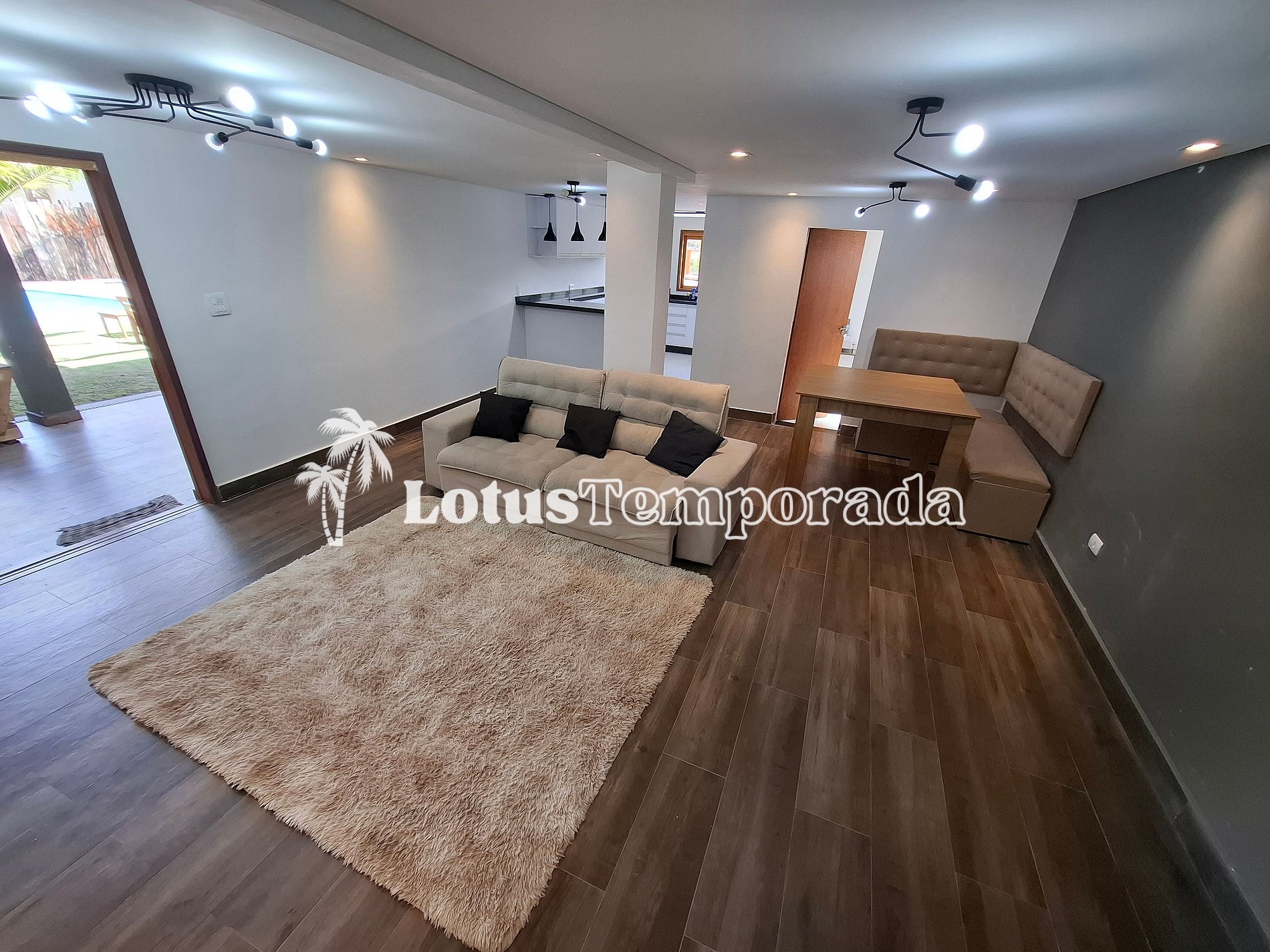 A sala ampla e a cozinha americana criam um ambiente integrado e aconchegante, perfeito para refeições e momentos de convívio. Além disso, há um banheiro social e um lavabo para maior comodidade dos hóspedes.