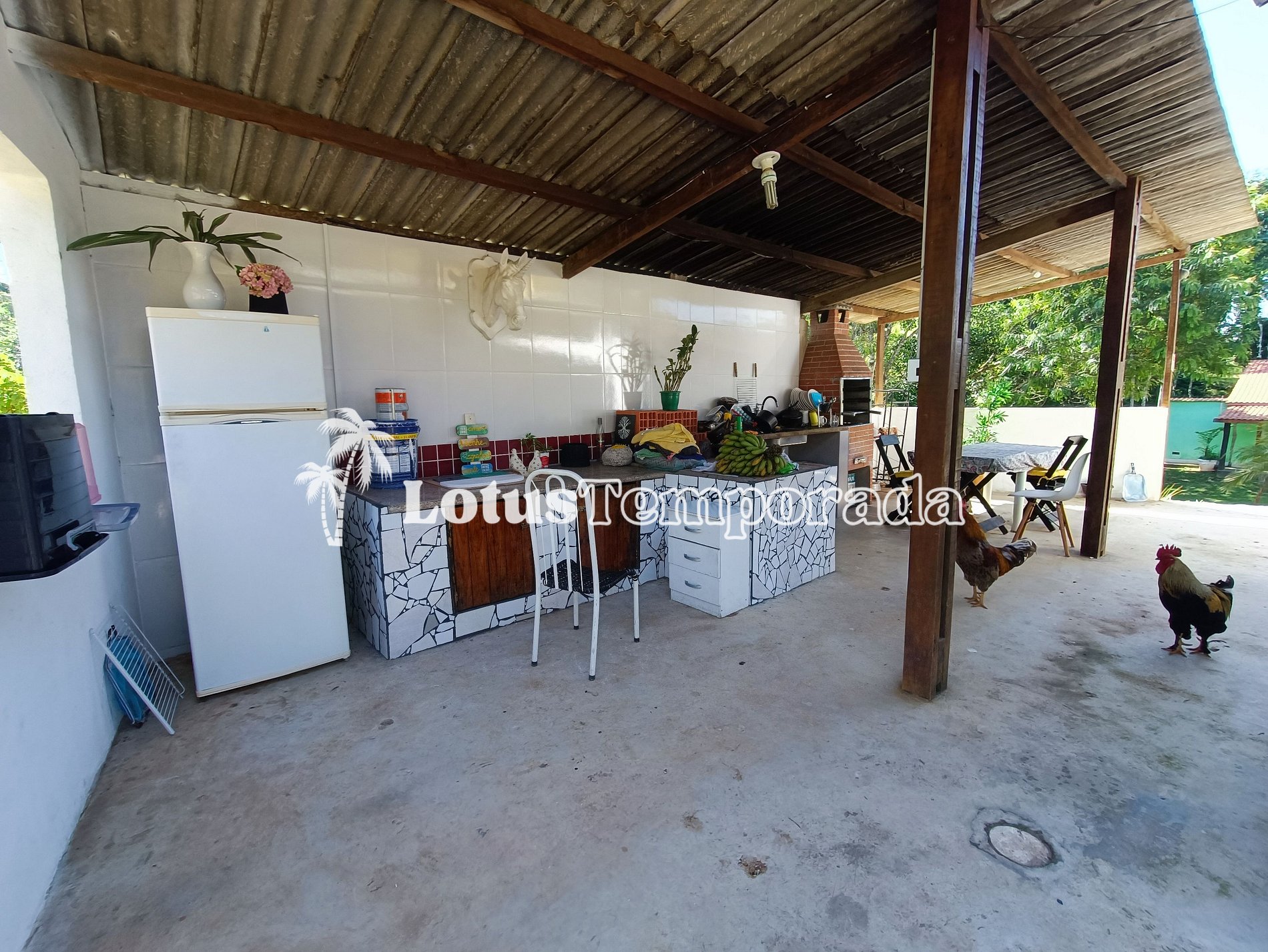 - Cozinha: utensílios básicos, pia, geladeira e fogão de 05 bocas com forno;