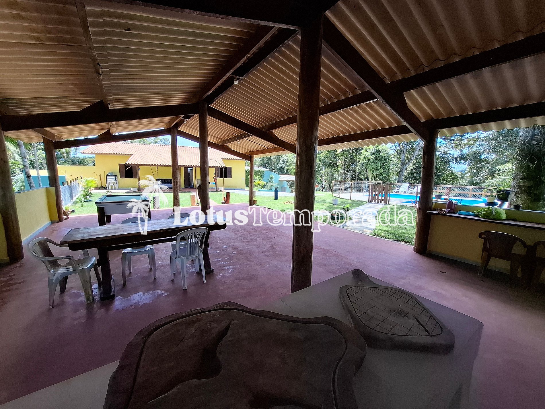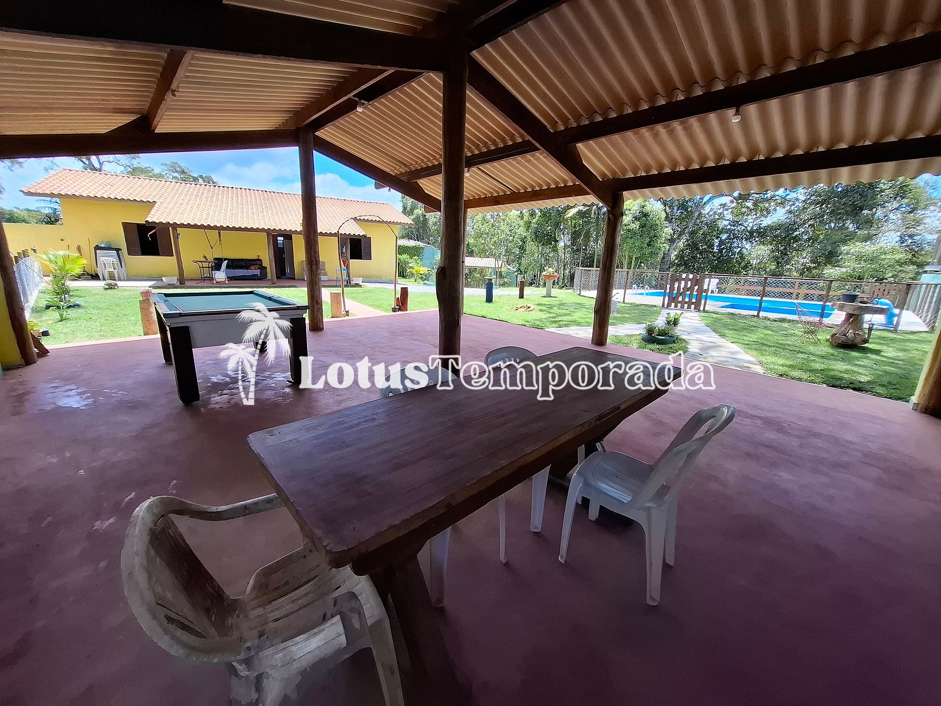 A casa sede conta com 2 dormitórios e 2 banheiros, além de uma varanda acolhedora que convida a relaxar e apreciar a vista. A área de churrasqueira é ampla e integrada, equipada com mesa de sinuca e espaço ideal para confraternizações.