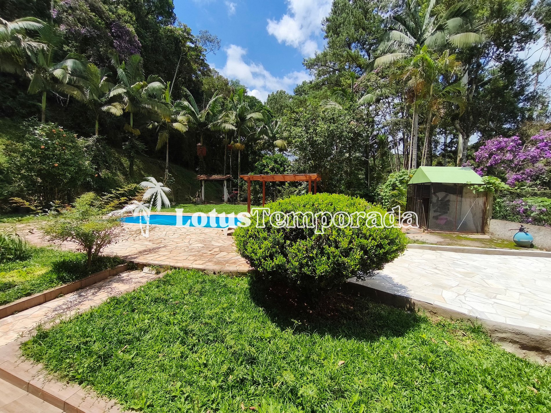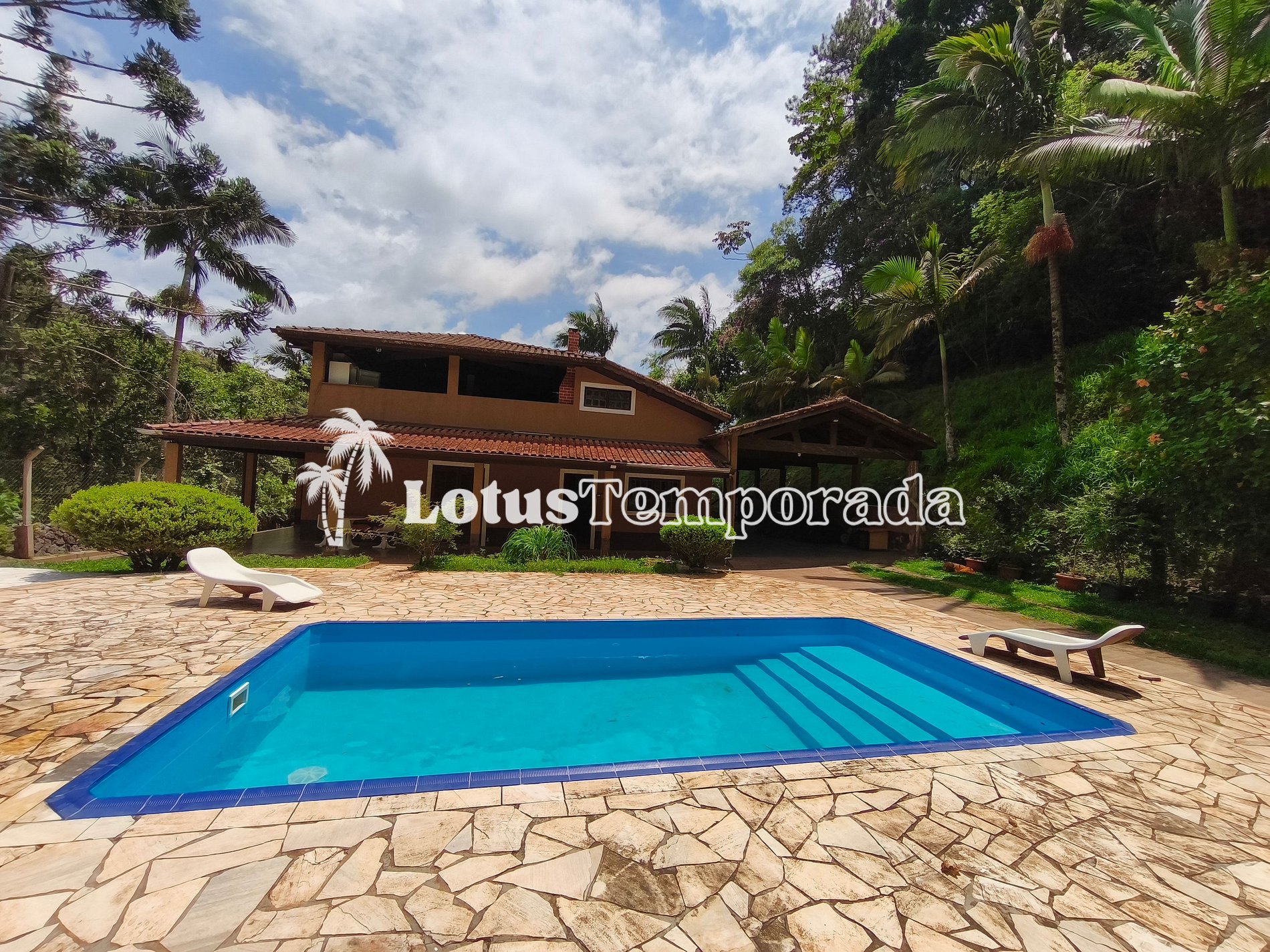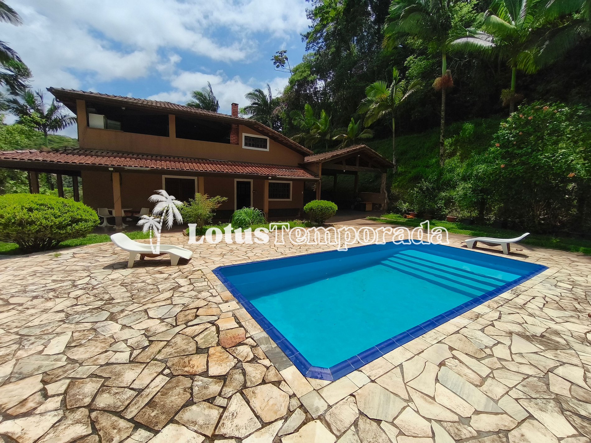 Sítio ideal para temporada e eventos diurnos, com piscina com prainha e cascata, espaço gourmet, área para festas, campo de futebol, lagos e acomodações confortáveis para grupos, famílias e confraternizações.