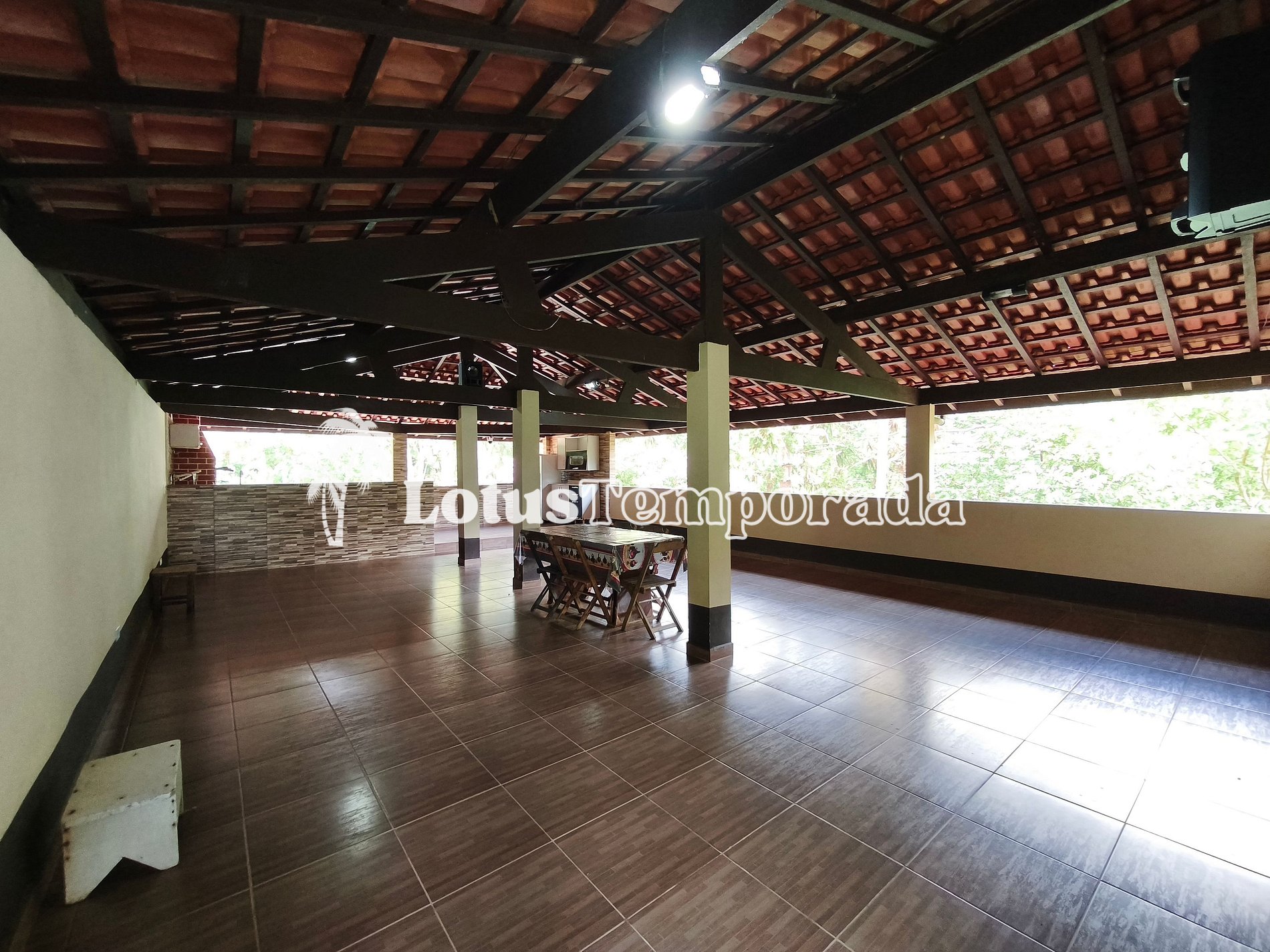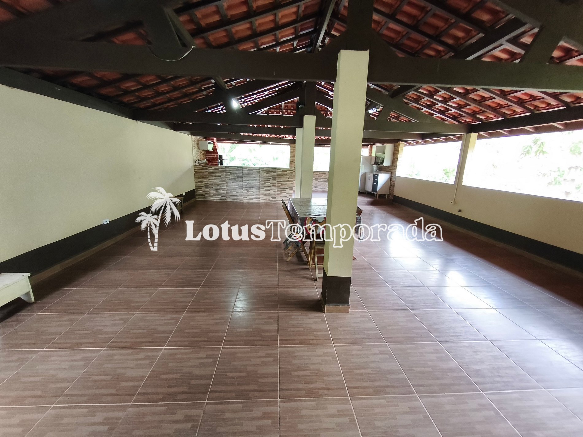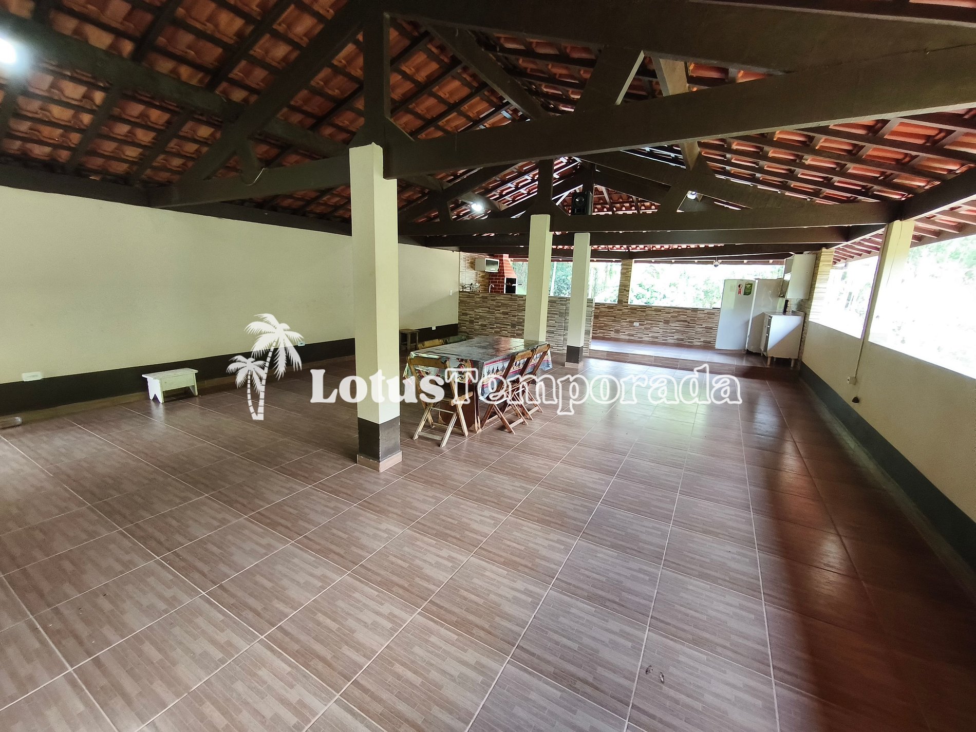 O imóvel oferece acomodações amplas, incluindo dormitórios internos e externos, varanda e áreas de convivência integradas, proporcionando praticidade para grupos maiores. A área social conta com espaço gourmet e ambientes preparados para refeições e encontros em grupo.