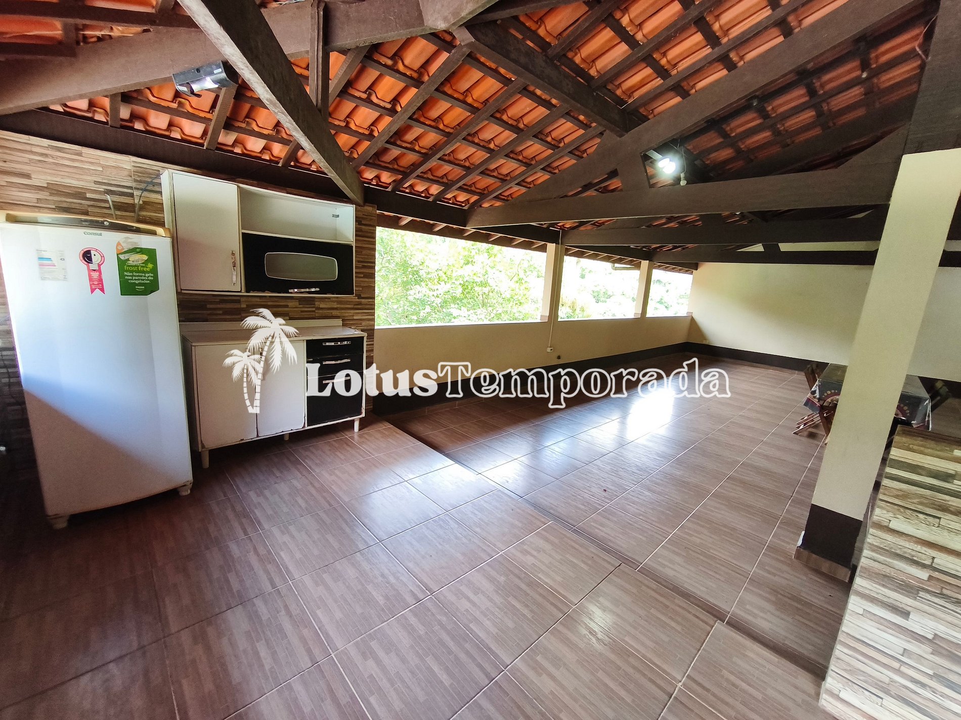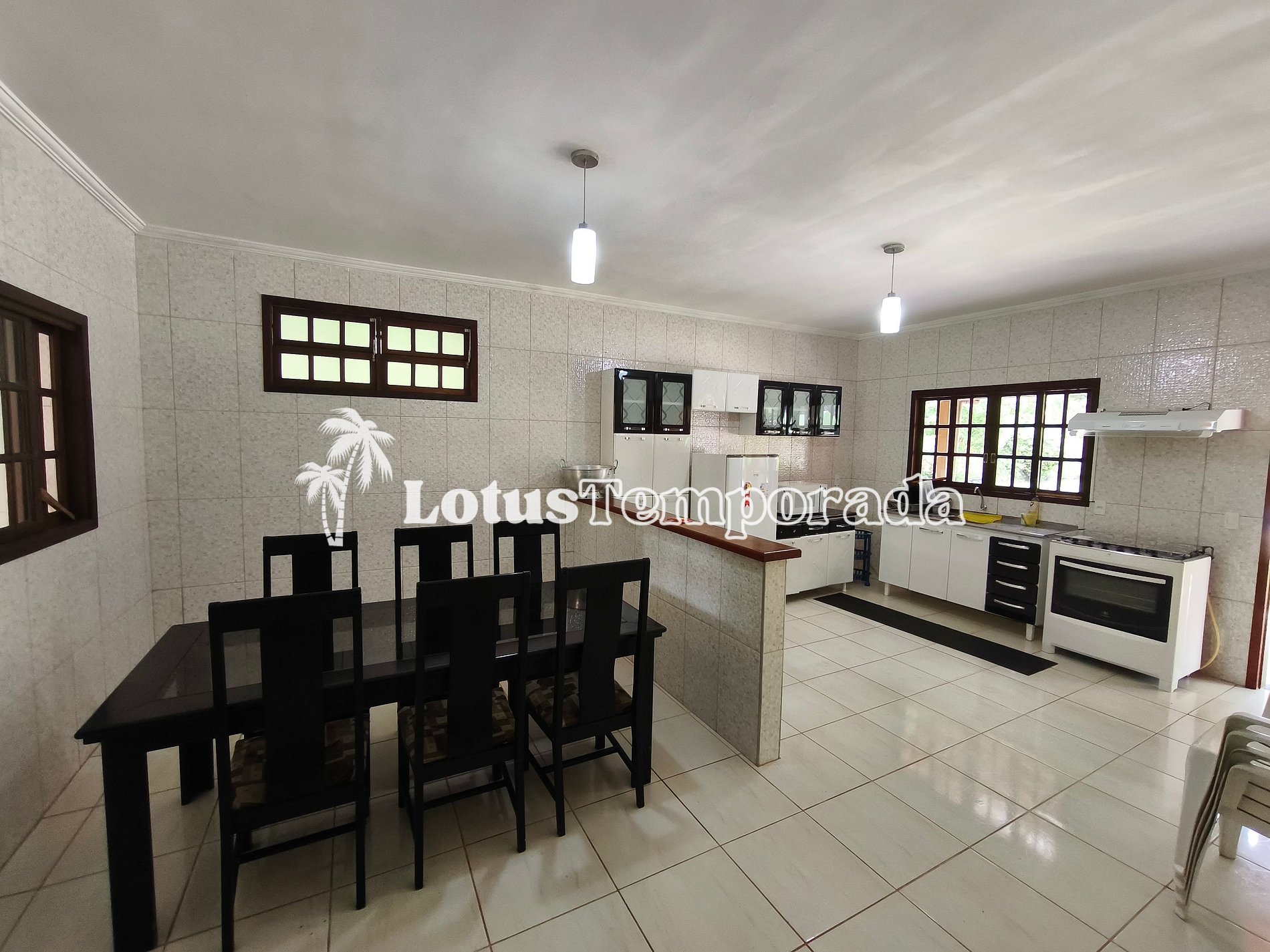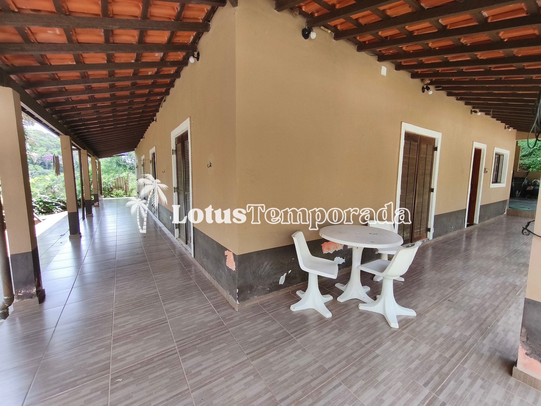 O imóvel oferece acomodações amplas, incluindo dormitórios internos e externos, varanda e áreas de convivência integradas, proporcionando praticidade para grupos maiores. A área social conta com espaço gourmet e ambientes preparados para refeições e encontros em grupo.
