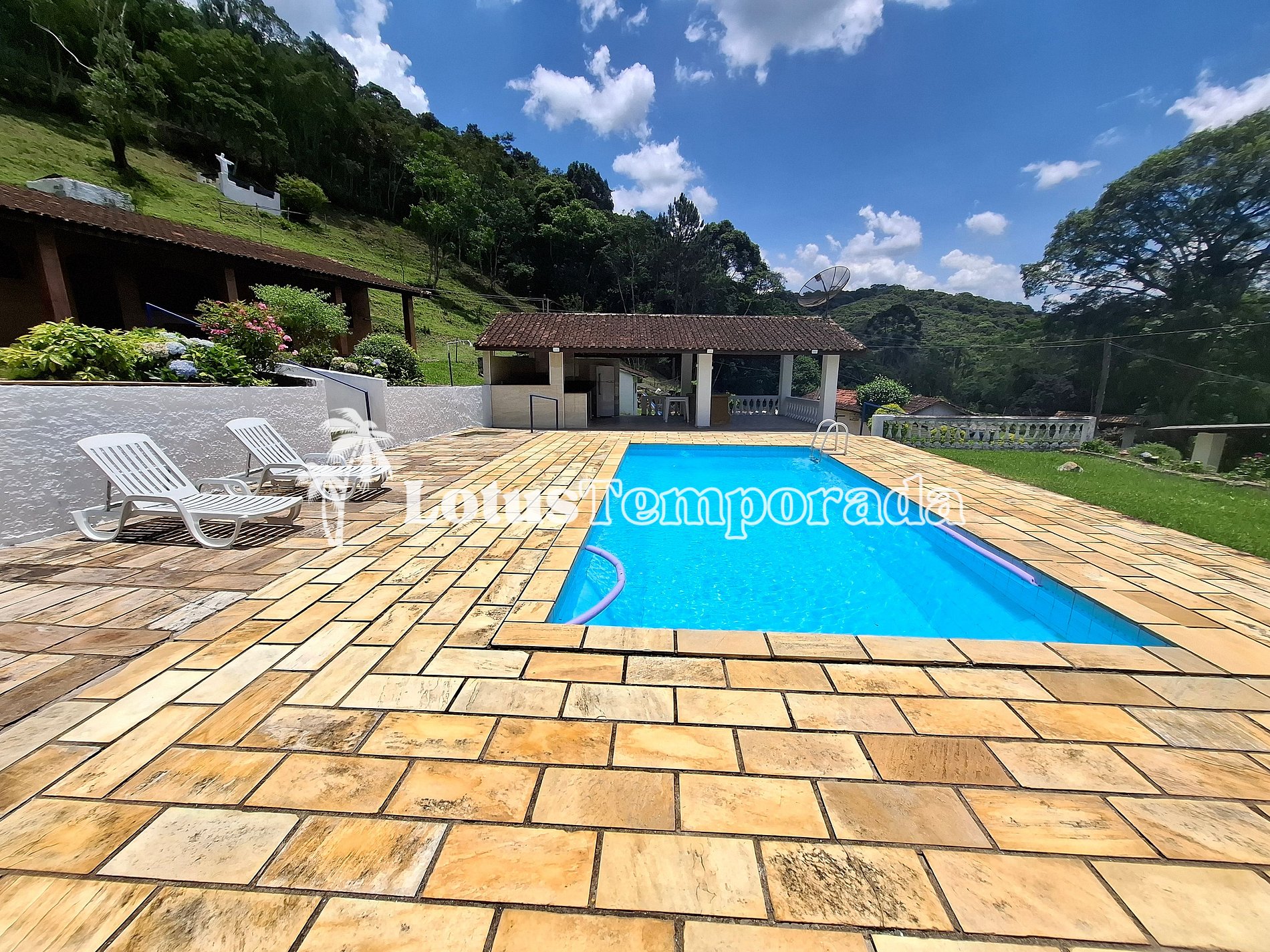 Sítio com 5 suítes, área gourmet, wi-fi, piscina, sala de TV, salão de jogos com sinuca, campo de futebol, playground e lago. Um paraíso para famílias e amigos aproveitarem juntos.