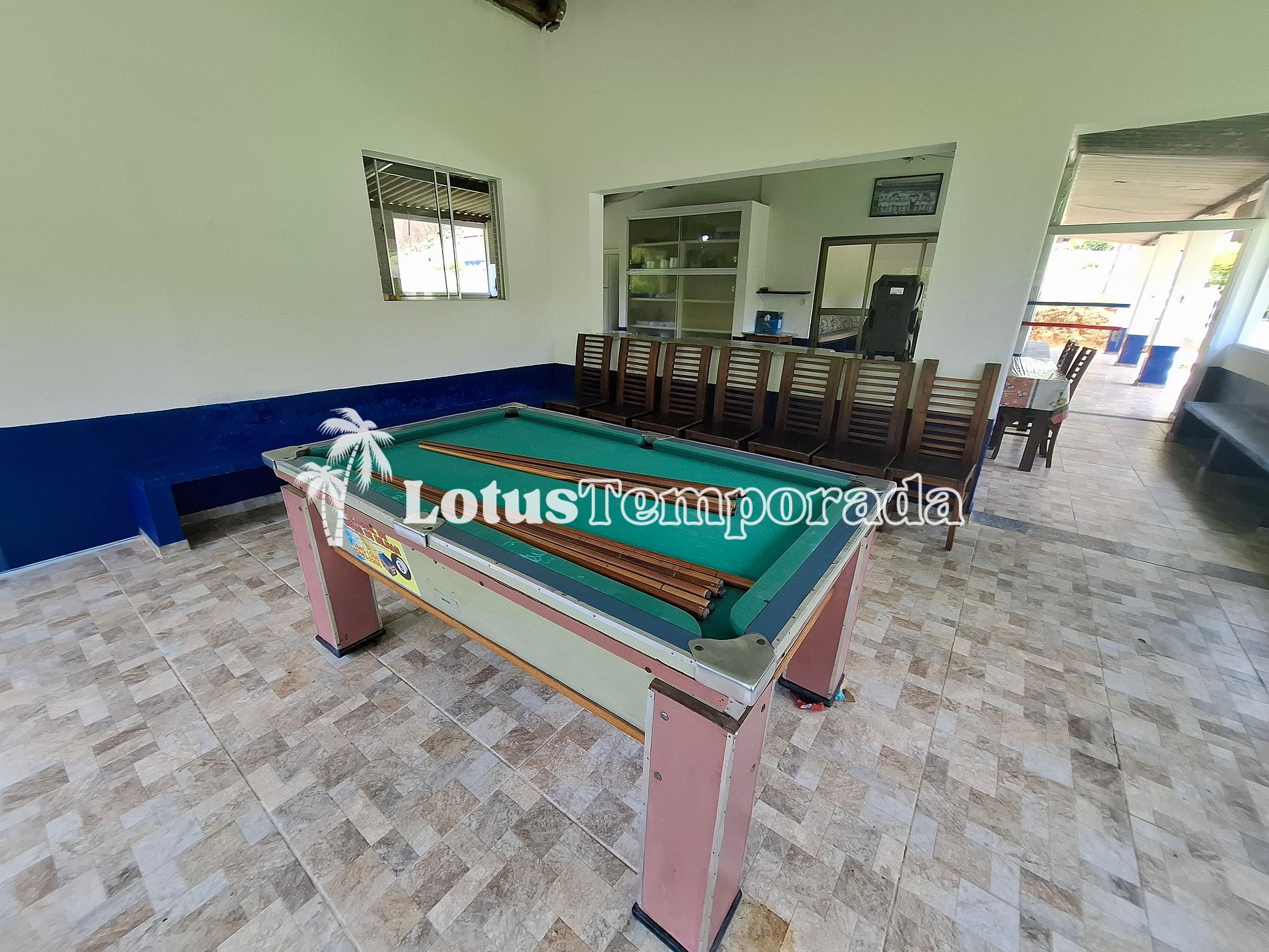 Quer mais? Tem também uma piscina maravilhosa, perfeita para relaxar, e uma sala de TV super aconchegante para maratona suas séries favoritas. E não para por aí! Tem um salão de jogos com sinuca, um campo de futebol para uma partida animada e um playground para a criançada se divertir.