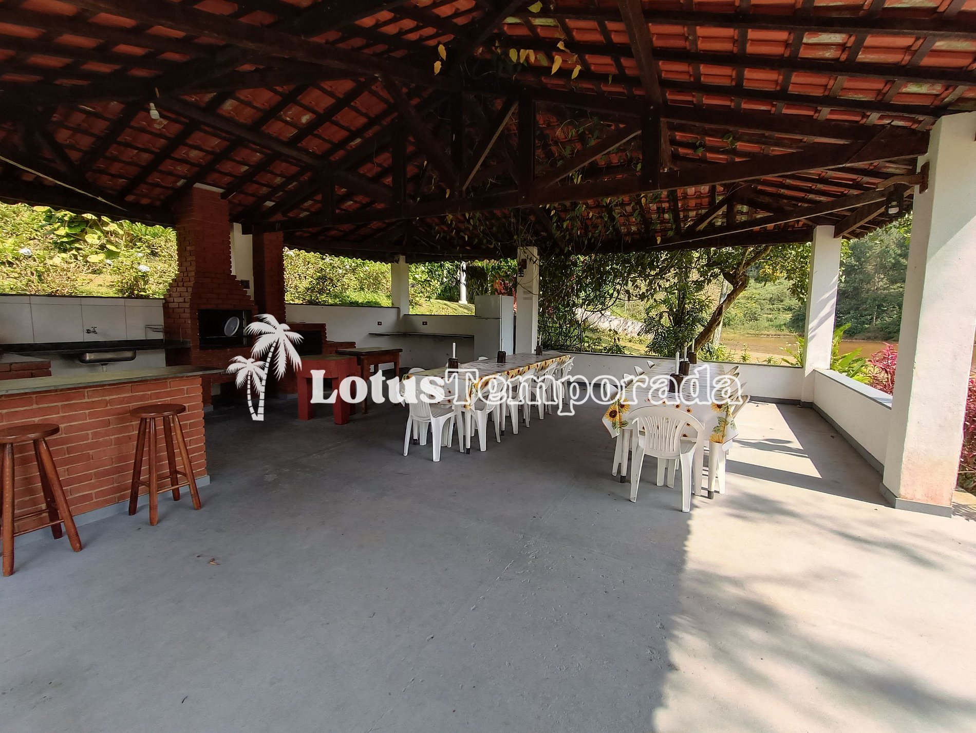 A área externa é simplesmente incrível! São três áreas de churrasco: uma perto da casa, outra ao lado do lago e uma terceira ao lado da piscina aquecida, com um banco gigante de alvenaria, perfeita para reunir todo mundo. Falando em piscina, além de ser aquecida, ao lado dela tem um pergolado com uma mesa enorme, ideal para boas conversas e refeições ao ar livre.