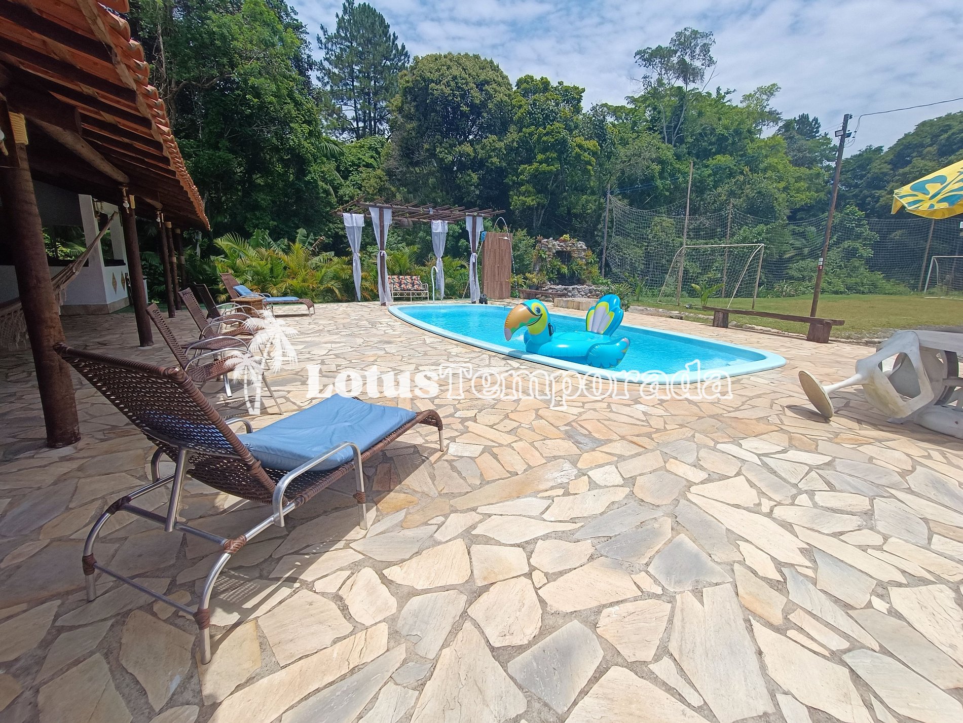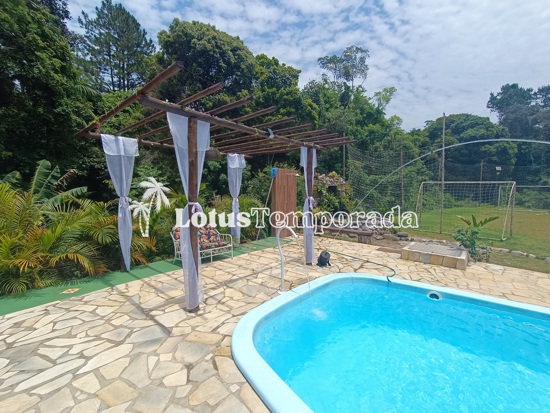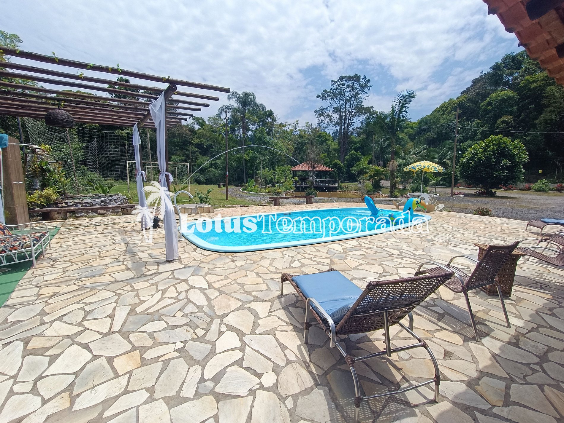 A área de lazer oferece uma piscina de 8x4m com cascata e iluminação noturna, um pergolado encantador e uma ducha refrescante. Explore nossos lindos lagos (proibido pesca) com deck coberto e espaço para churrasco, playground, pomar e uma trilha que o leva a um deslumbrante rio. Venha e crie memórias inesquecíveis no nosso Rancho!