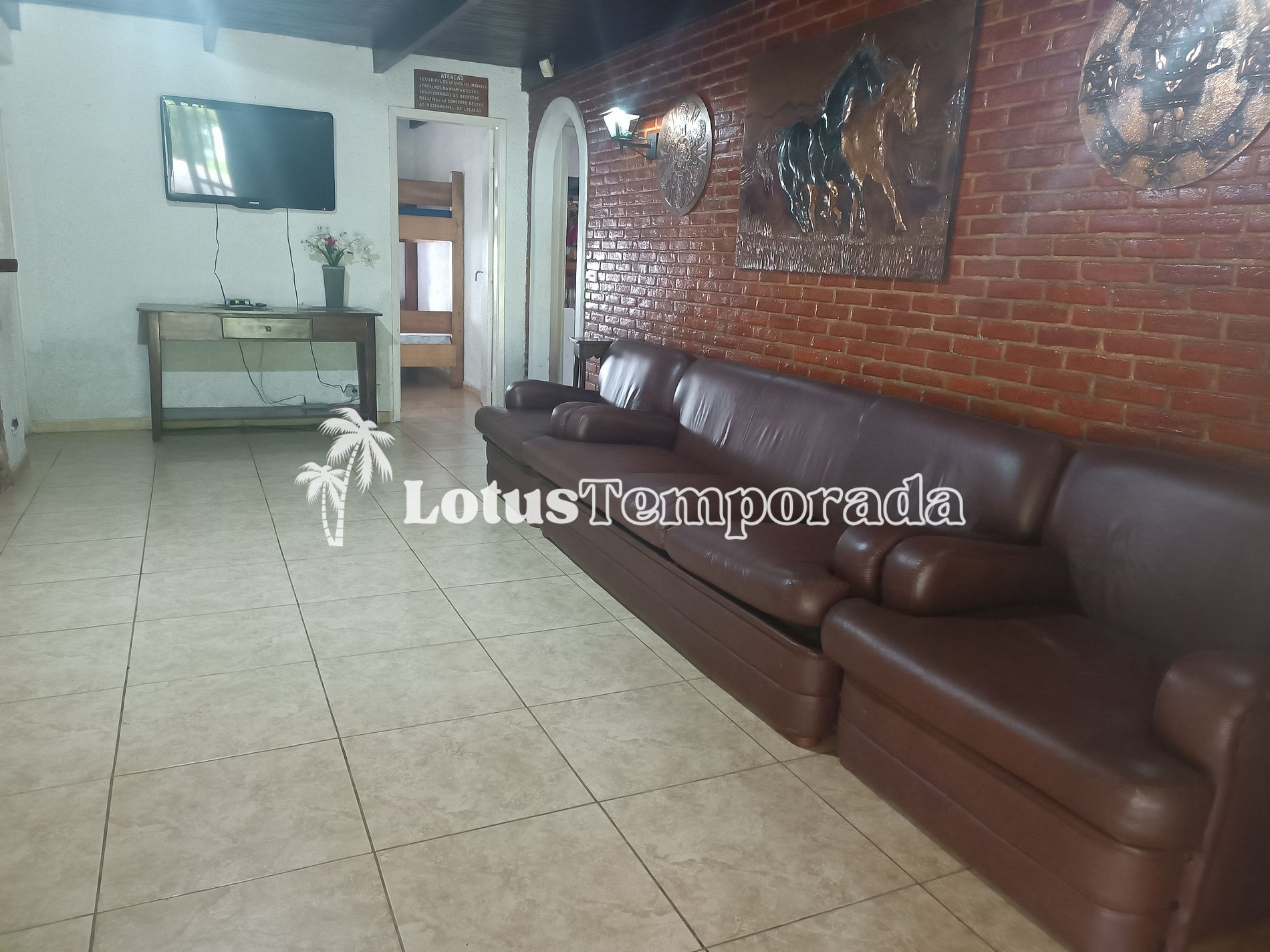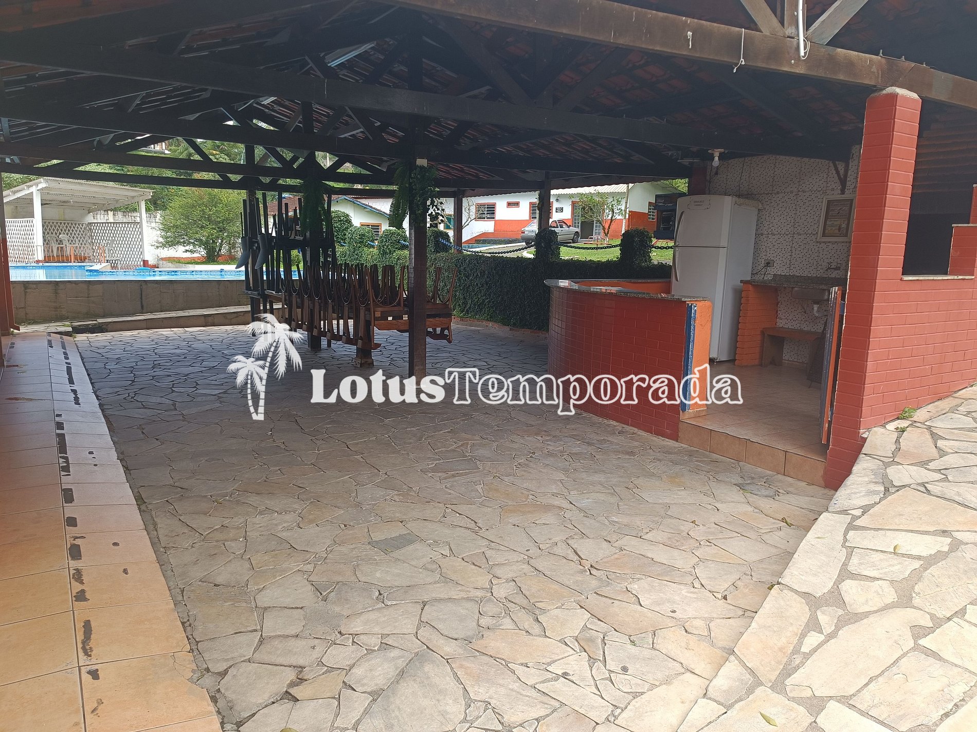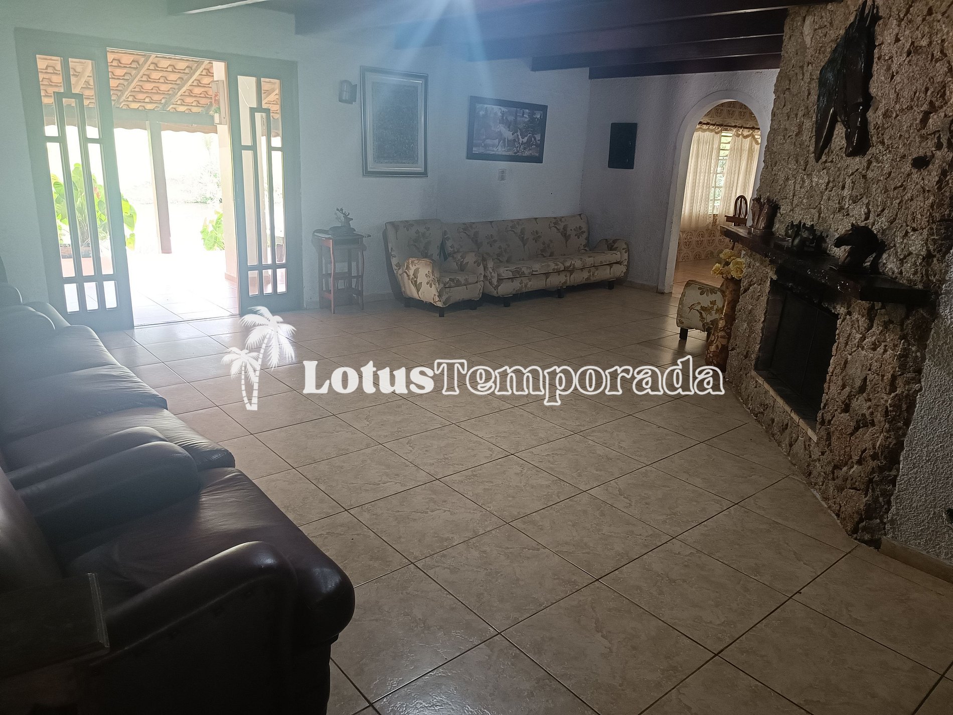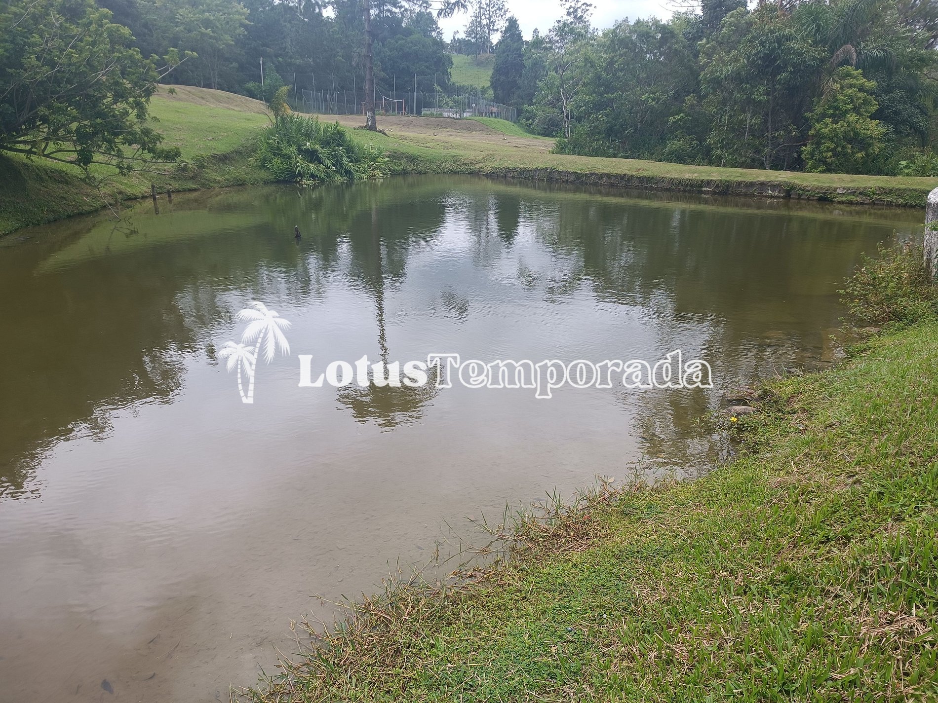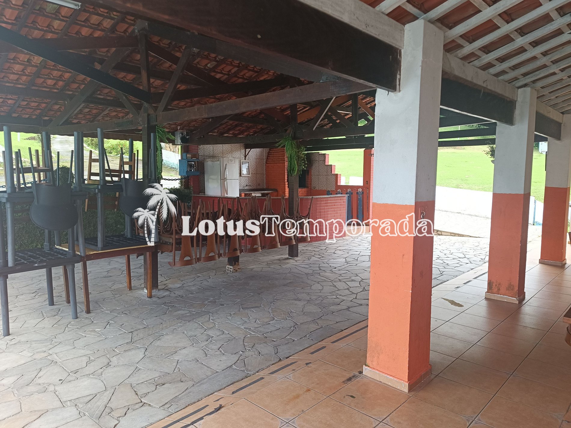 - Casa sede com 4 dormitórios, incluindo uma suíte. - Sala ampla e sala de jantar para entretenimento e refeições. - 3 banheiros na casa principal. - Cozinha bem equipada com 2 geladeiras, fogão, micro-ondas e fogão industrial de 4 bocas, além de utensílios. - Varanda lateral com vista para um belo lago. - Churrasqueira localizada próxima à piscina, com geladeira adicional e 1 freezer. - Salão de jogos com sinuca, pebolim e ping pong, acompanhado de banheiro e outro freezer. - 2 alojamentos espaçosos, cada um com 1 banheiro. - Campo de futebol e quadra de vôlei de areia para atividades esportivas. - Playground para crianças. - Casa de boneca para entretenimento infantil. - Lago com peixes (equipamento de pesca não fornecido, mas é permitida a pesca). - Outro alojamento com 5 quartos amplos, cada um com seu próprio banheiro. - Espaço amplo e todo gramado para atividades ao ar livre.