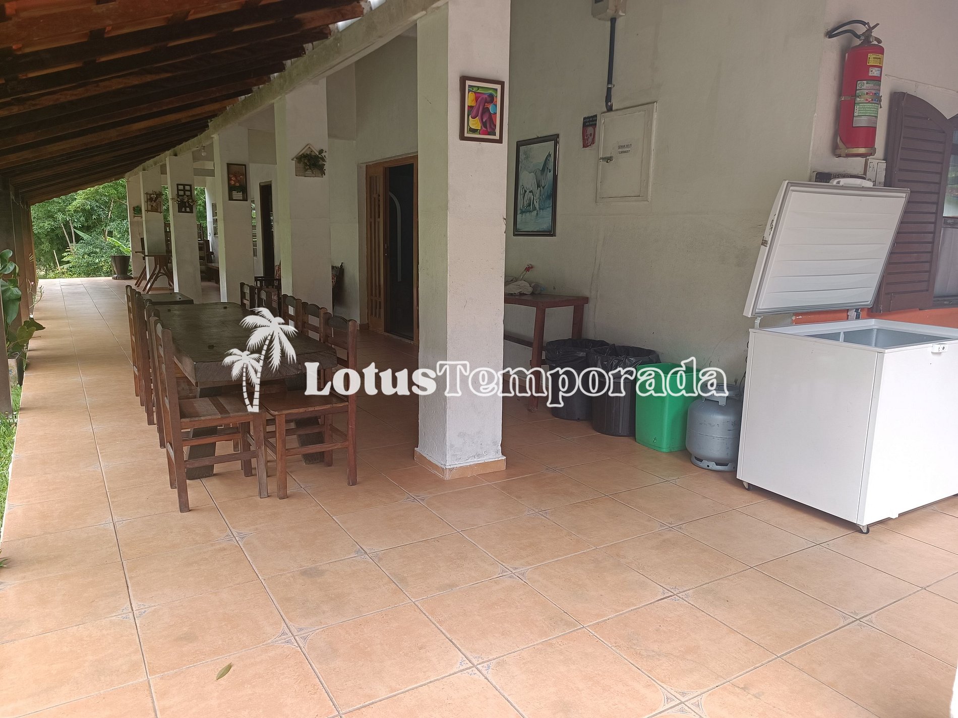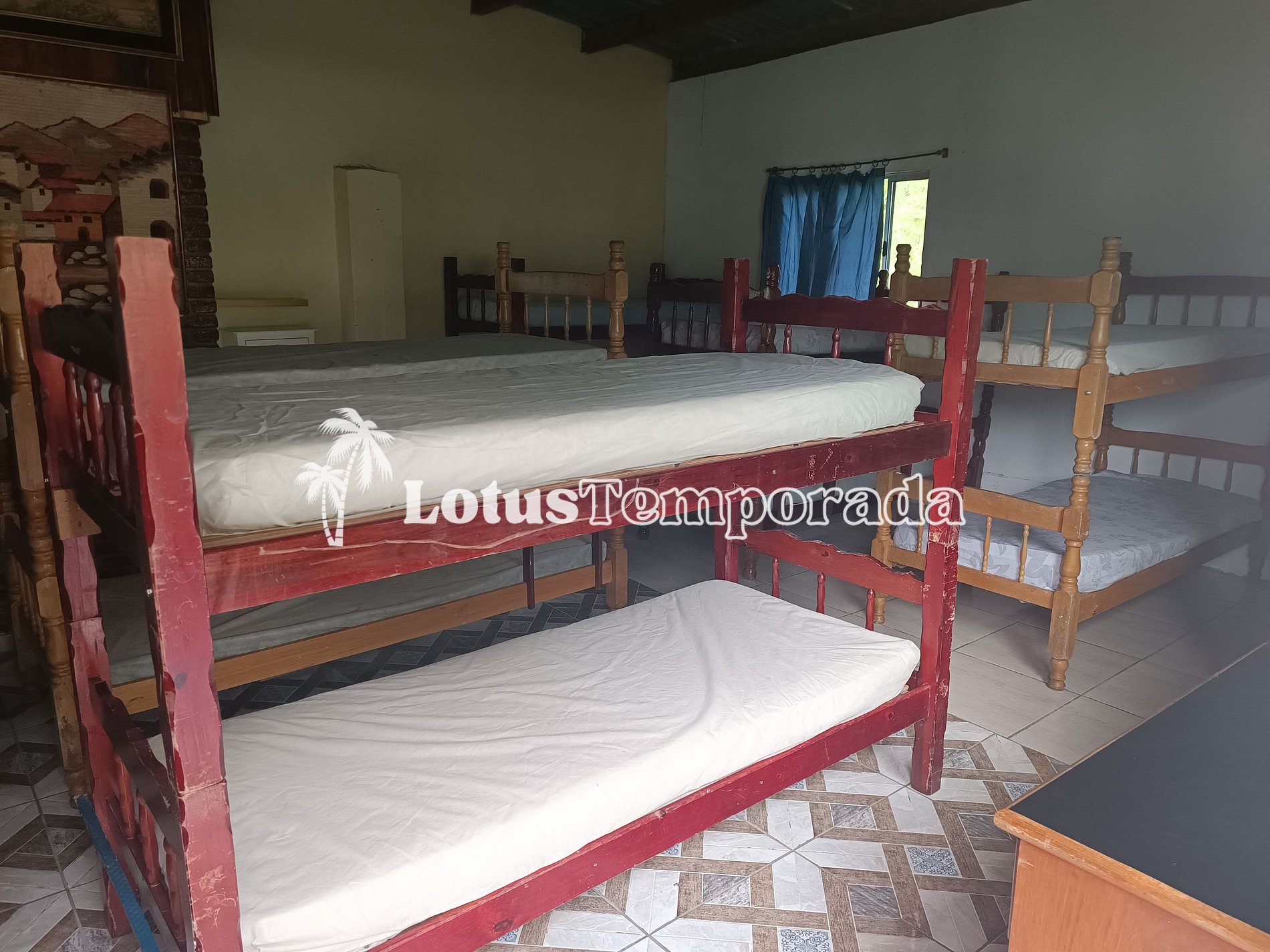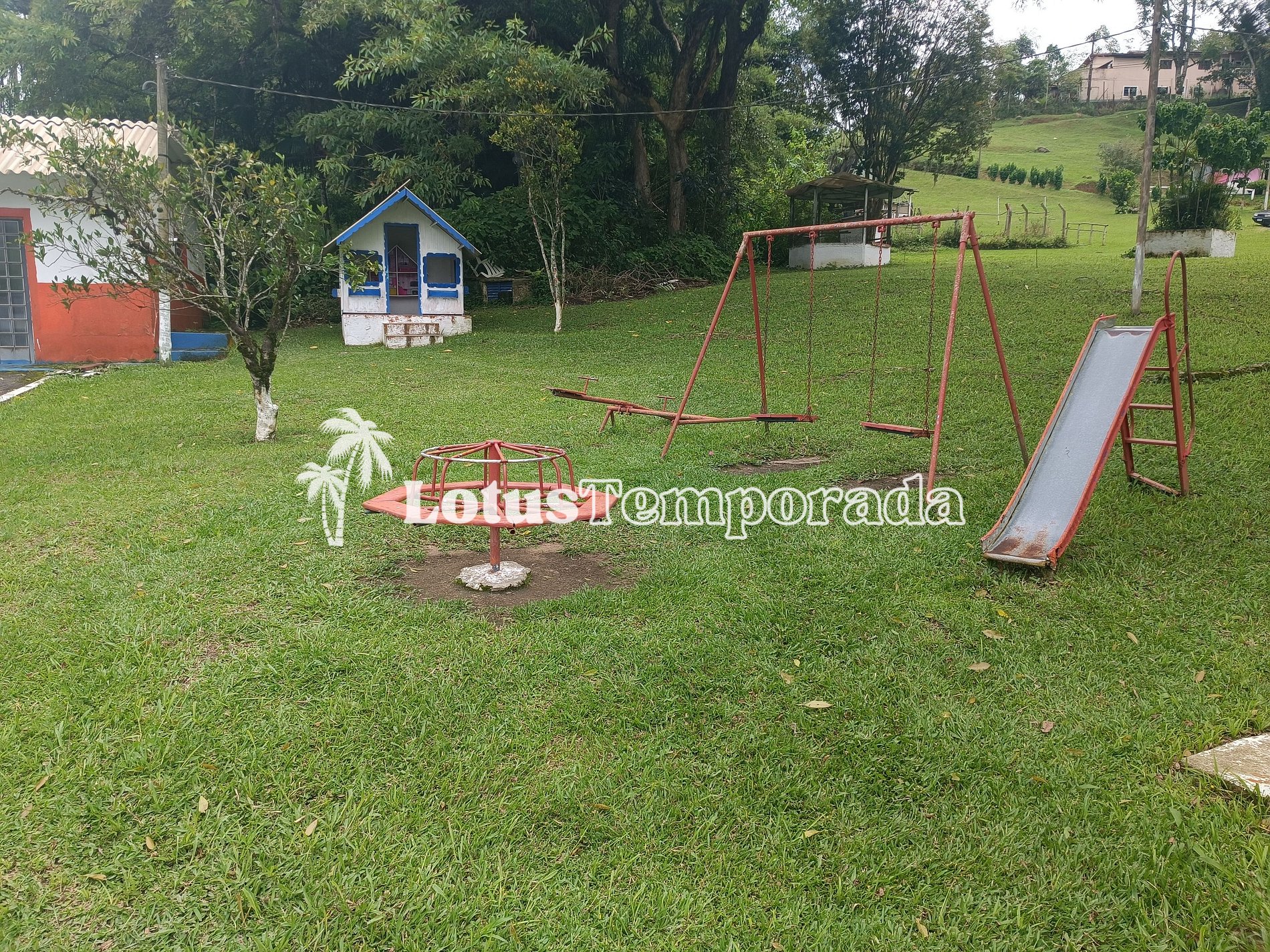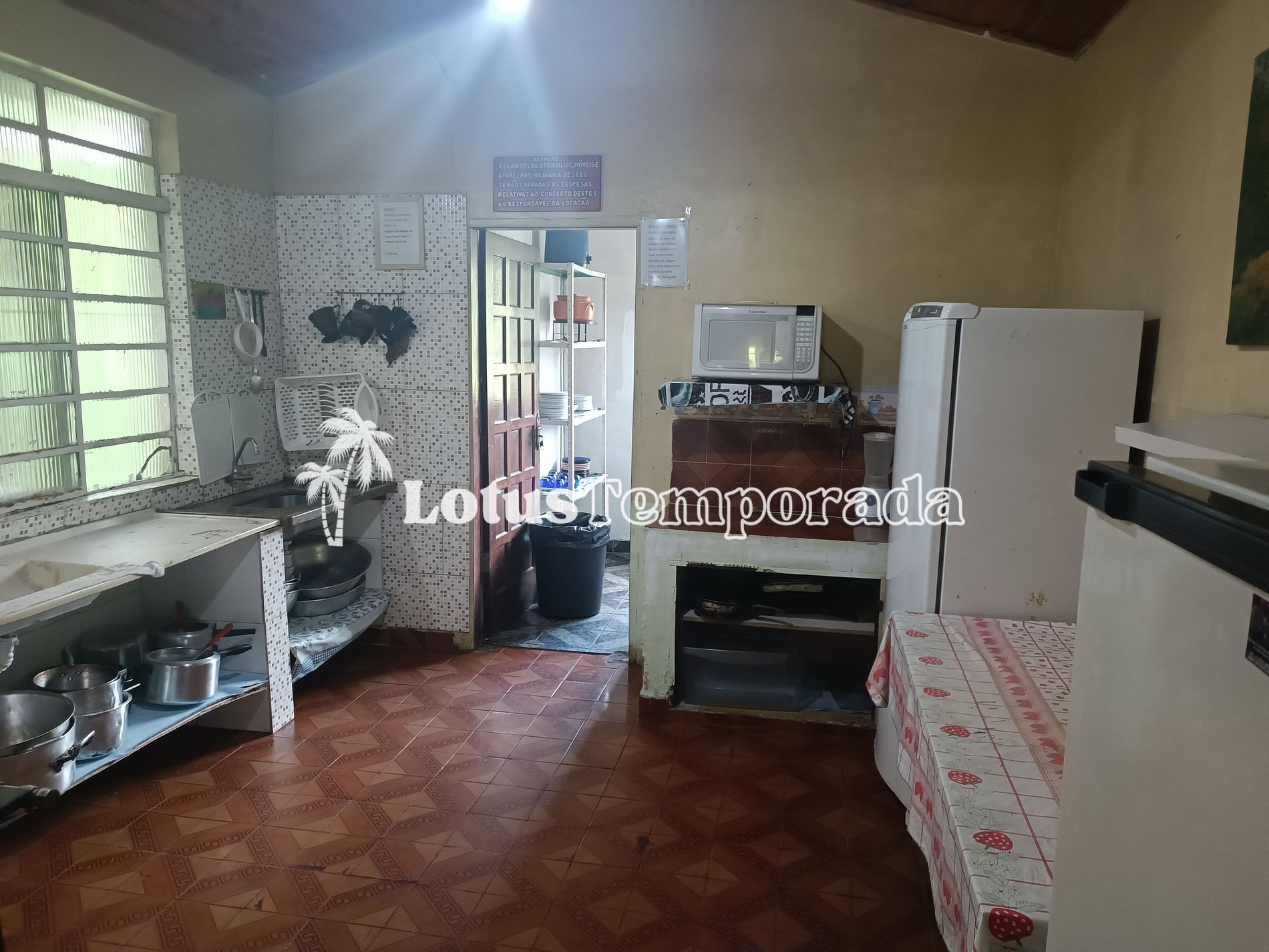 - Casa sede com 4 dormitórios, incluindo uma suíte. - Sala ampla e sala de jantar para entretenimento e refeições. - 3 banheiros na casa principal. - Cozinha bem equipada com 2 geladeiras, fogão, micro-ondas e fogão industrial de 4 bocas, além de utensílios. - Varanda lateral com vista para um belo lago. - Churrasqueira localizada próxima à piscina, com geladeira adicional e 1 freezer. - Salão de jogos com sinuca, pebolim e ping pong, acompanhado de banheiro e outro freezer. - 2 alojamentos espaçosos, cada um com 1 banheiro. - Campo de futebol e quadra de vôlei de areia para atividades esportivas. - Playground para crianças. - Casa de boneca para entretenimento infantil. - Lago com peixes (equipamento de pesca não fornecido, mas é permitida a pesca). - Outro alojamento com 5 quartos amplos, cada um com seu próprio banheiro. - Espaço amplo e todo gramado para atividades ao ar livre.