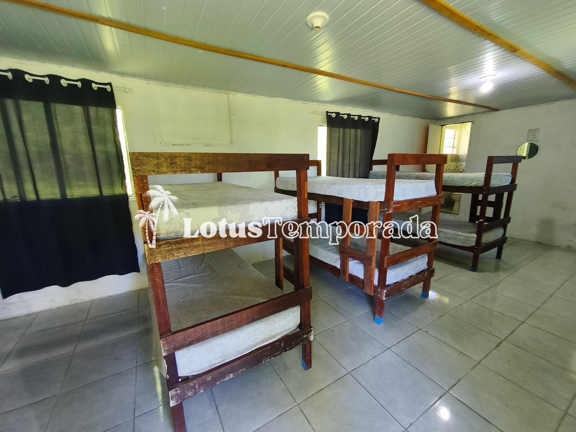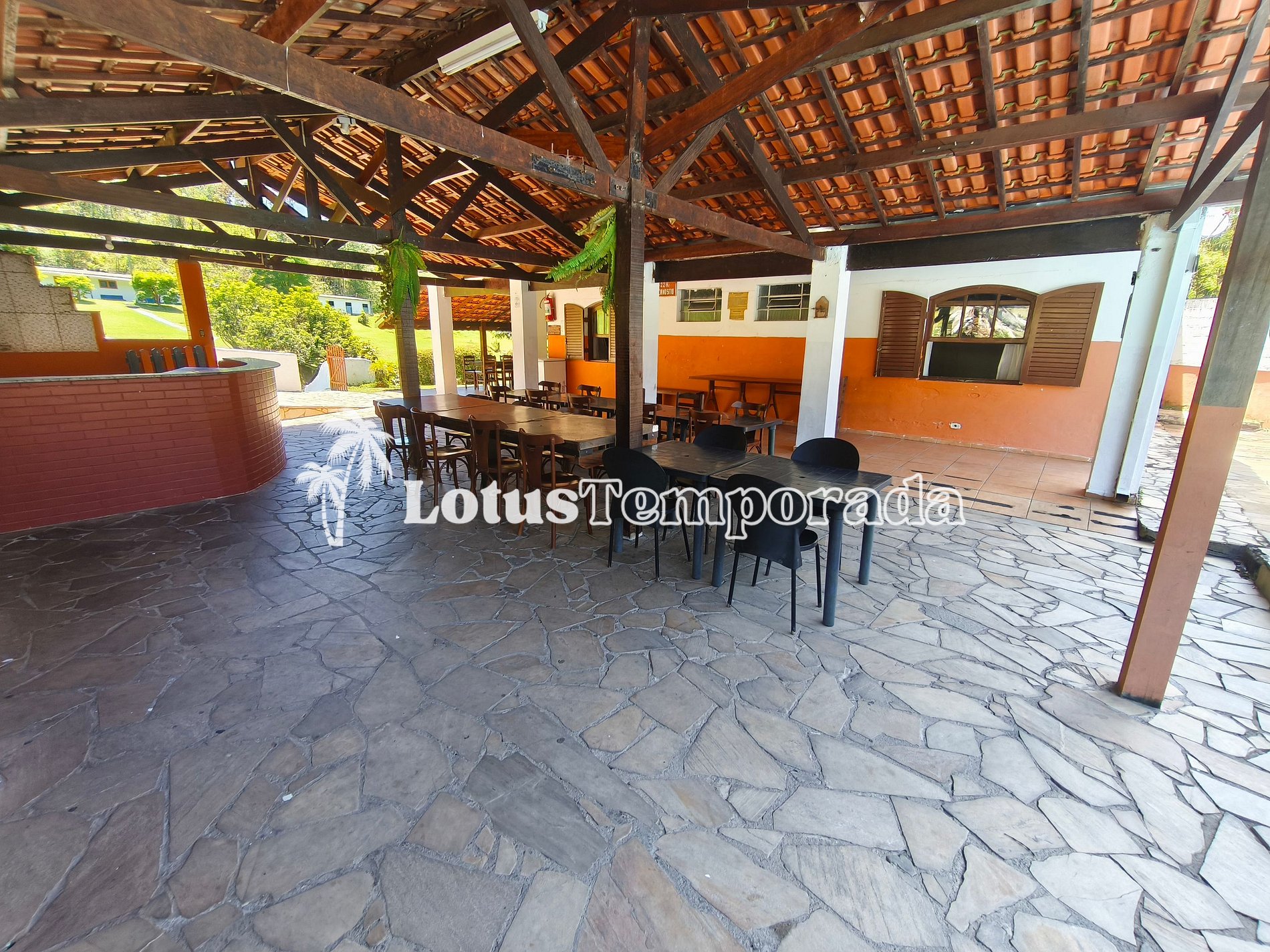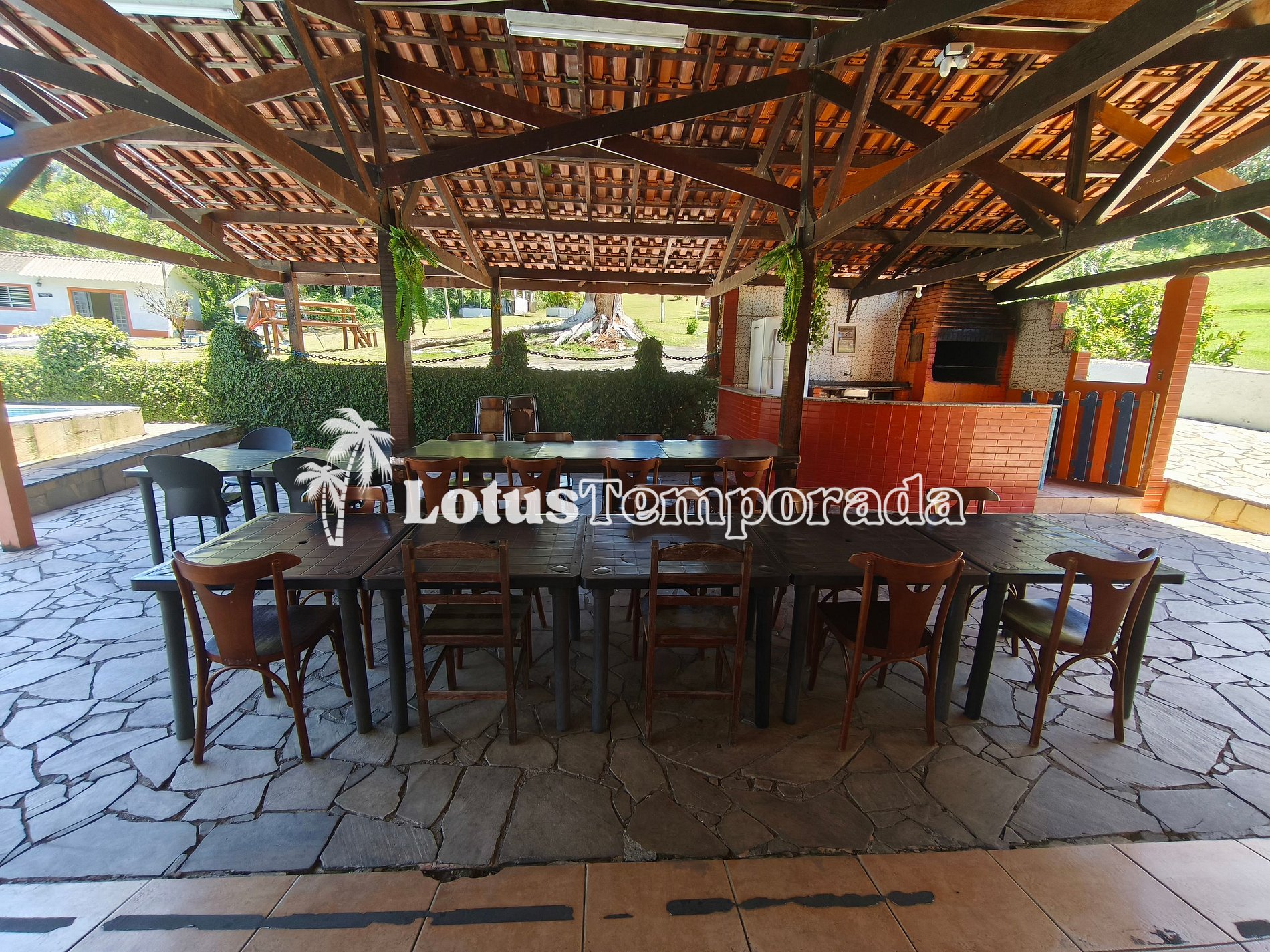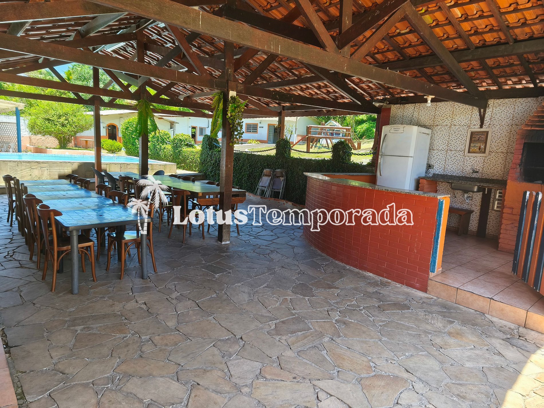- Casa sede com 4 dormitórios, incluindo uma suíte. - Sala ampla e sala de jantar para entretenimento e refeições. - 3 banheiros na casa principal. - Cozinha bem equipada com 2 geladeiras, fogão, micro-ondas e fogão industrial de 4 bocas, além de utensílios. - Varanda lateral com vista para um belo lago. - Churrasqueira localizada próxima à piscina, com geladeira adicional e 1 freezer. - Salão de jogos com sinuca, pebolim e ping pong, acompanhado de banheiro e outro freezer. - 2 alojamentos espaçosos, cada um com 1 banheiro. - Campo de futebol e quadra de vôlei de areia para atividades esportivas. - Playground para crianças. - Casa de boneca para entretenimento infantil. - Lago com peixes (equipamento de pesca não fornecido, mas é permitida a pesca). - Outro alojamento com 5 quartos amplos, cada um com seu próprio banheiro. - Espaço amplo e todo gramado para atividades ao ar livre.