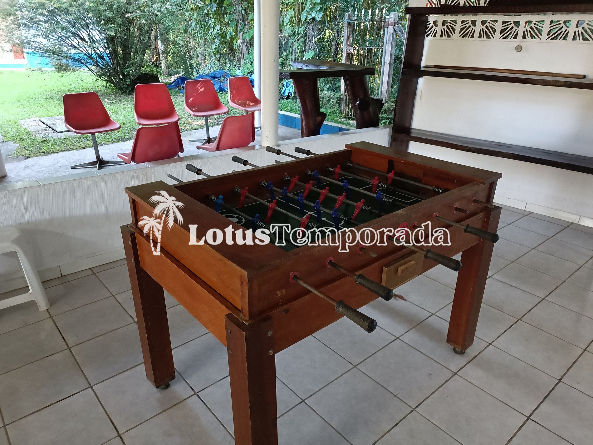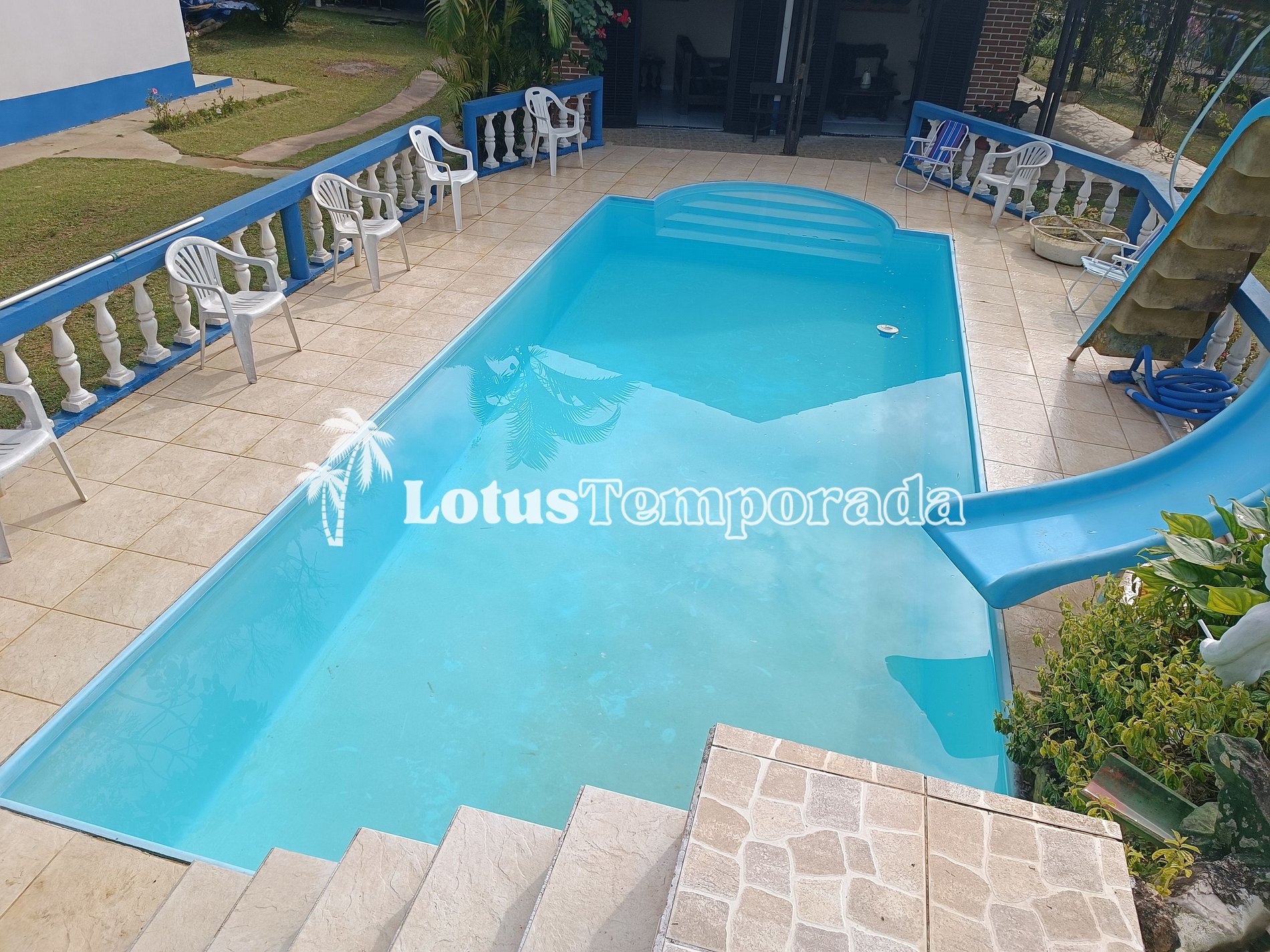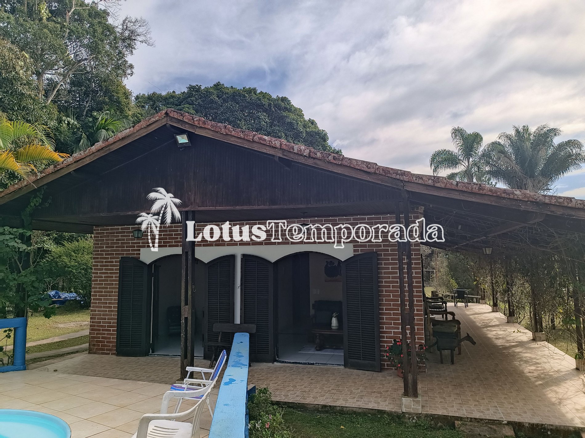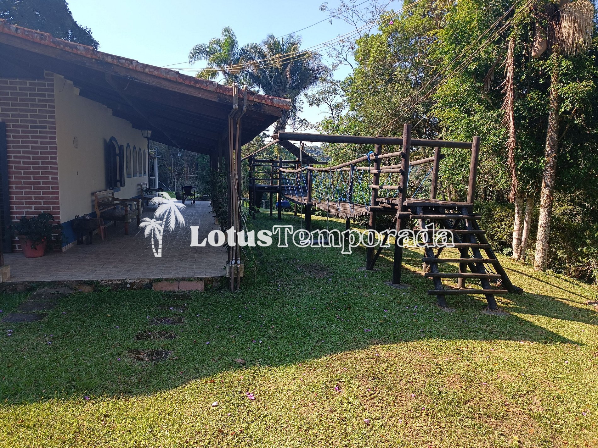Sítio completo em Juquitiba com lago para pesca, pomar, campo de futebol telado, playground, piscina com toboágua, salão de jogos e área de churrasco coberta. Acomodações confortáveis em casa sede e chalé anexo. Ideal para lazer em família, contato com a natureza e momentos de descanso.