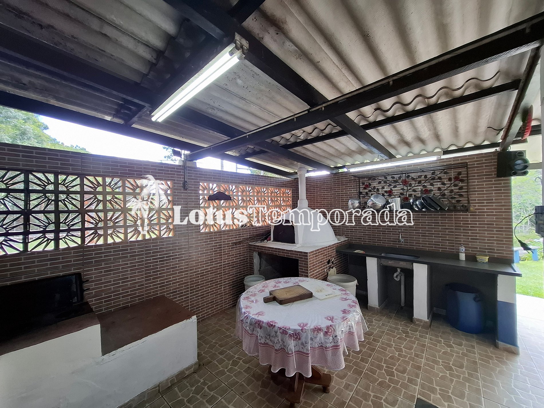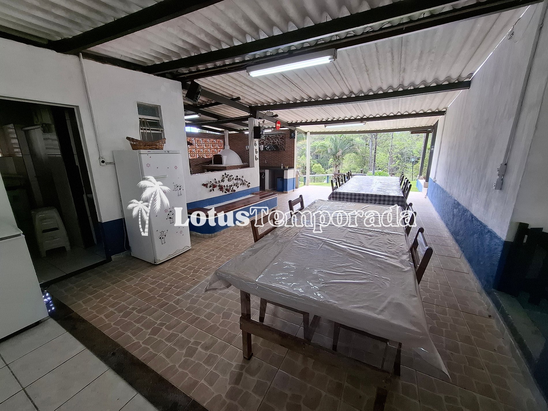 • Área Gourmet: churrasqueira, forno para pizza, fogão a lenha, pia, freezer horizontal, mesas e cadeiras
