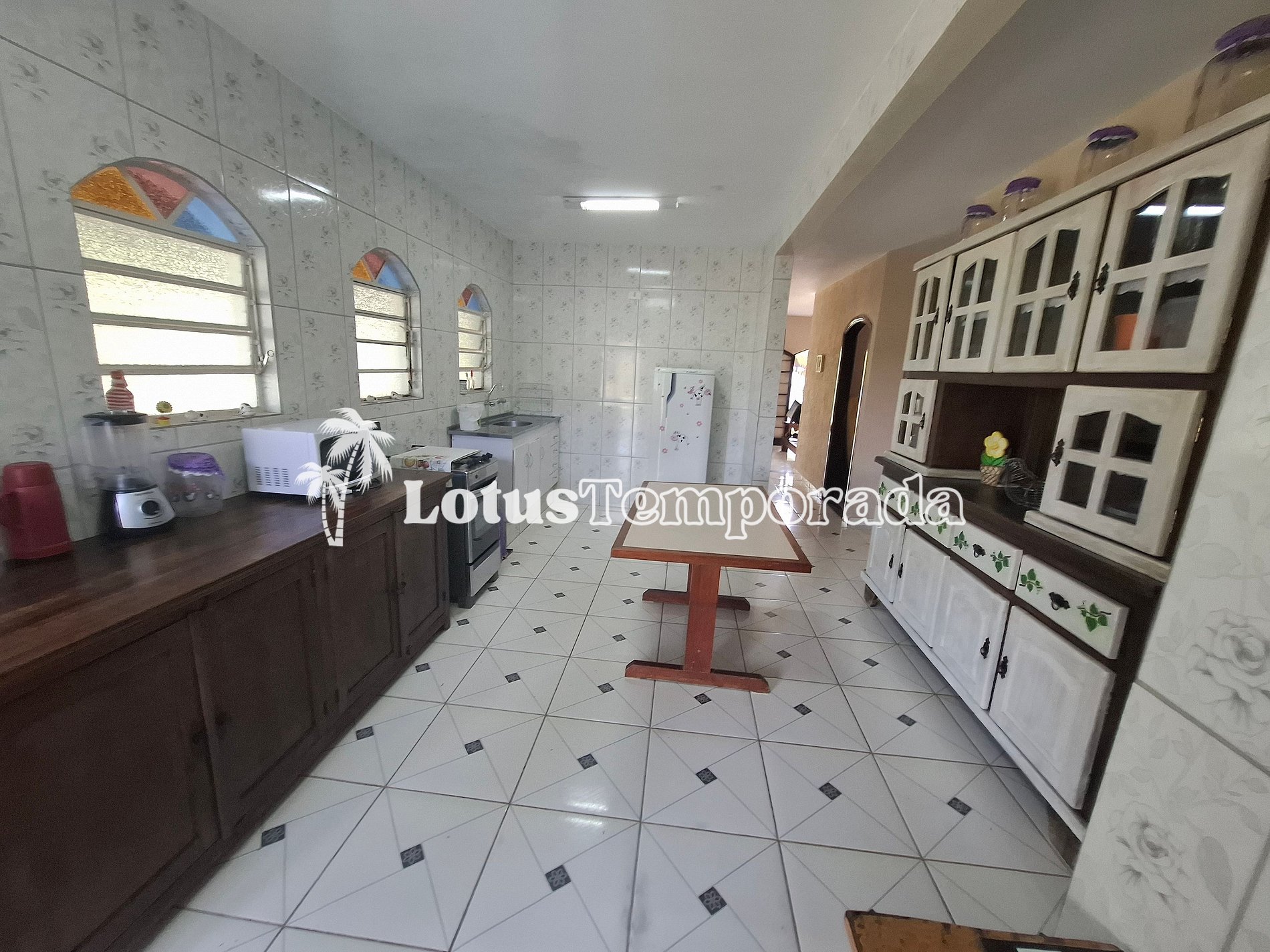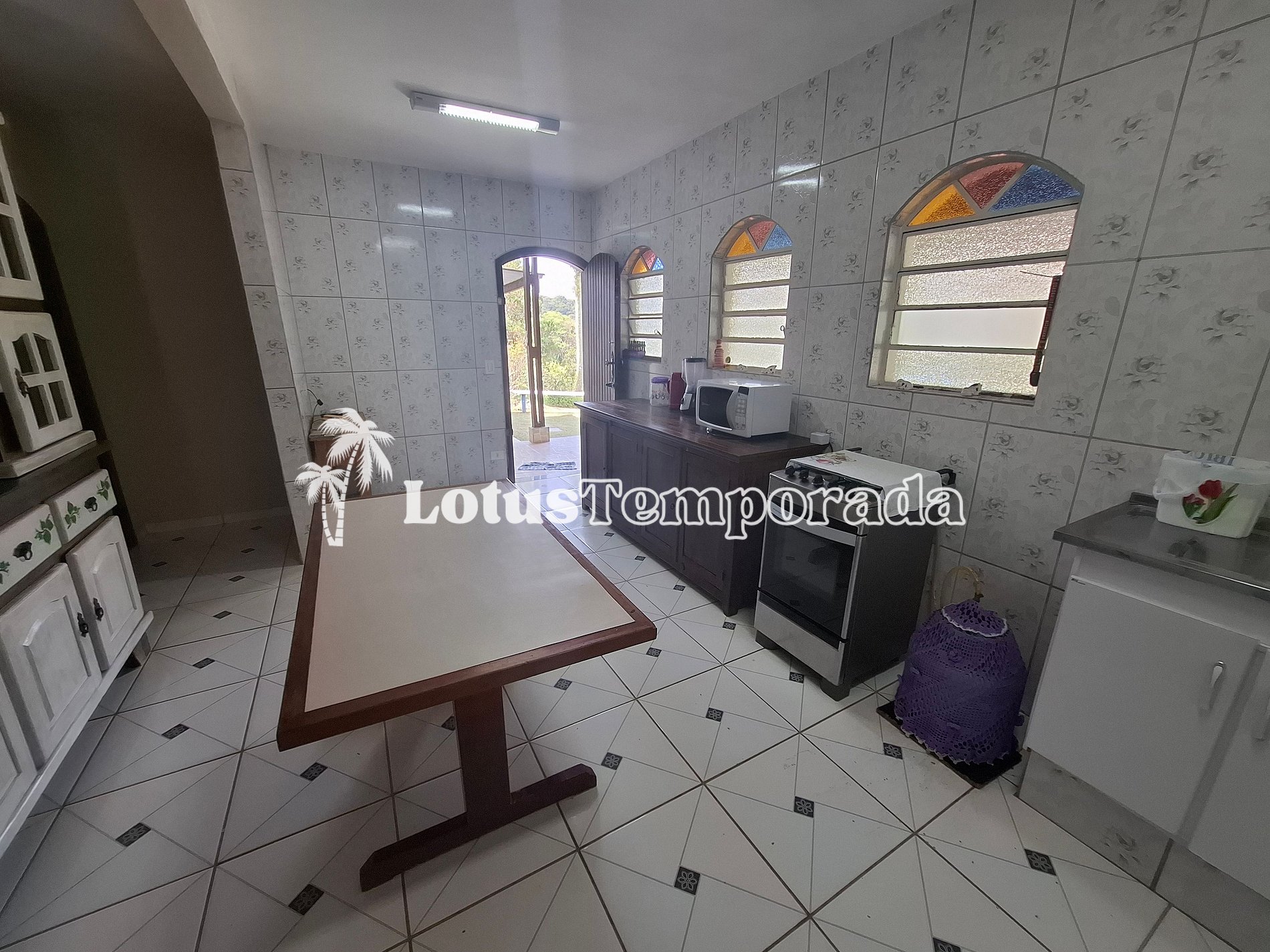 • Cozinha: utensílios básicos, pia, armário, geladeira, micro-ondas, fogão de 4 bocas