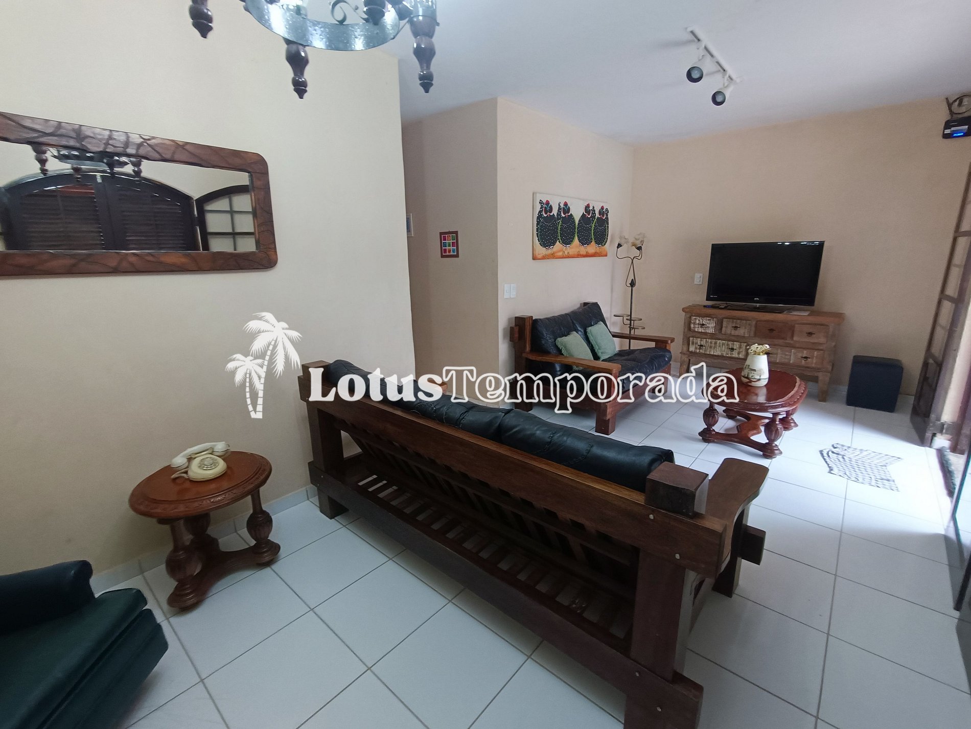 • Sala: TV a cabo, jogo de sofá rústico