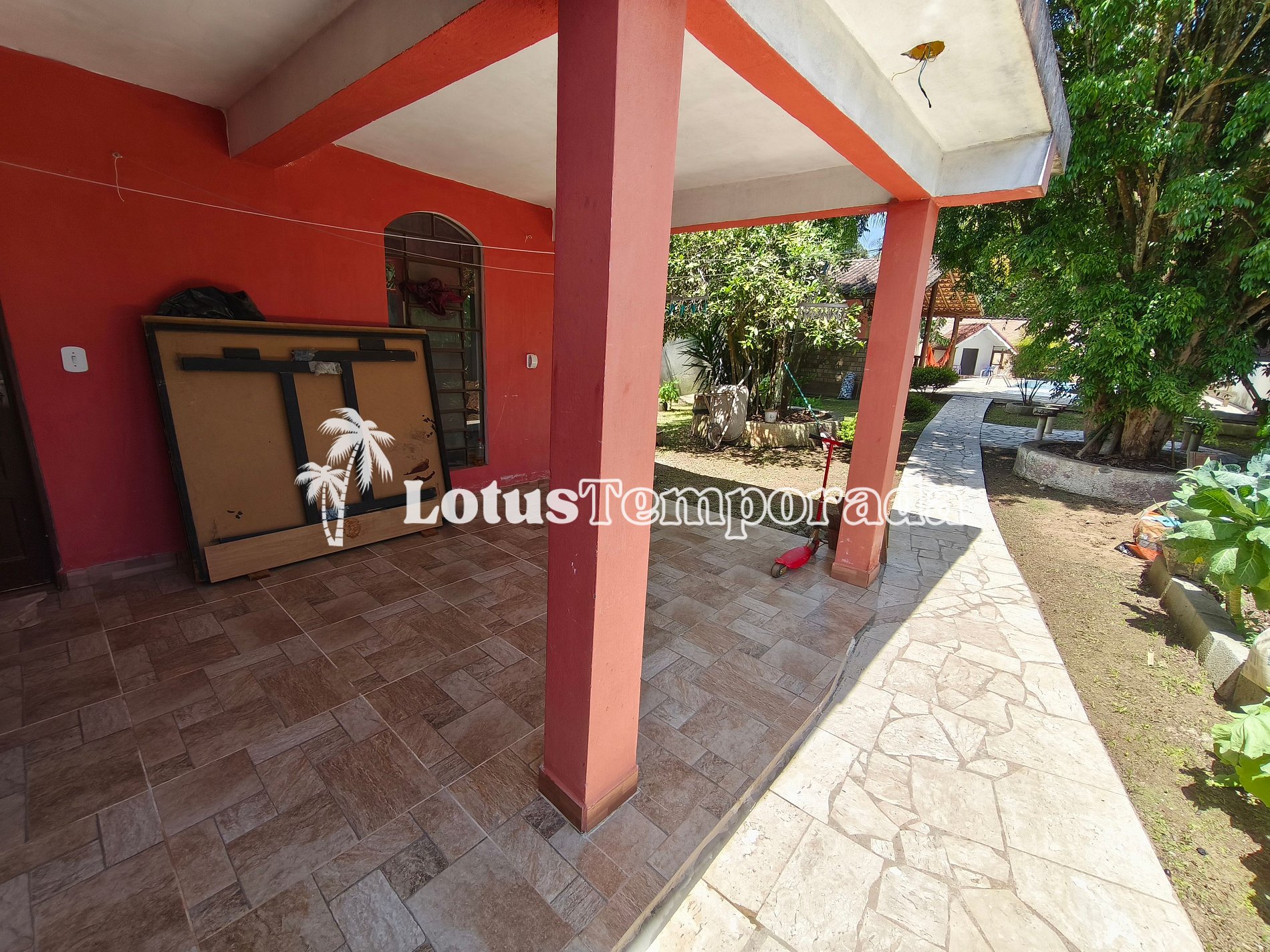 A casa principal conta com 2 dormitórios, sendo 1 suíte externa, além de 1 banheiro social interno, sala de TV e cozinha completa. Para maior comodidade, há também 1 banheiro social externo, ideal para uso durante o lazer.