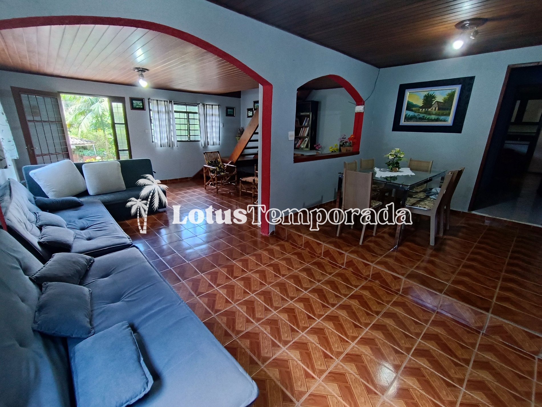 Casa sede em dois andares, sendo o andar térreo com 03 dormitórios sendo 02 suítes, 01 WC social, sala ampla com sofá, TV com Youtube e Netflix, Wi-fi, 01 cozinha com armário e mesa dentro da casa, 01 cozinha externa próximo a churrasqueira com uma geladeira, fogão, utensílios. No andar de cima são 02 dormitórios, 01 lavabo e uma linda varanda com uma vista para a piscina. Lindo jardim, piscina, área ao ar livre com churrasqueira, excelente localização 700 metros da rodovia Régis Bittencourt.