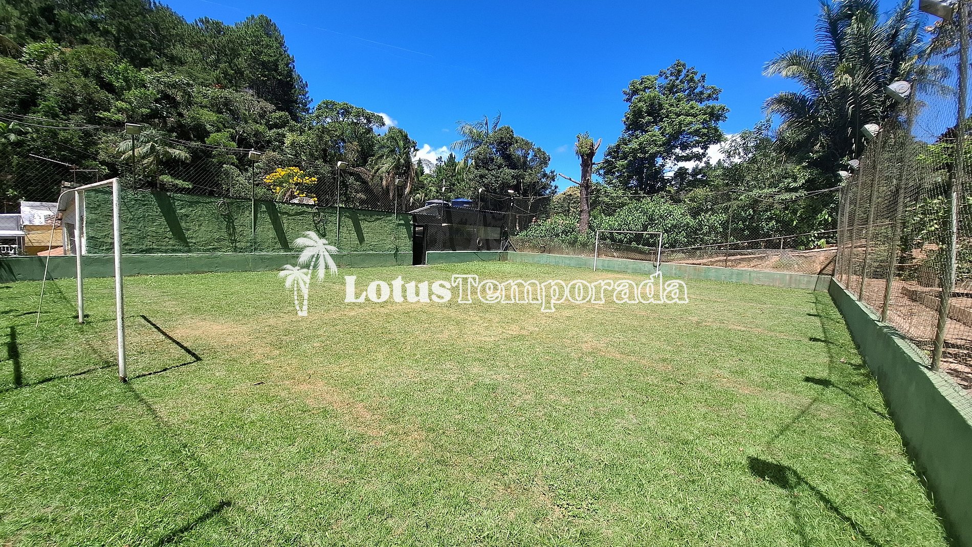 Casa de campo completa com sala de TV e lareira, cozinha equipada, suítes confortáveis e temáticas. Área gourmet com churrasqueira, forno de pizza e fogão industrial. Salão de jogos com sinuca, ping pong e air hockey. Piscina aquecida e coberta, playground seguro e campo de futebol iluminado. Espaço pet coberto, lagos para pesca e área de fogueira. Wi-Fi interno e externo, segurança com câmeras e amplo estacionamento. Ideal para lazer e descanso em São Paulo.