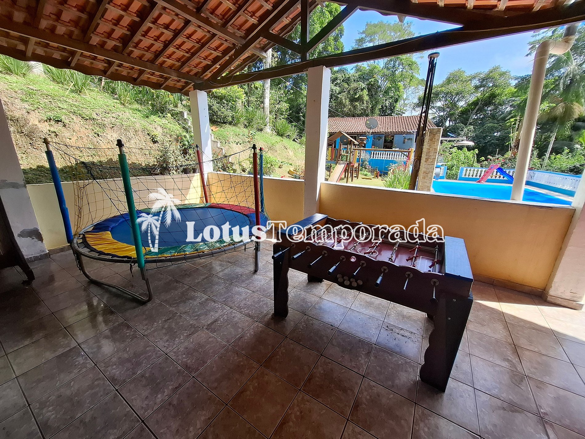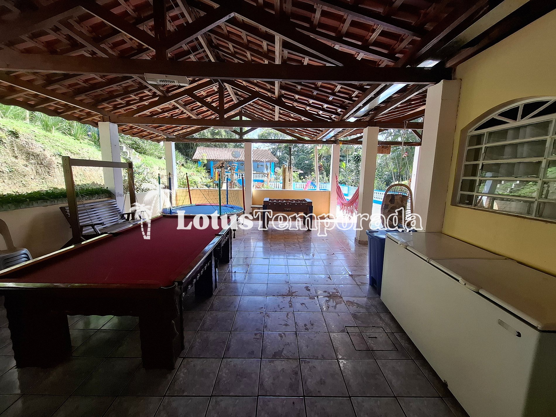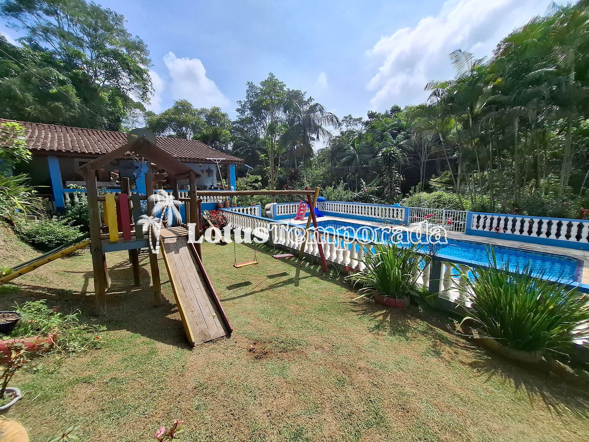 Chácara com casa sede com 3 dormitórios, sala ampla com TV a cabo e área gourmet completa com churrasqueira, fogão, geladeira e freezer. Piscina 9x4m, salão de jogos com sinuca e pebolim, cama elástica e playground. Conta ainda com pomar, bosque para caminhadas e ambiente ideal para descansar e se divertir com a família.