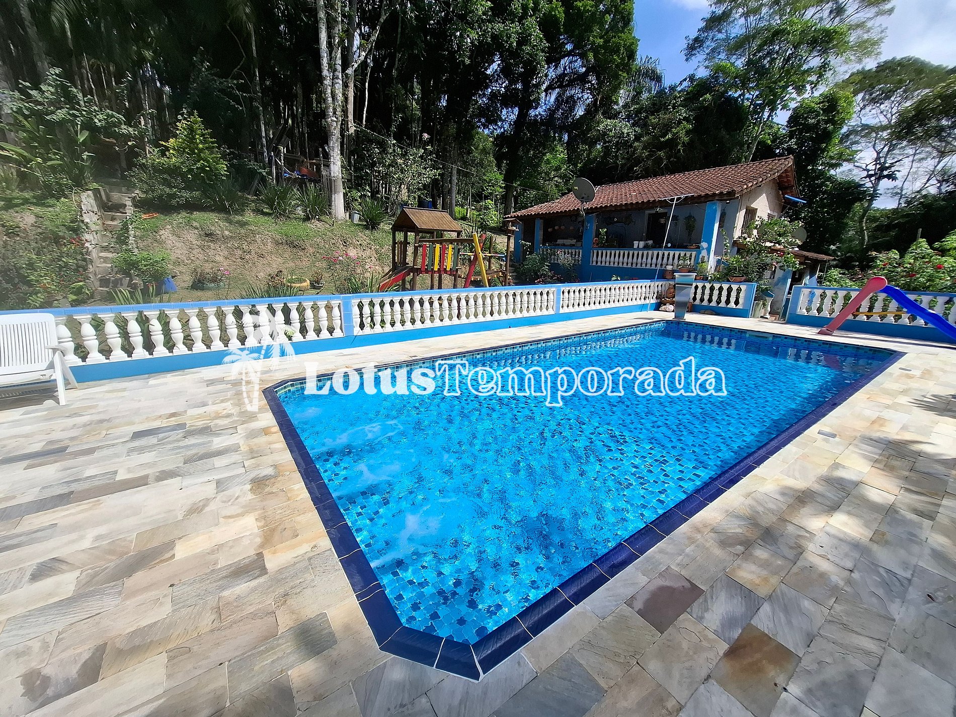 Chácara com casa sede com 3 dormitórios, sala ampla com TV a cabo e área gourmet completa com churrasqueira, fogão, geladeira e freezer. Piscina 9x4m, salão de jogos com sinuca e pebolim, cama elástica e playground. Conta ainda com pomar, bosque para caminhadas e ambiente ideal para descansar e se divertir com a família.