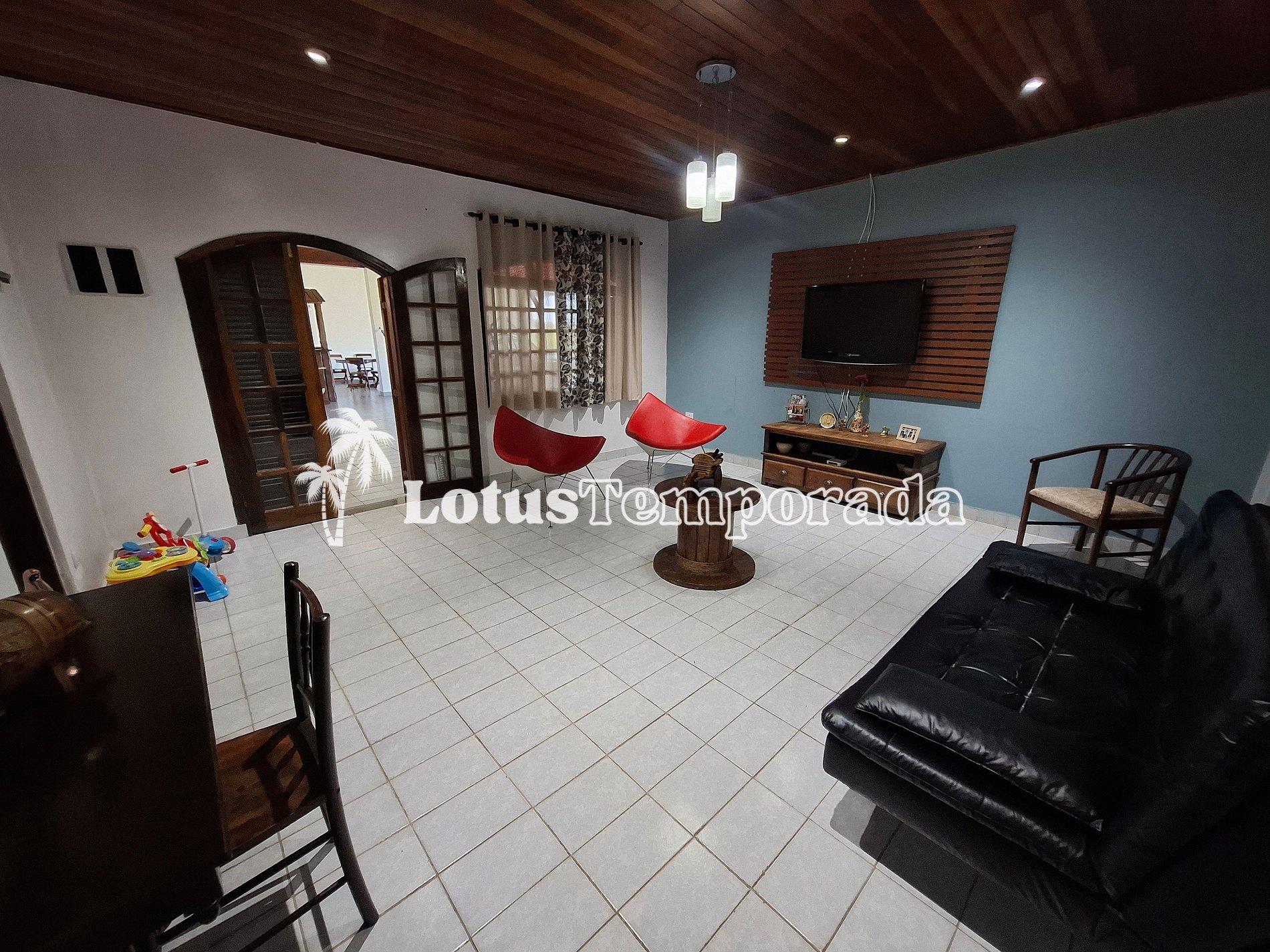 • Suíte 02: 01 cama de casal, 02 beliches e sala conjugada com TV