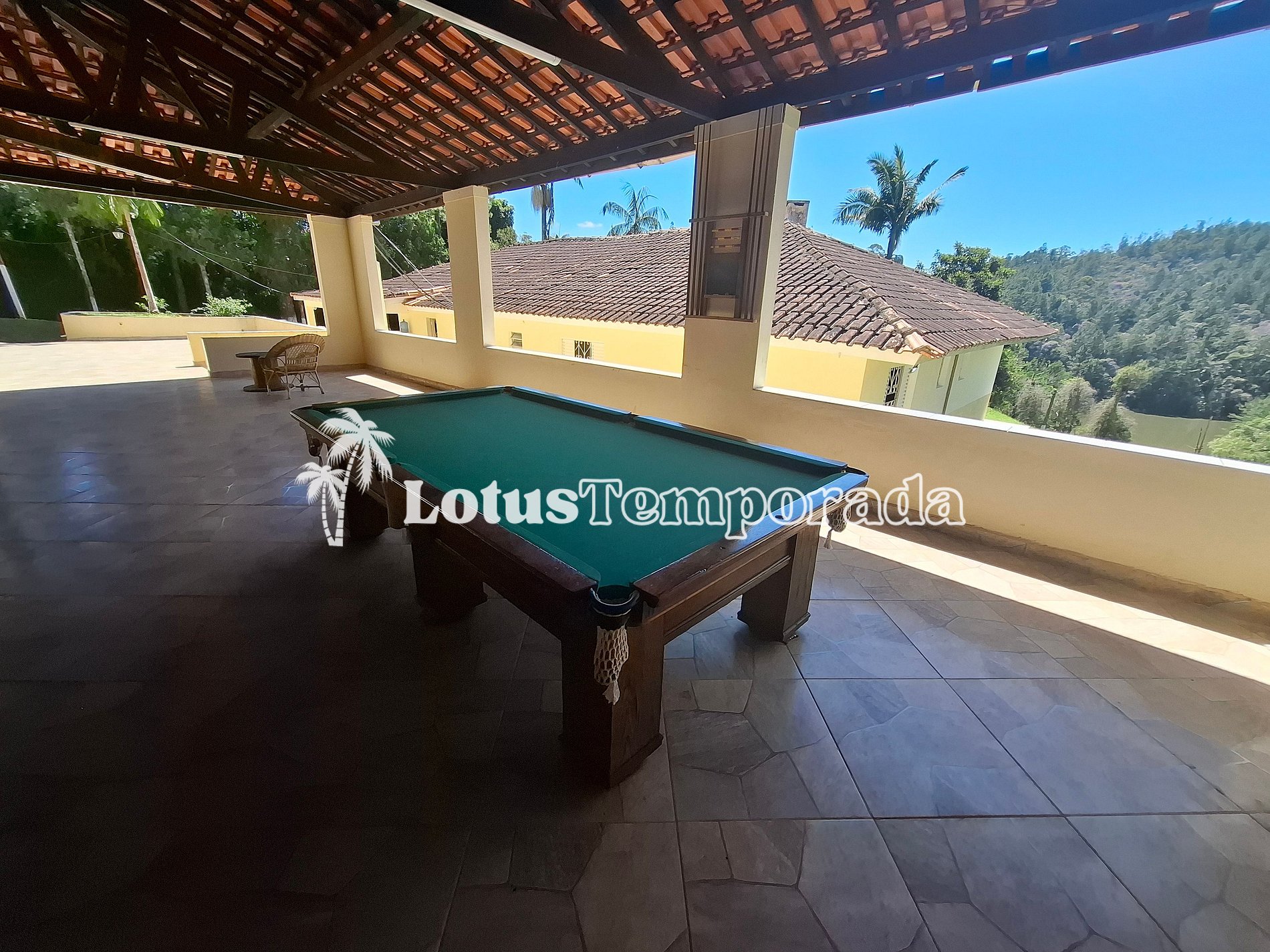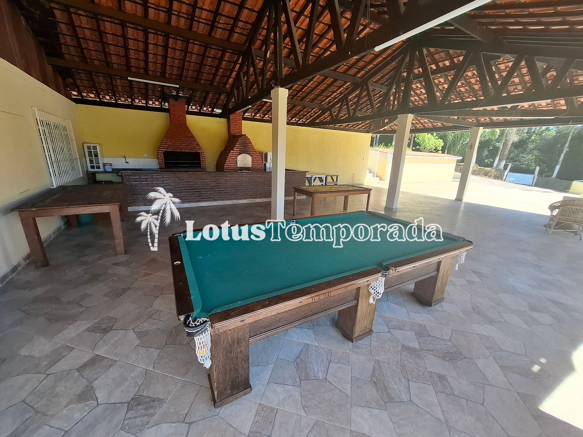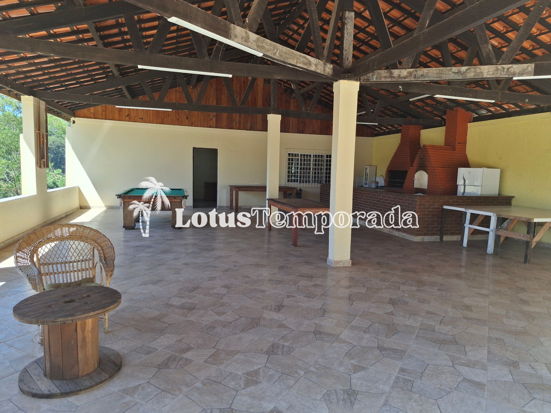Além da casa principal, a chácara conta com uma área de lazer completa. Um salão com mesa de sinuca profissional está disponível para entretenimento. A área gourmet é equipada com churrasqueira, forno de pizza e geladeira, e inclui uma suíte externa ampla com dois banheiros, oferecendo conforto adicional para os convidados.