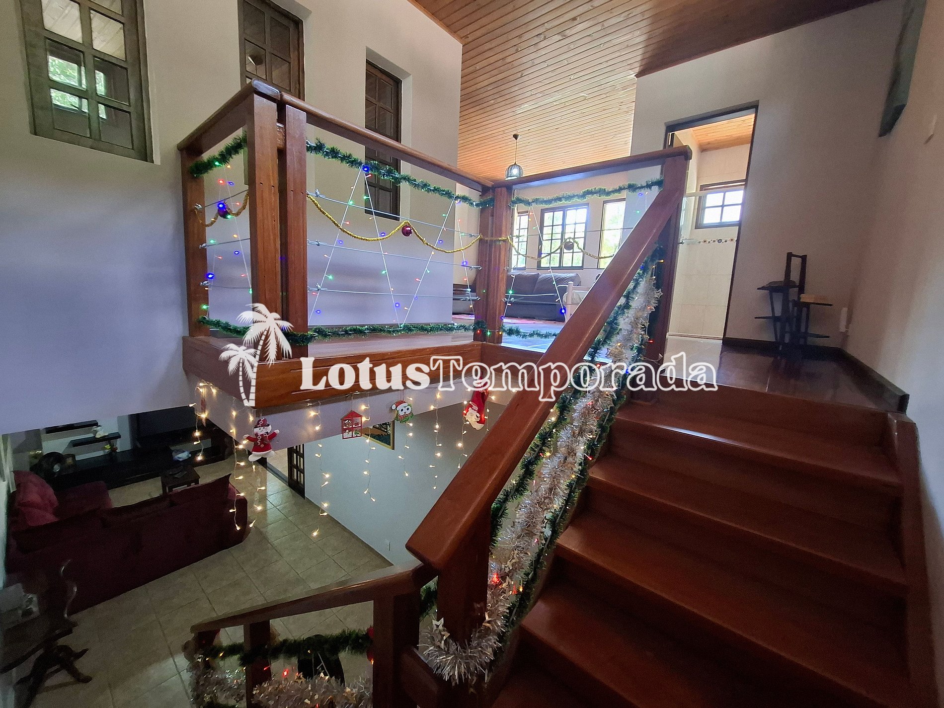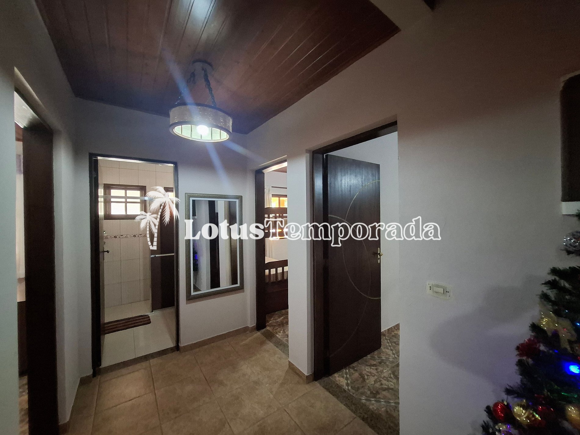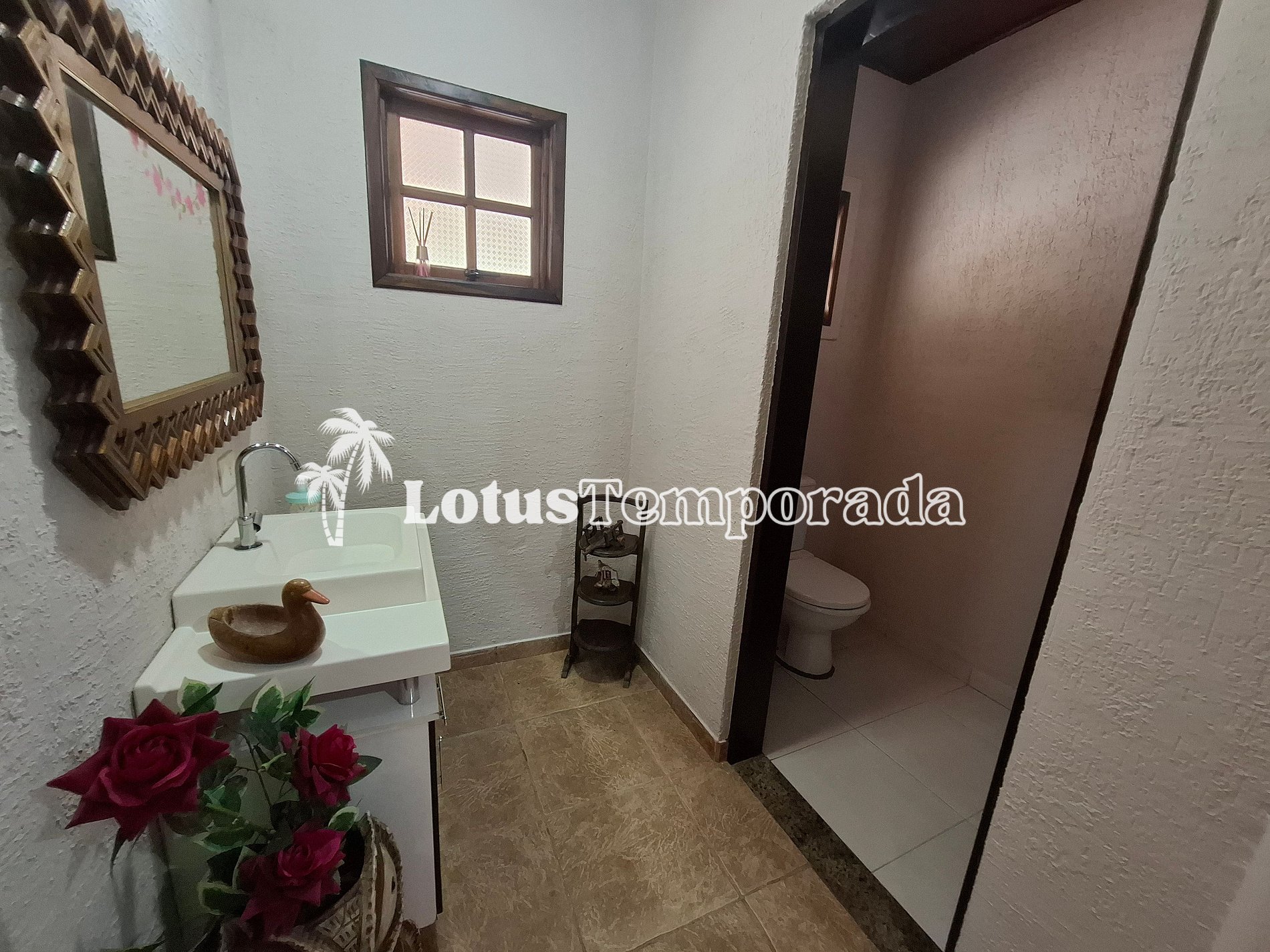 A casa conta com várias áreas sociais, incluindo uma ampla sala de estar, uma sala de TV equipada com diversos canais e uma charmosa sala de jantar, ideal para refeições em grupo. A cozinha, completamente equipada, oferece tudo o que é necessário para preparar deliciosas refeições. Além disso, a casa possui cinco dormitórios bem iluminados, dois banheiros sociais e um lavabo, garantindo conforto para todos os hóspedes. Há também uma sala de descanso aconchegante, equipada com uma TV Smart, perfeita para relaxar após um dia de atividades.