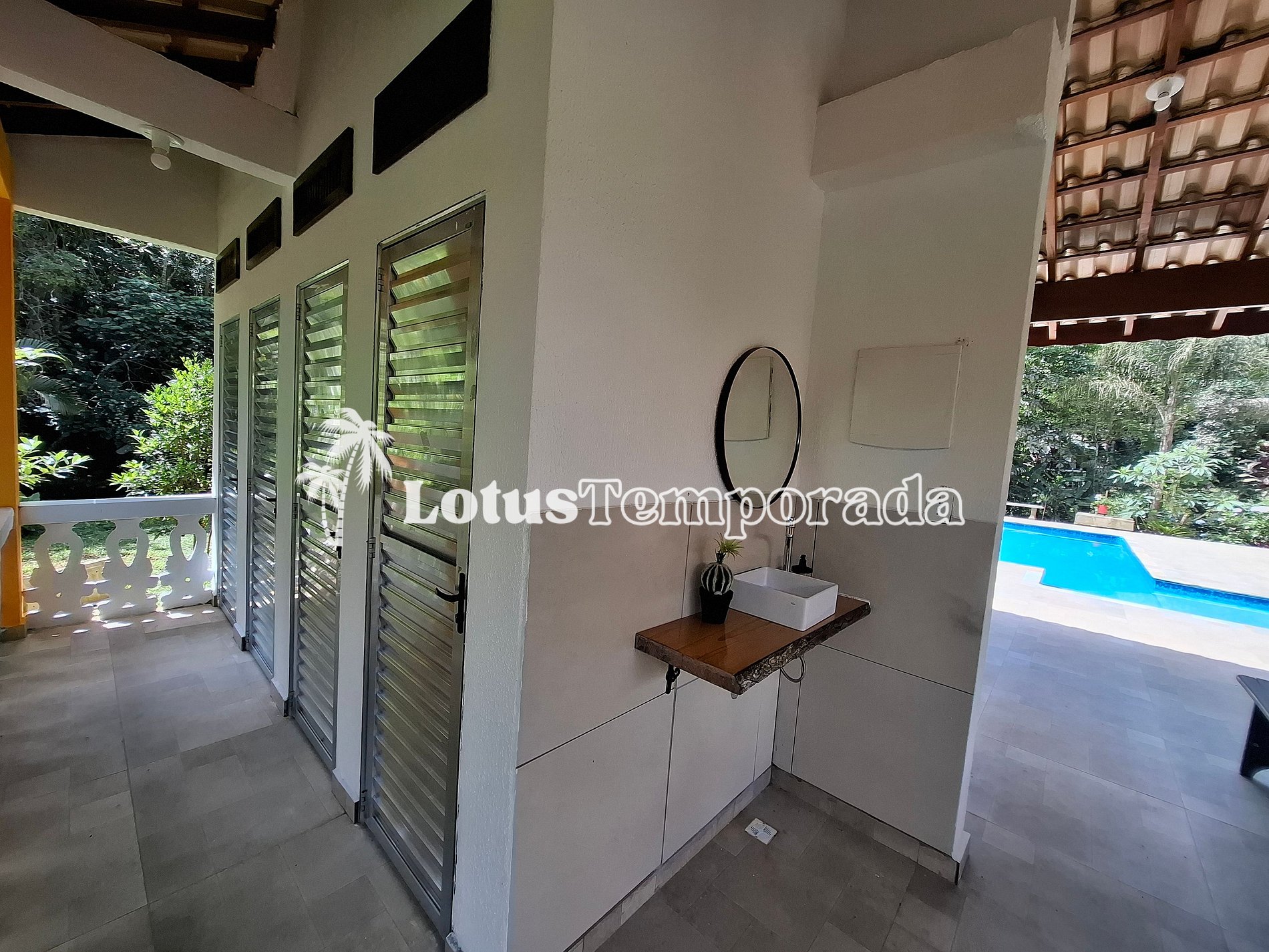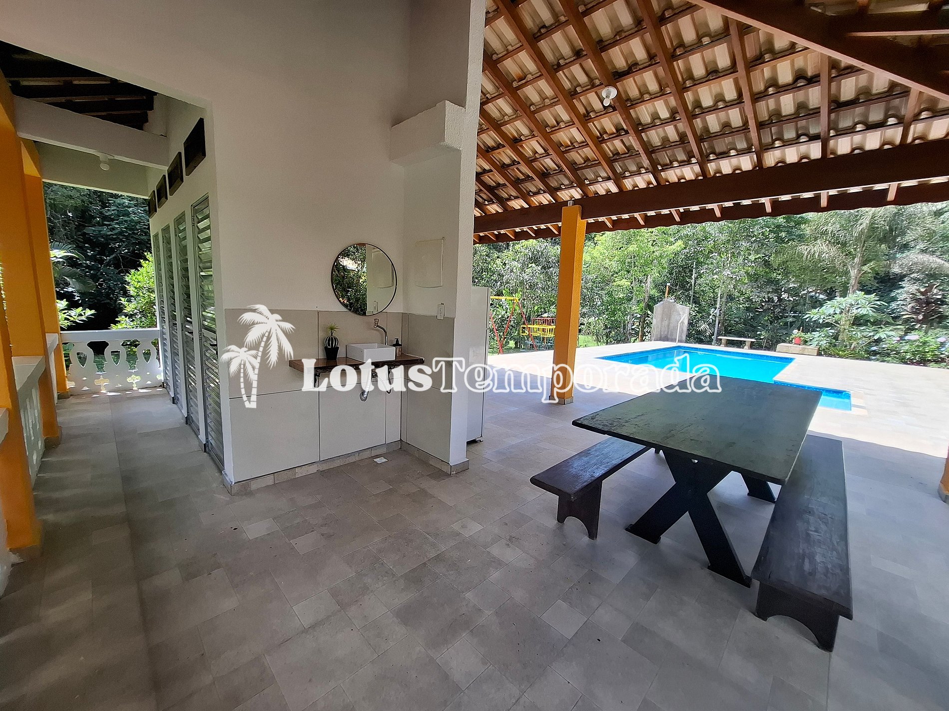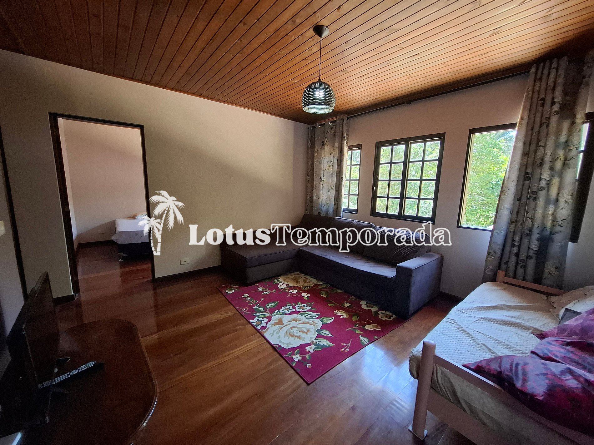 A casa conta com várias áreas sociais, incluindo uma ampla sala de estar, uma sala de TV equipada com diversos canais e uma charmosa sala de jantar, ideal para refeições em grupo. A cozinha, completamente equipada, oferece tudo o que é necessário para preparar deliciosas refeições. Além disso, a casa possui cinco dormitórios bem iluminados, dois banheiros sociais e um lavabo, garantindo conforto para todos os hóspedes. Há também uma sala de descanso aconchegante, equipada com uma TV Smart, perfeita para relaxar após um dia de atividades.