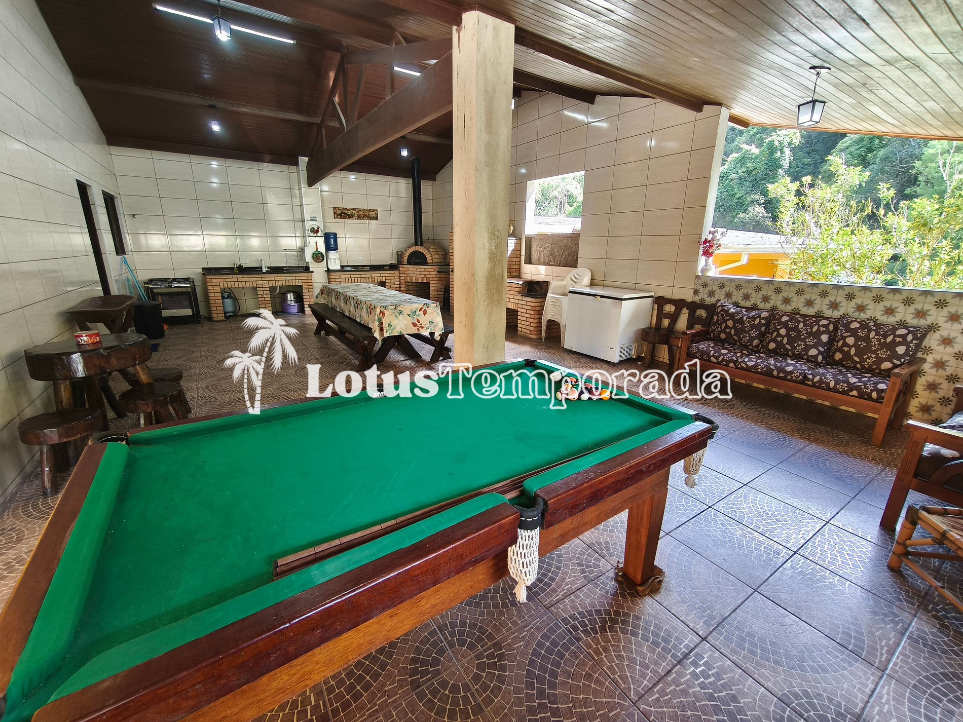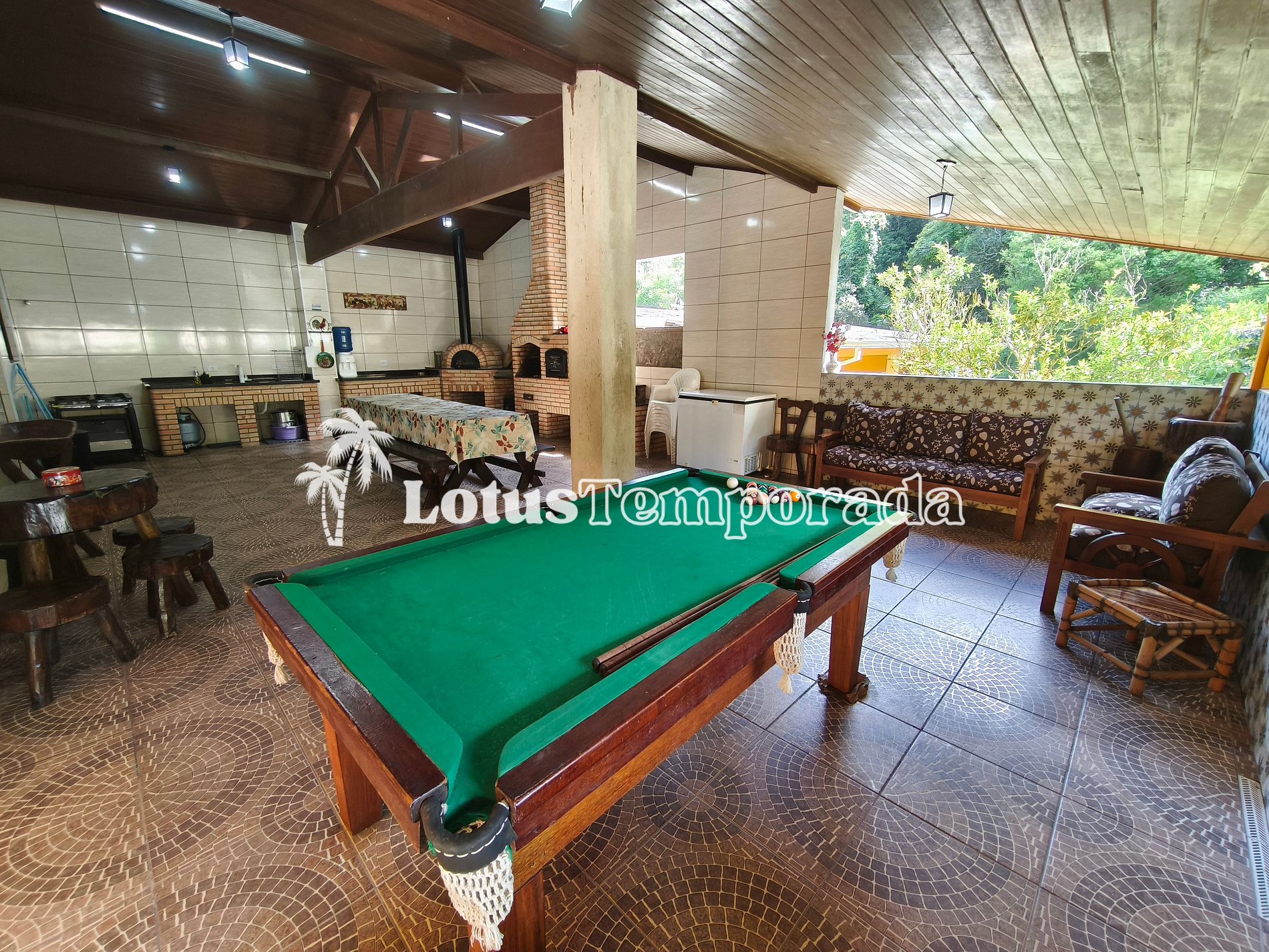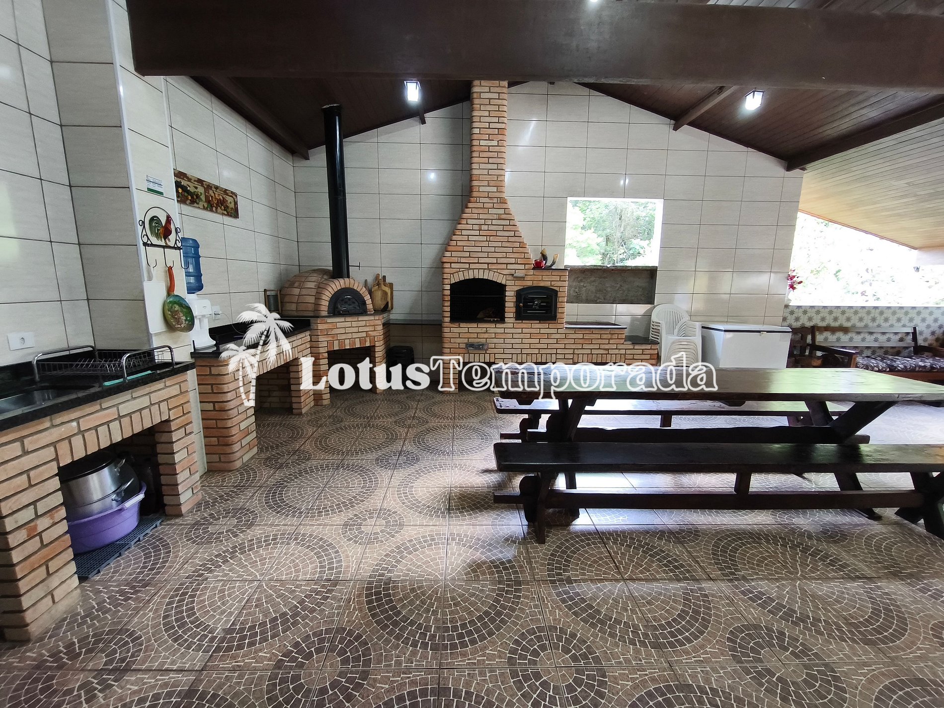 • Churrasqueira, forno de pizza e fogão a lenha.