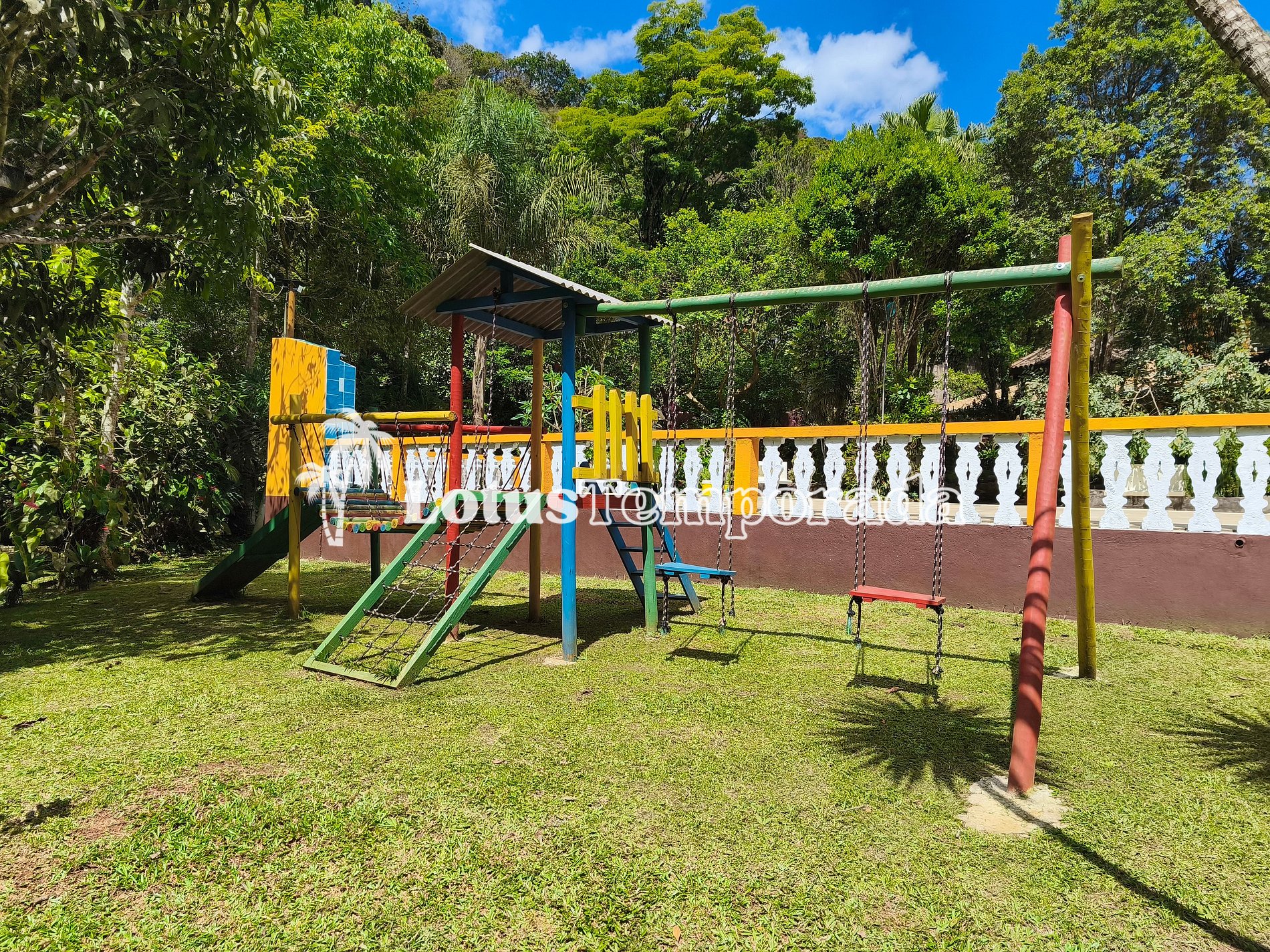 • Playground com balanço e gaiola labirinto trepa-trepa.