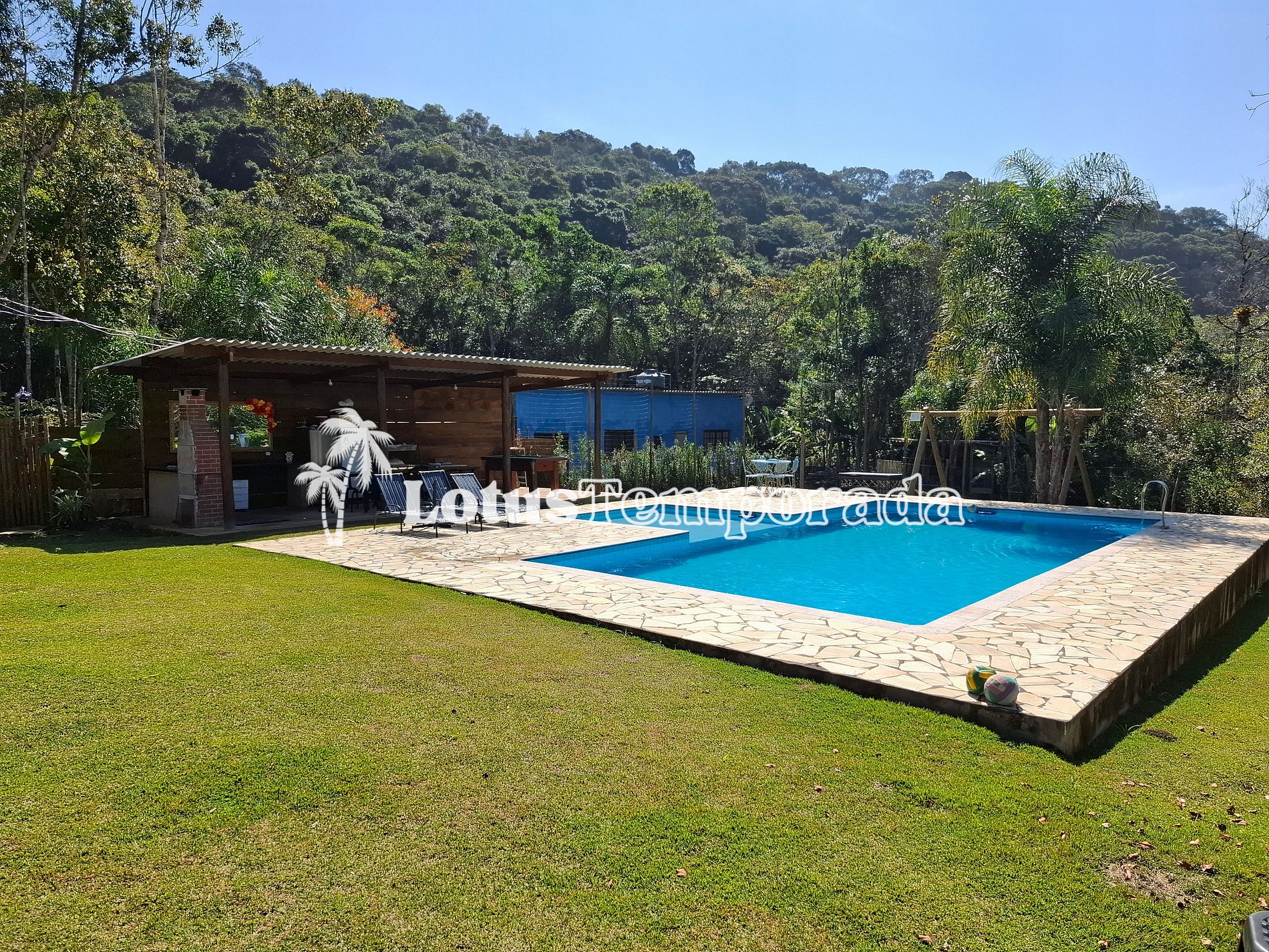 A área de churrasco é um convite para reunir todo mundo e aproveitar um bom almoço ou jantar ao ar livre, cercado pelo verde do jardim, que deixa o ambiente ainda mais bonito. Em resumo, essa chácara tem tudo para garantir momentos incríveis, com muito espaço, natureza e diversão.