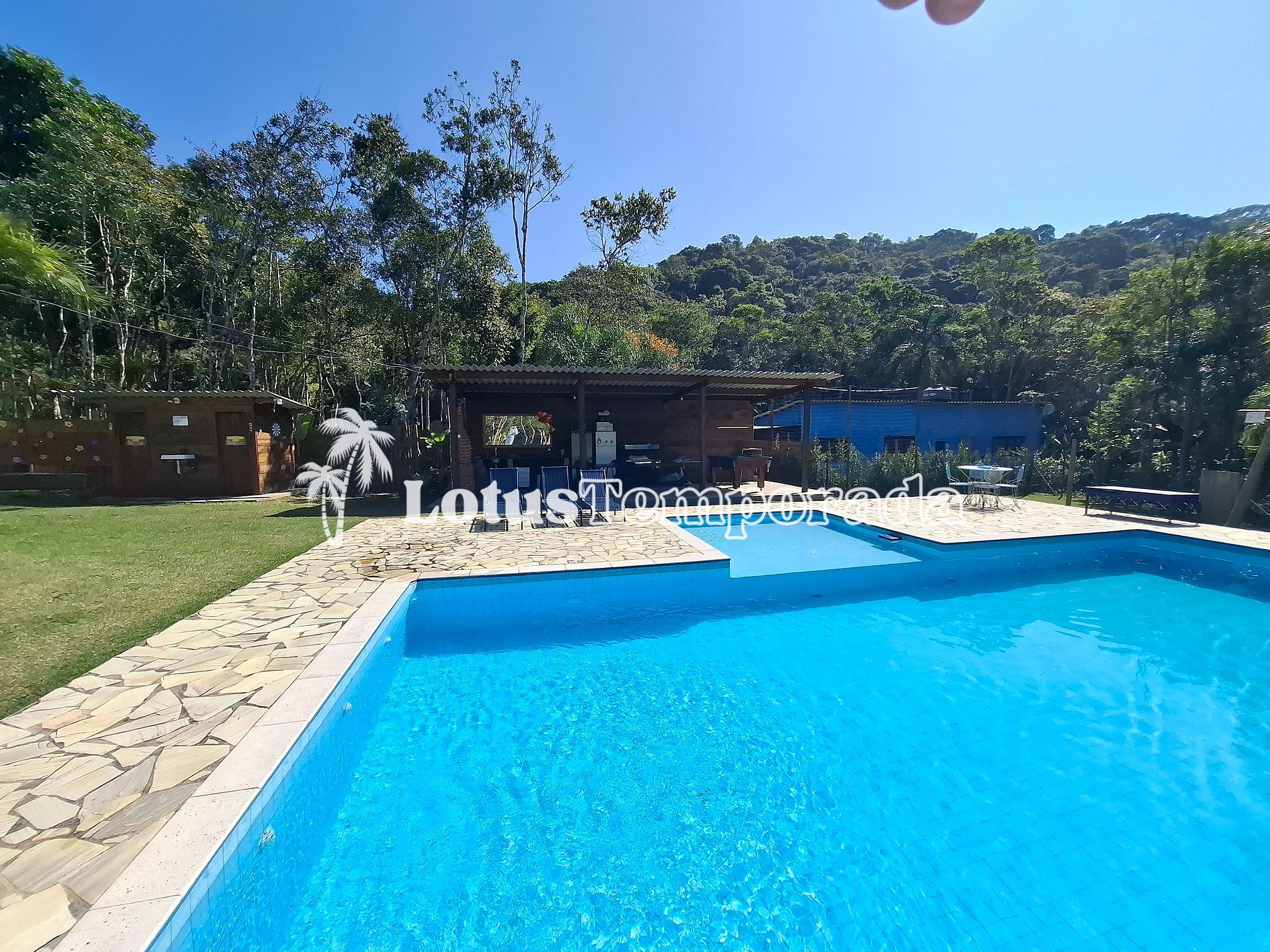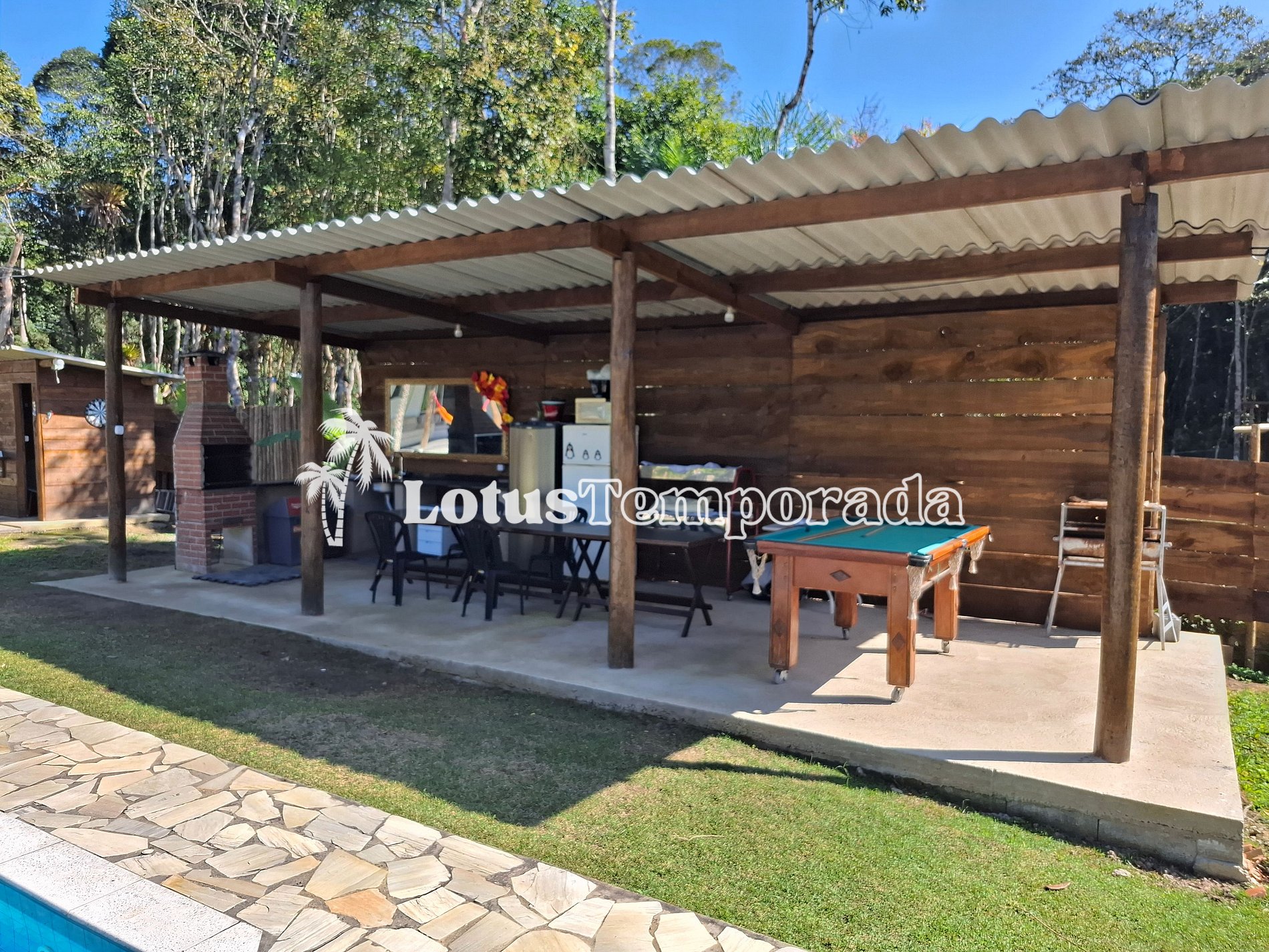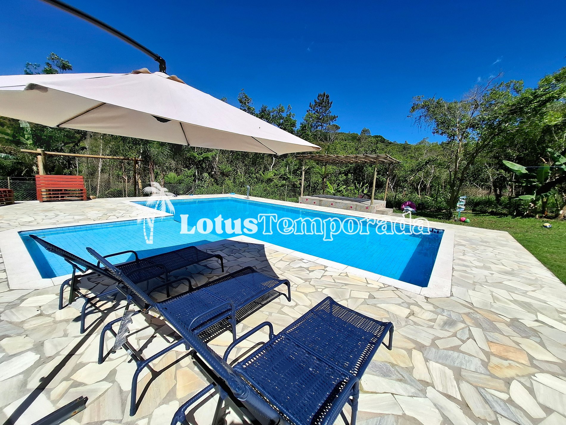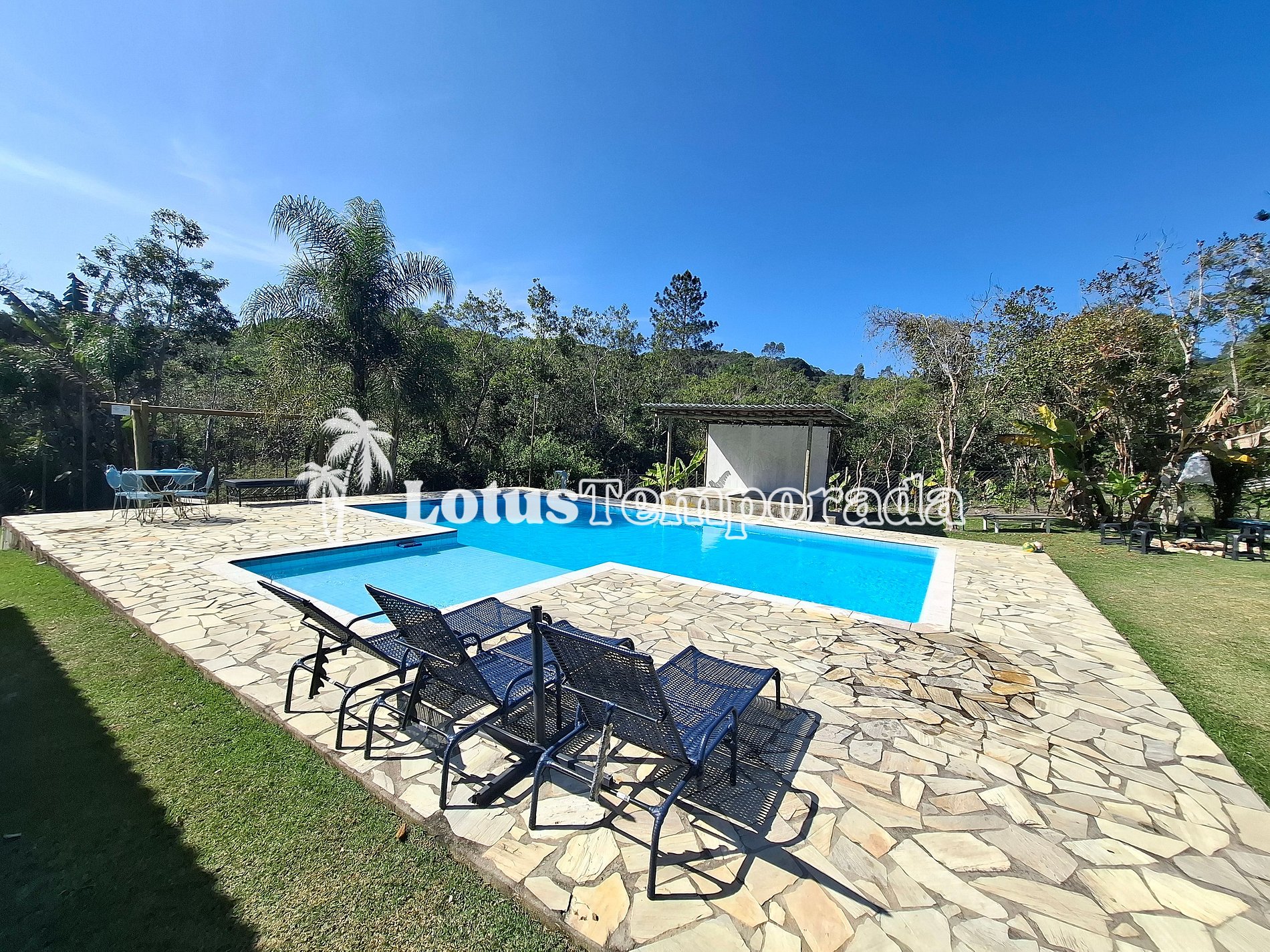 A área de churrasco é um convite para reunir todo mundo e aproveitar um bom almoço ou jantar ao ar livre, cercado pelo verde do jardim, que deixa o ambiente ainda mais bonito. Em resumo, essa chácara tem tudo para garantir momentos incríveis, com muito espaço, natureza e diversão.