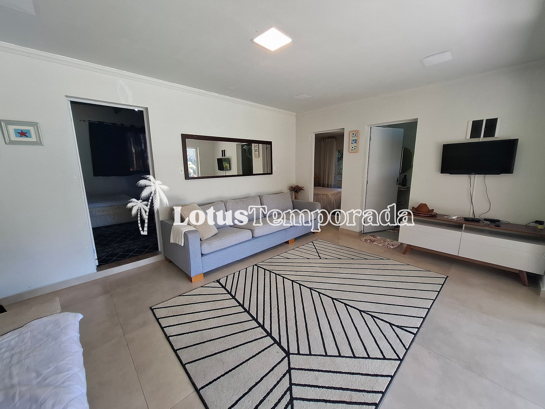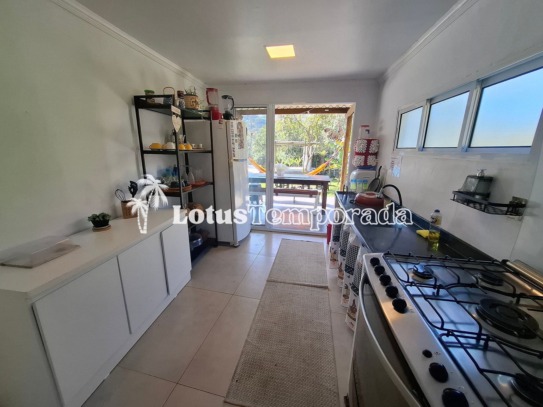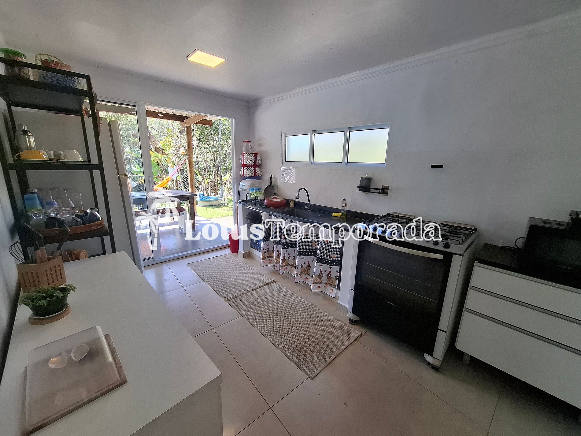 Dentro da casa, tem um banheiro social, uma suíte com TV e mais um dormitório. Fora da casa principal, tem ainda outro quarto extra, perfeito para quem busca mais privacidade. A cozinha é completa, com tudo o que você precisa para preparar suas refeições sem complicação.