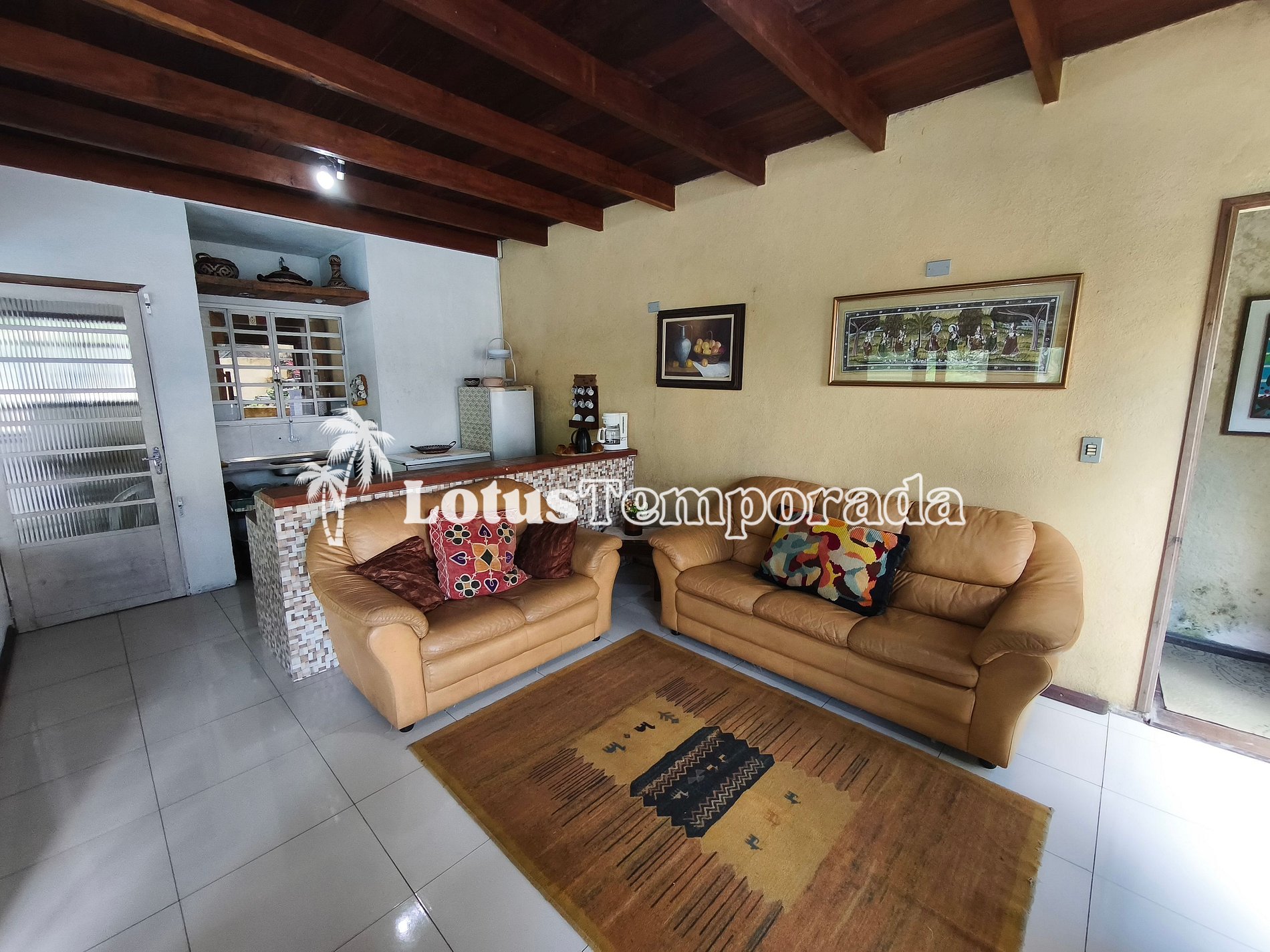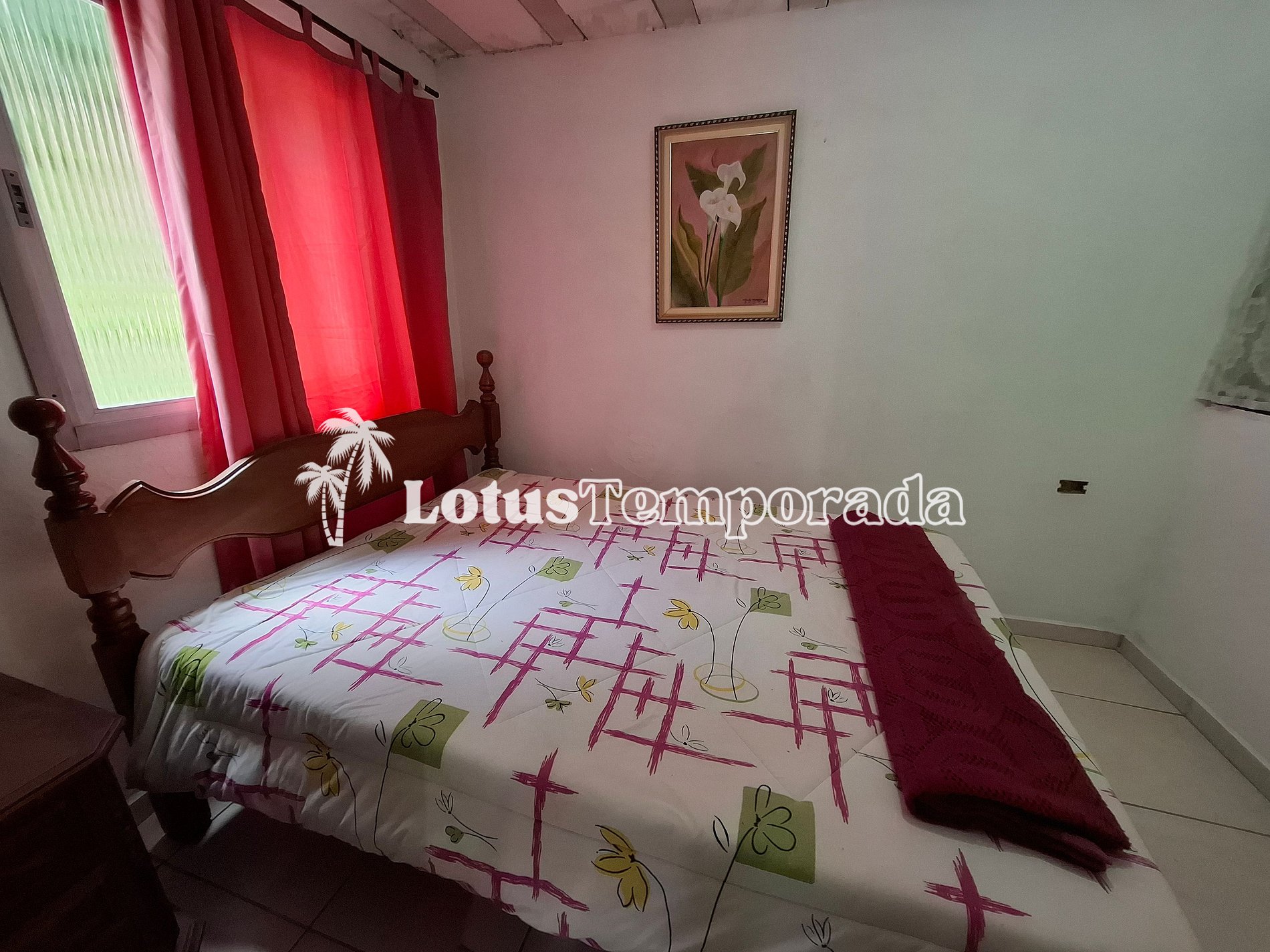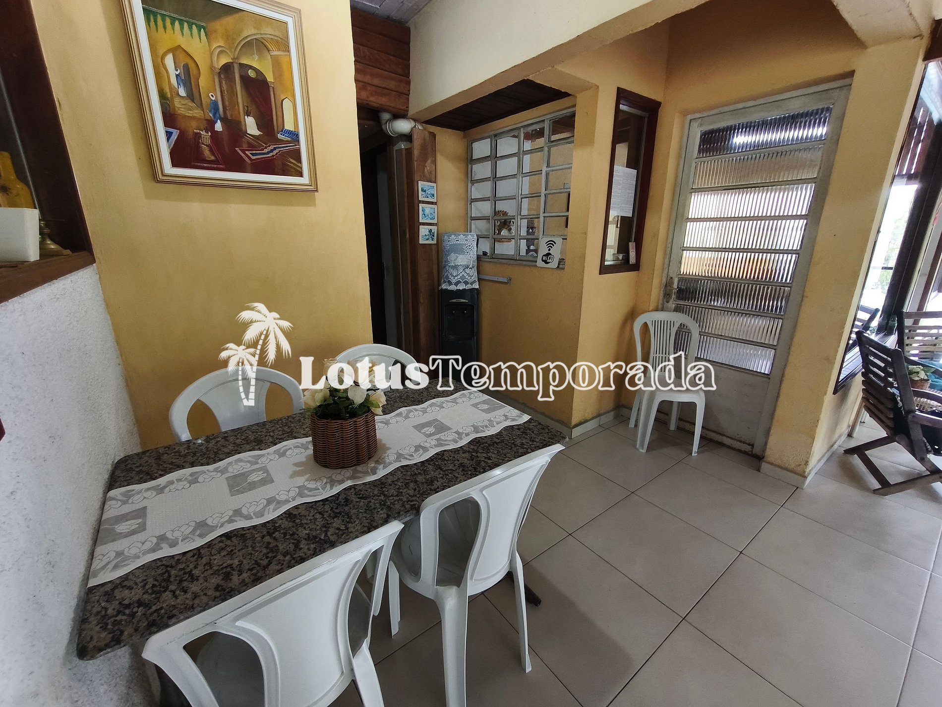 A casa principal é acolhedora e funcional, com uma cozinha compacta, sala de estar com TV de tubo equipada com SKY (canais abertos), Wi-Fi, dois dormitórios e um ambiente extra com uma beliche. Há também um banheiro social interno e dois lavabos externos para maior comodidade.