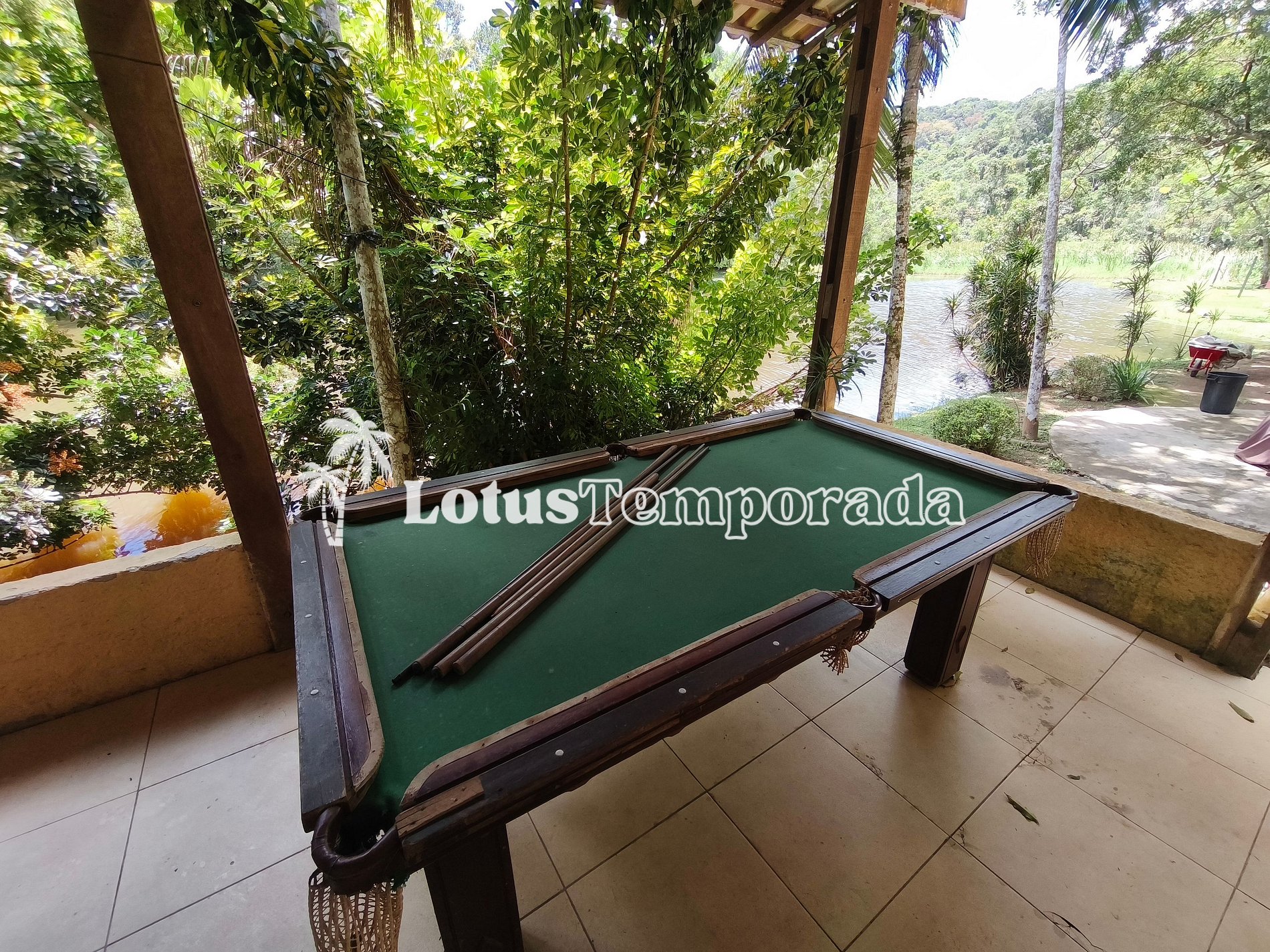A área gourmet é integrada ao espaço de descanso e dispõe de uma churrasqueira, pia e mesas grandes para refeições. O salão de jogos, com mesa de sinuca e pebolim, é uma ótima opção de diversão, enquanto a área de convivência e o espaço de fogueira com bancos de alvenaria proporcionam momentos únicos com uma vista privilegiada do lago. Para os amantes de esportes, a chácara oferece um campo de vôlei gramado.