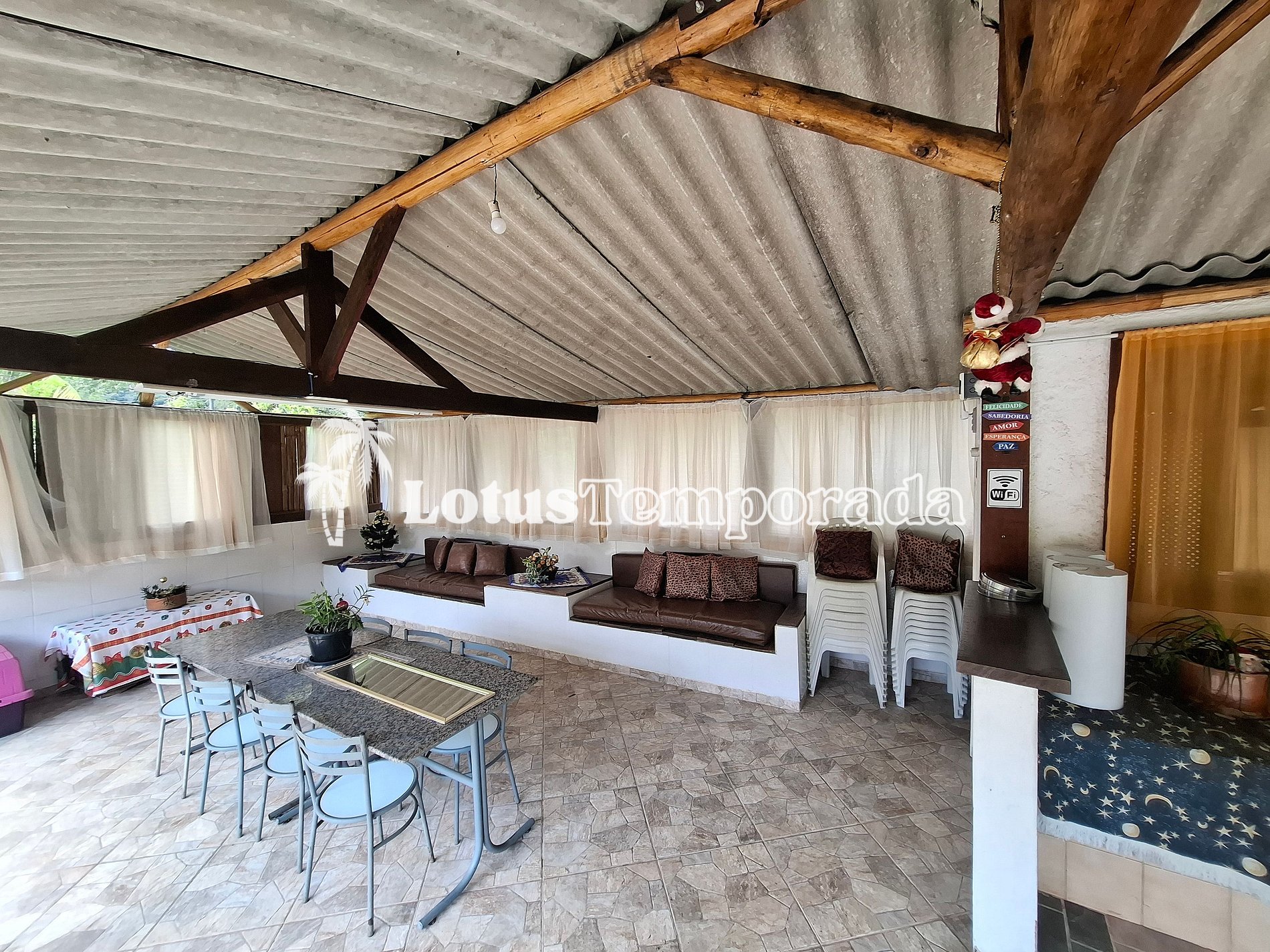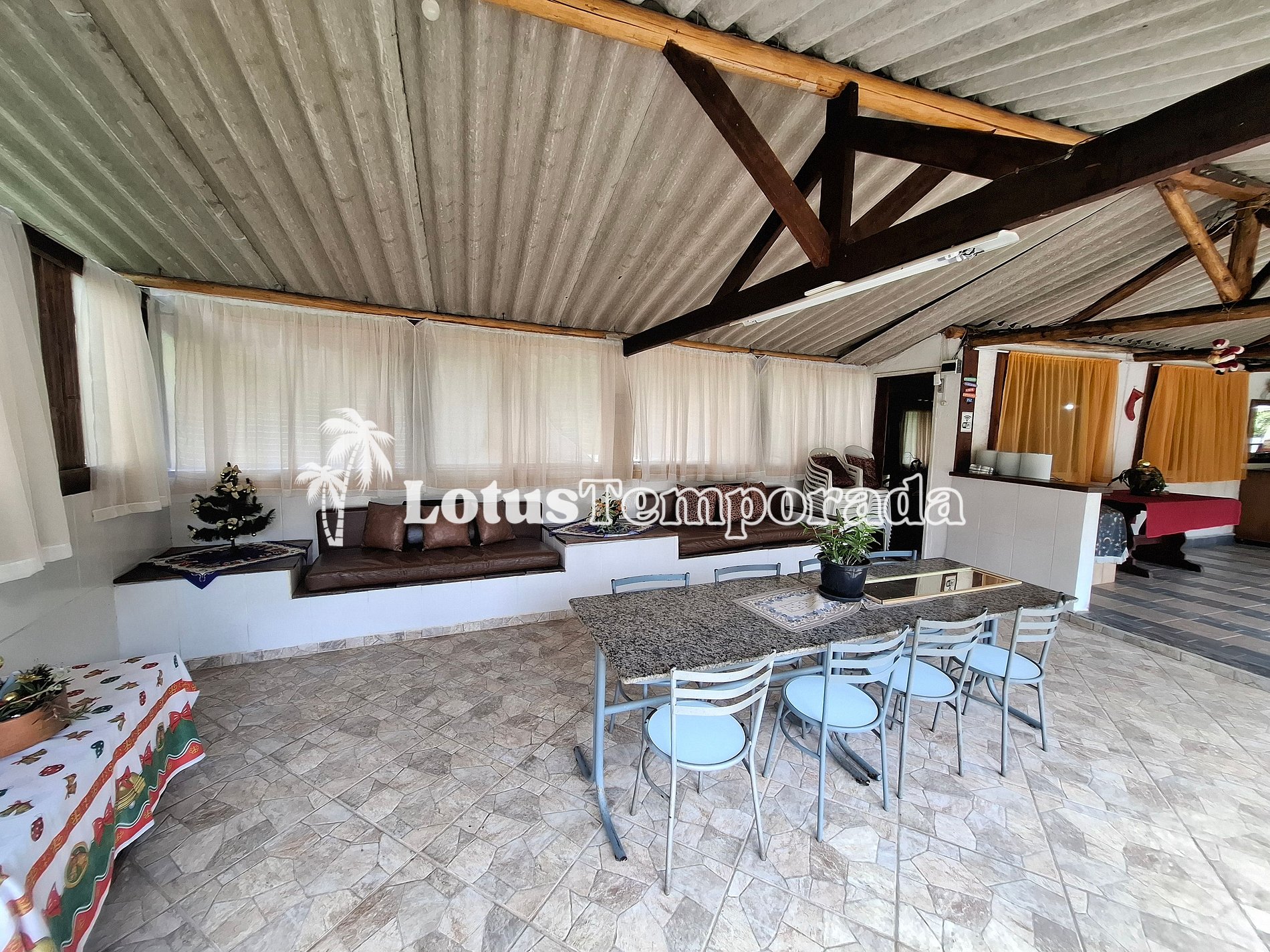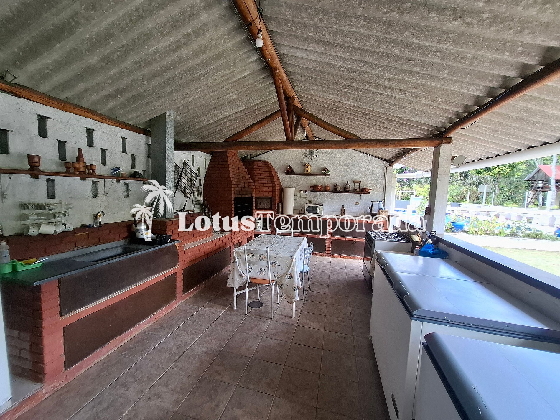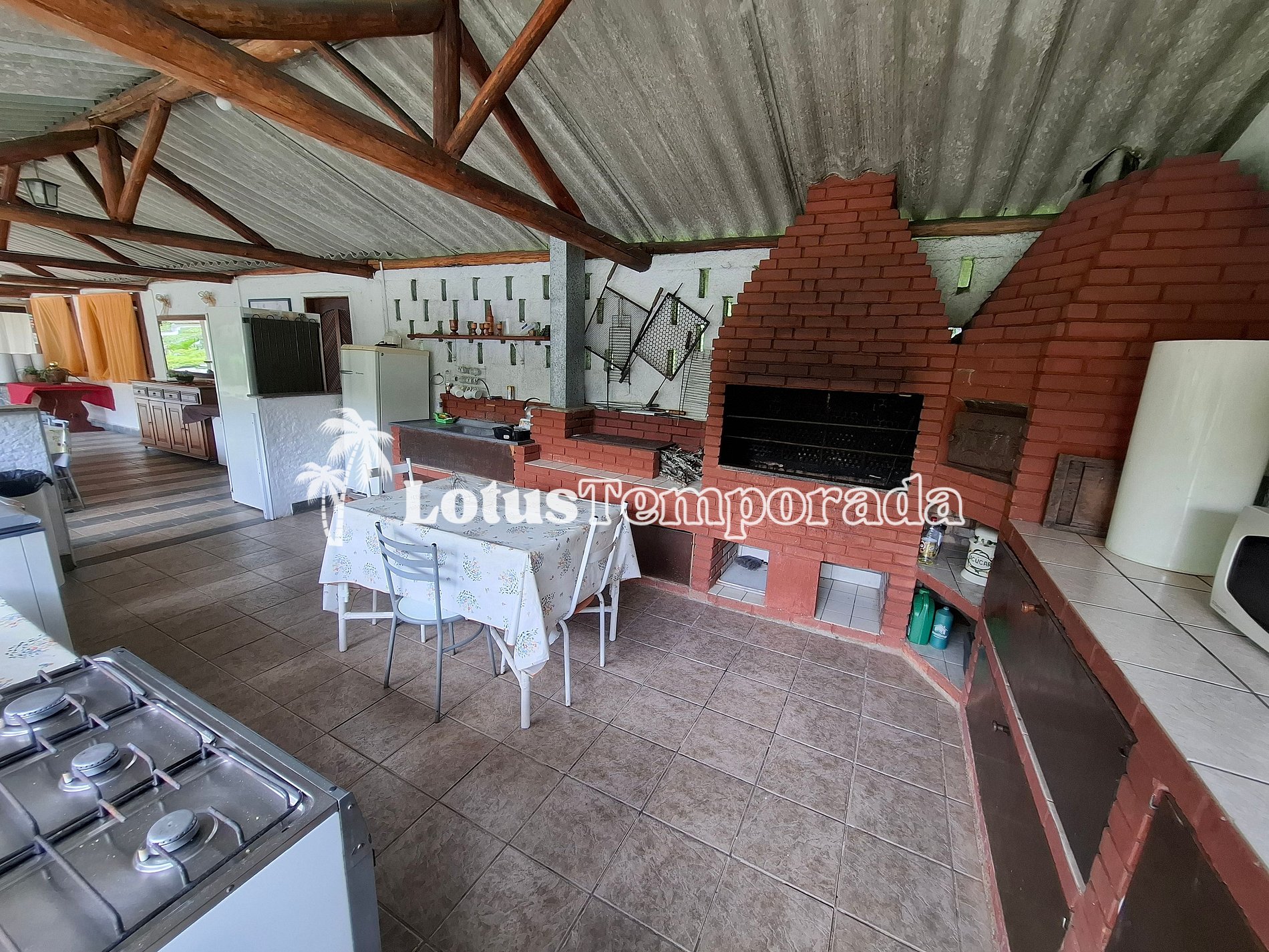 • Ampla área gourmet com churrasqueira, mesas e espaço para descanso.