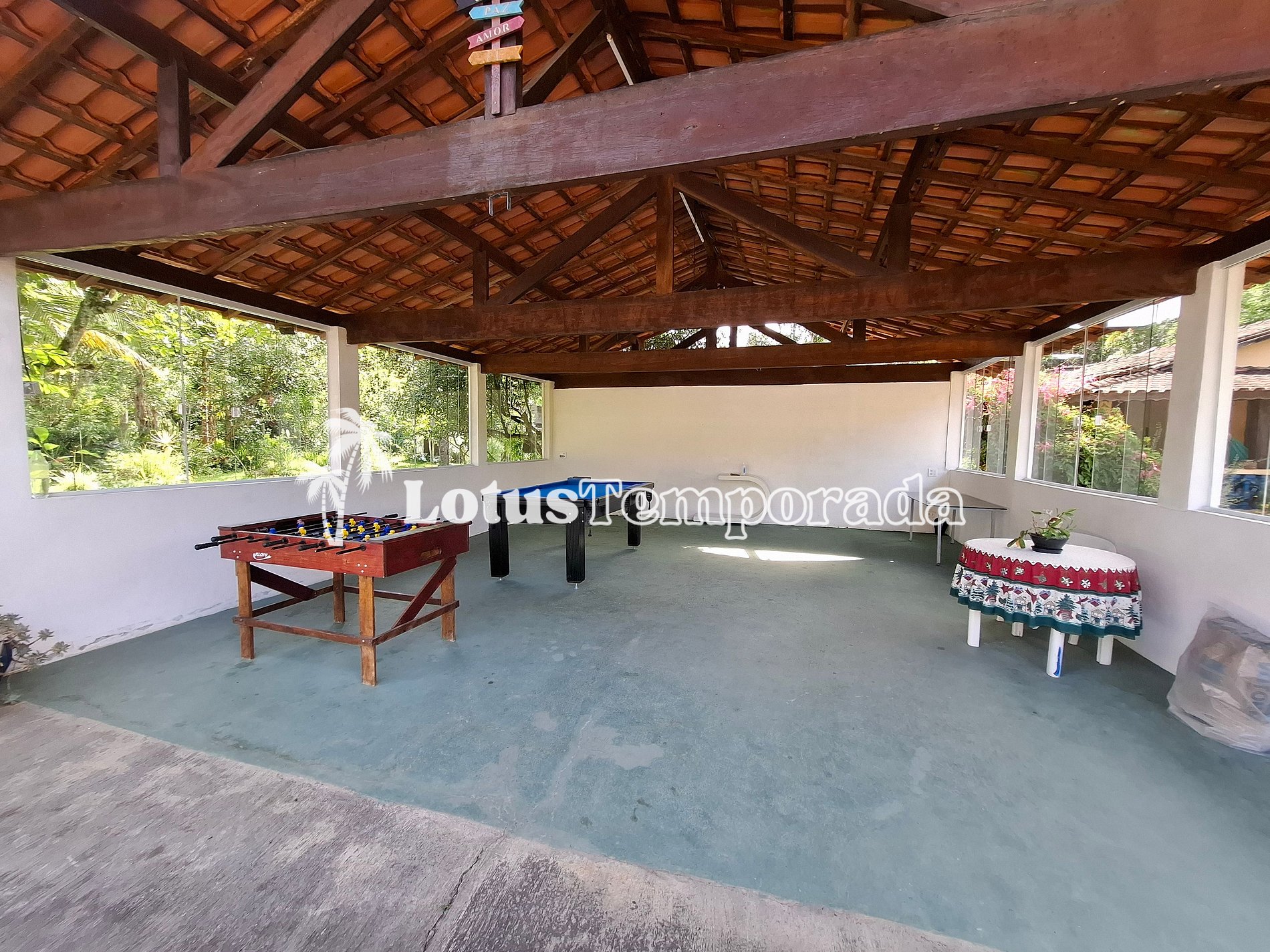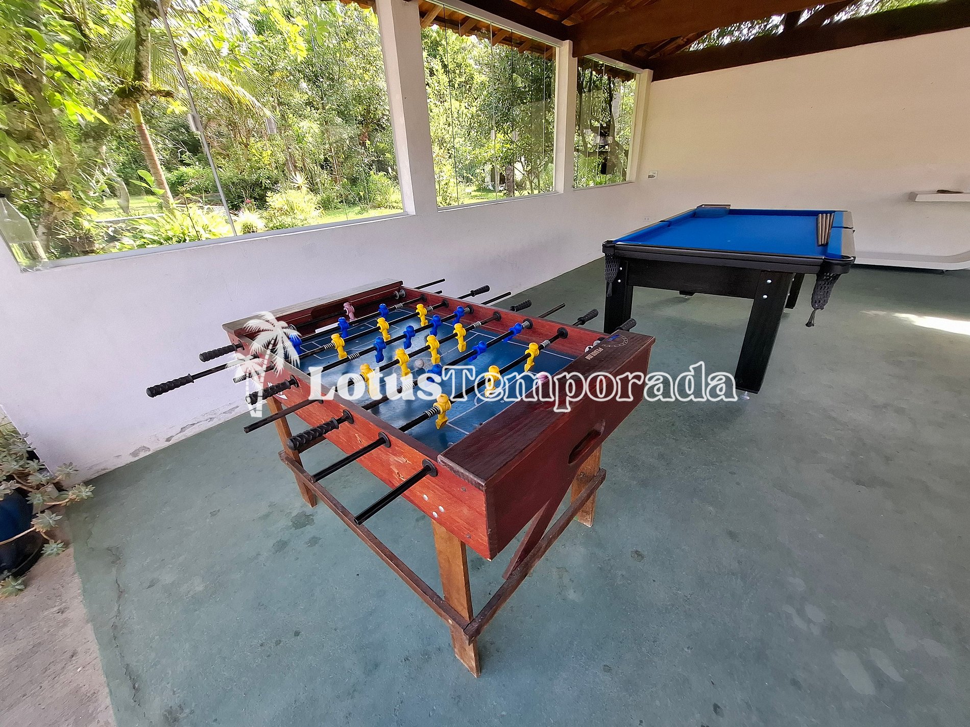 • Salão de jogos com mesa de sinuca e pebolim para diversão garantida.
