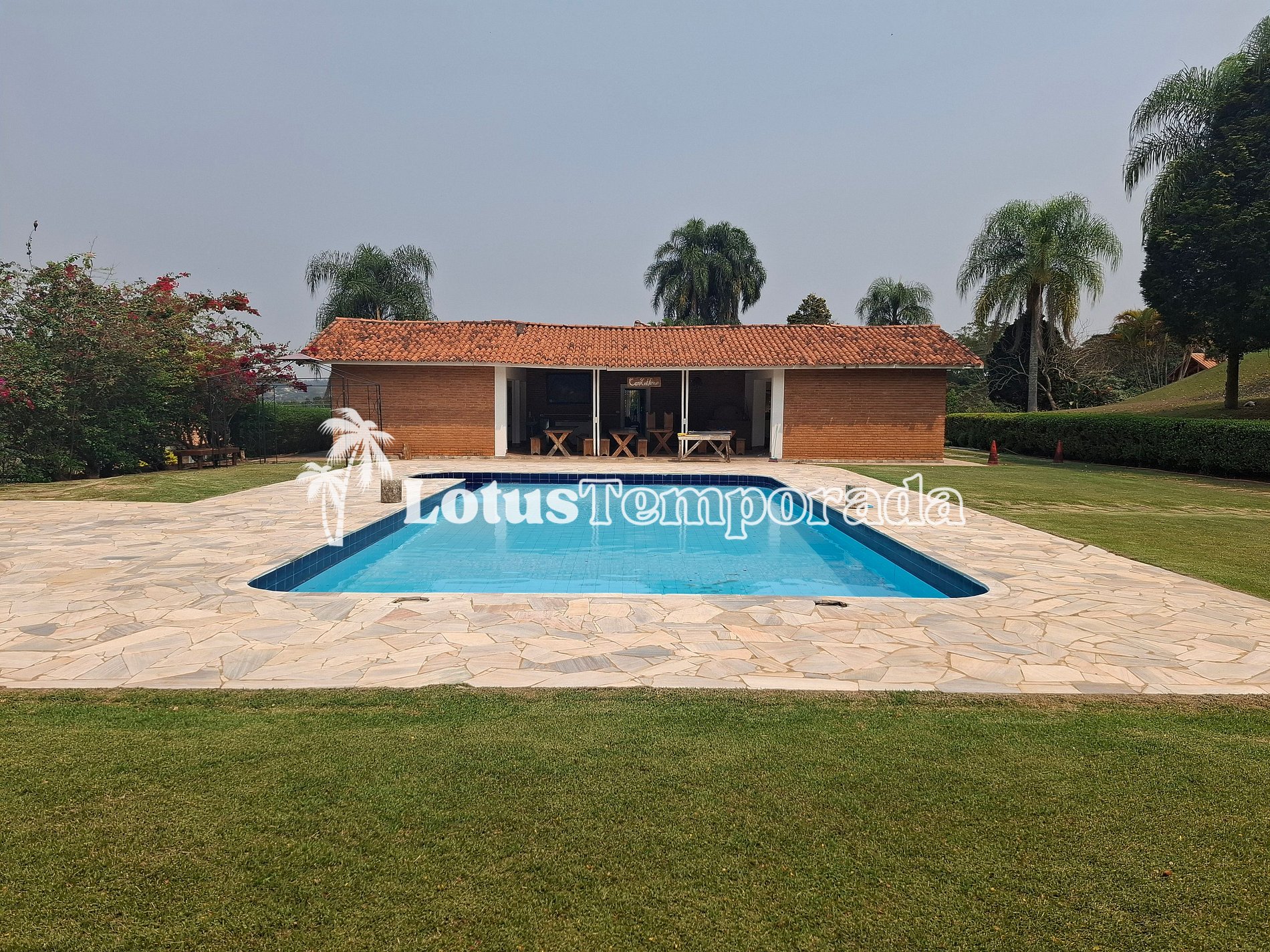Hospede 160 pessoas com conforto! Chácara ideal para eventos, casamentos, igrejas e empresas. Estrutura completa com salão de festas, piscina, campo de futebol, salão de jogos, suítes, área gourmet e muito mais. Viva momentos inesquecíveis com lazer e natureza!