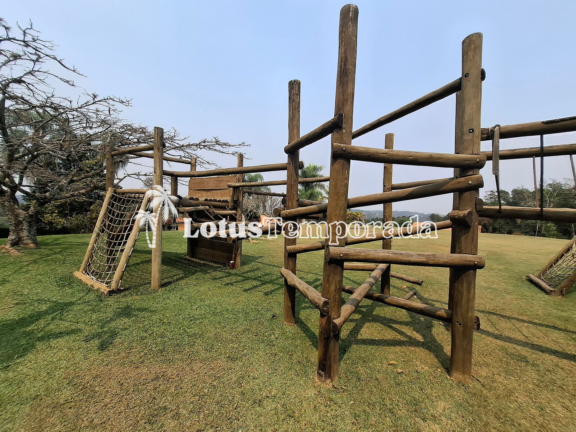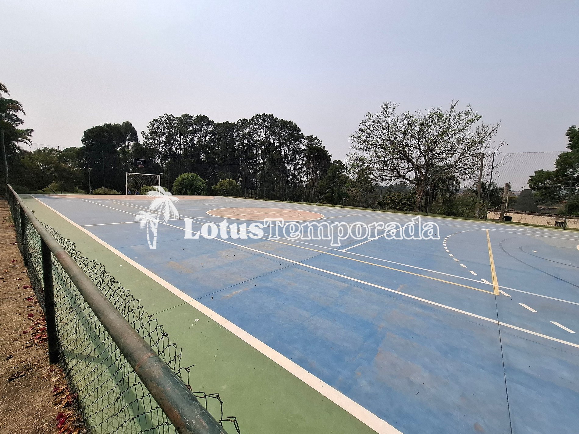 Para os momentos de lazer, a chácara oferece uma piscina ampla, salão de jogos com sinuca e ping pong, quadra de futsal, campo de futebol gramado para jogos em grupos grandes, além de playground completo para crianças e área com fogueira — perfeita para noites agradáveis ao ar livre.