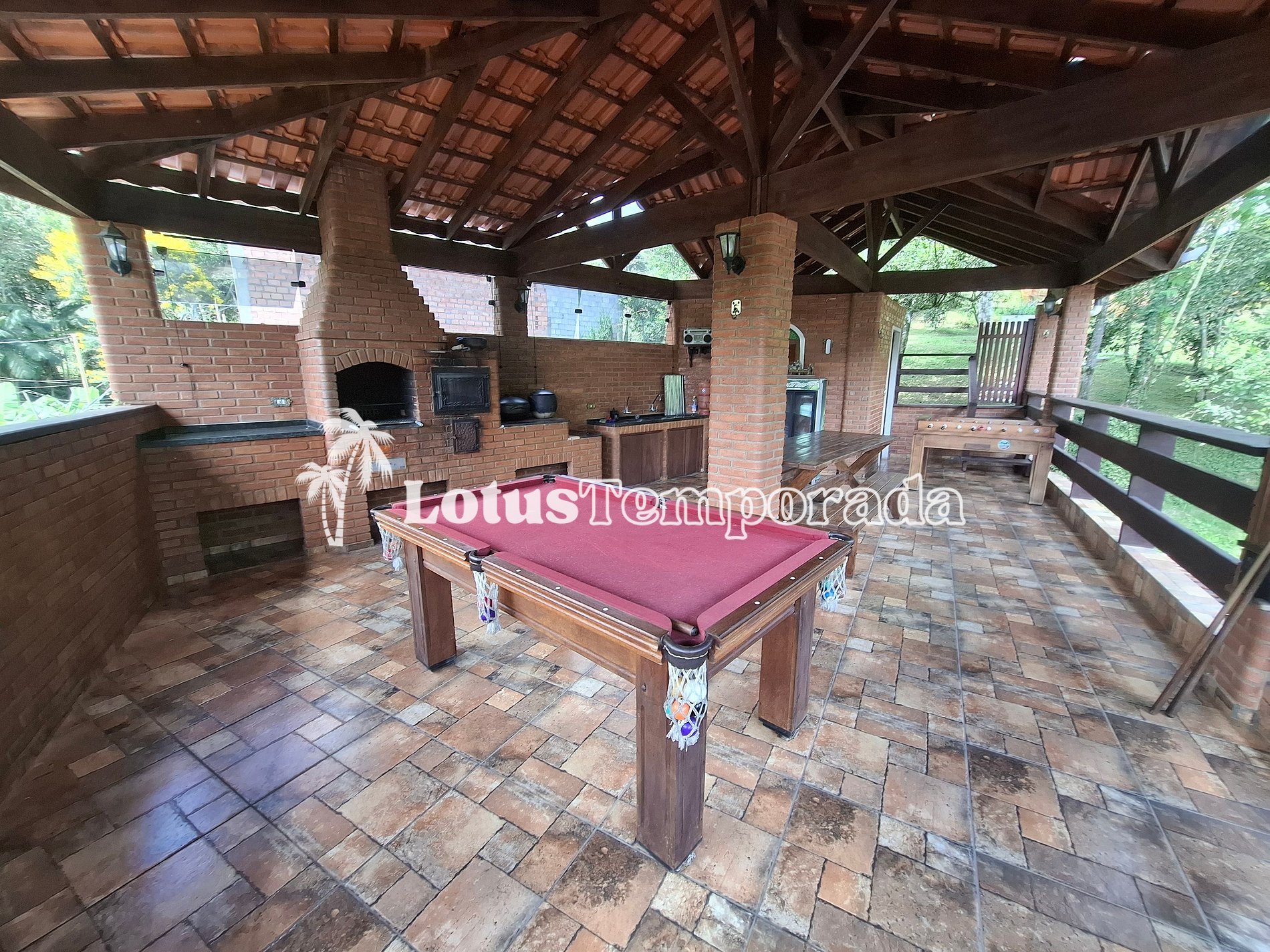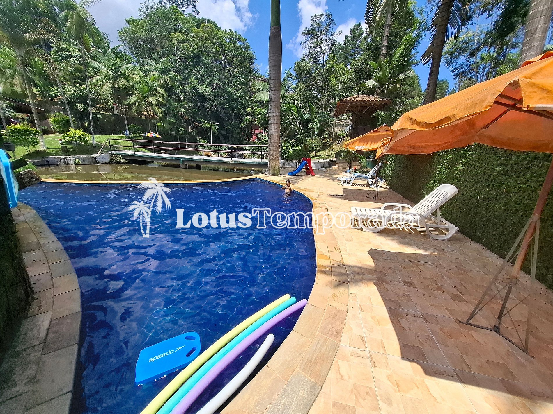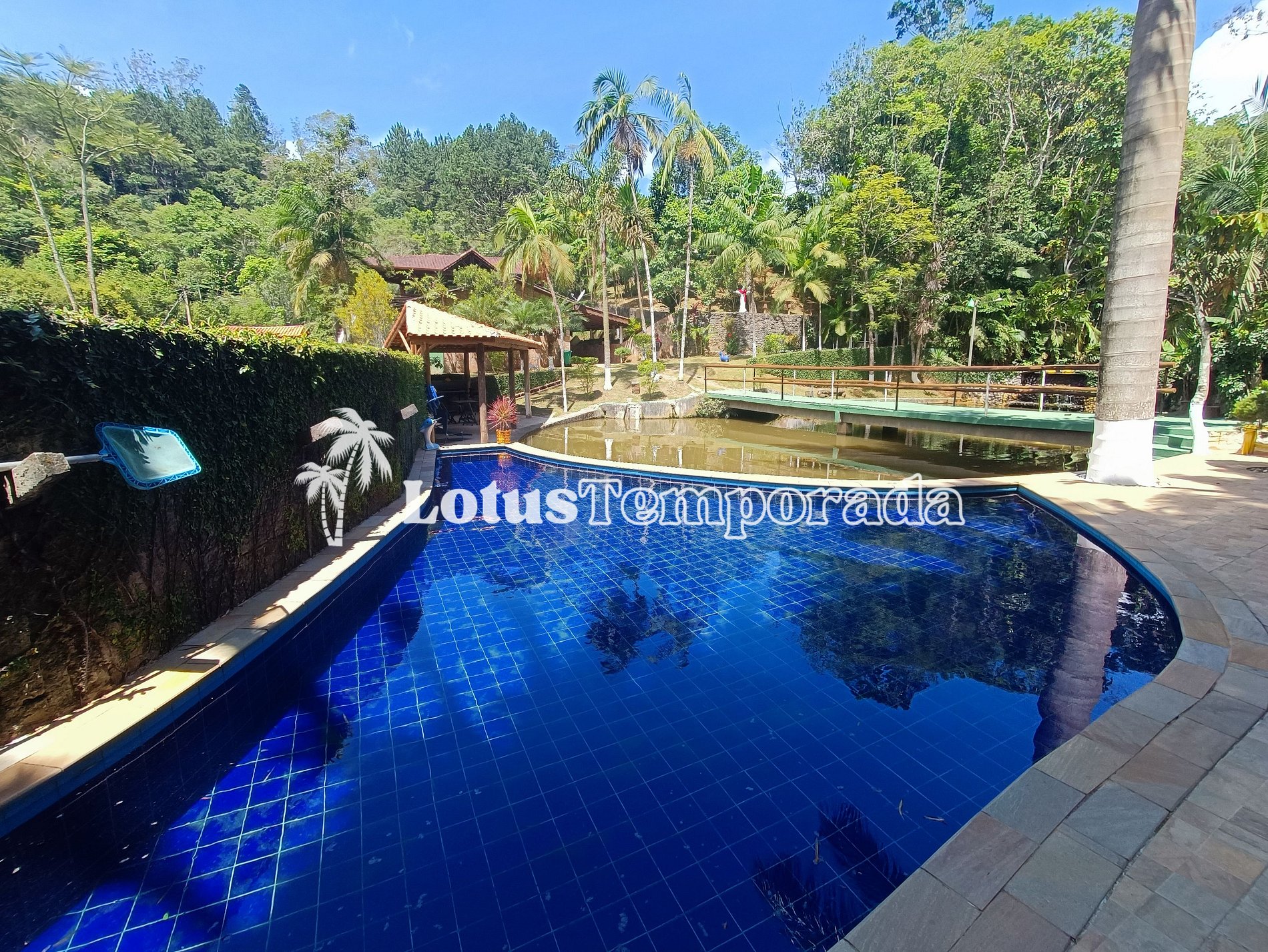 Linda chácara em Juquitiba para grupo familiar, casa sede com 02 dormitórios, sala, cozinha e 01 wc social, 02 suítes externa, área gourmet com churrasqueira, fogão a lenha, forno, geladeira, mesa de sinuca, pebolim e 01 wc social, pomar com horta para consumo no local, playground, piscina e lago para pesca esportiva.