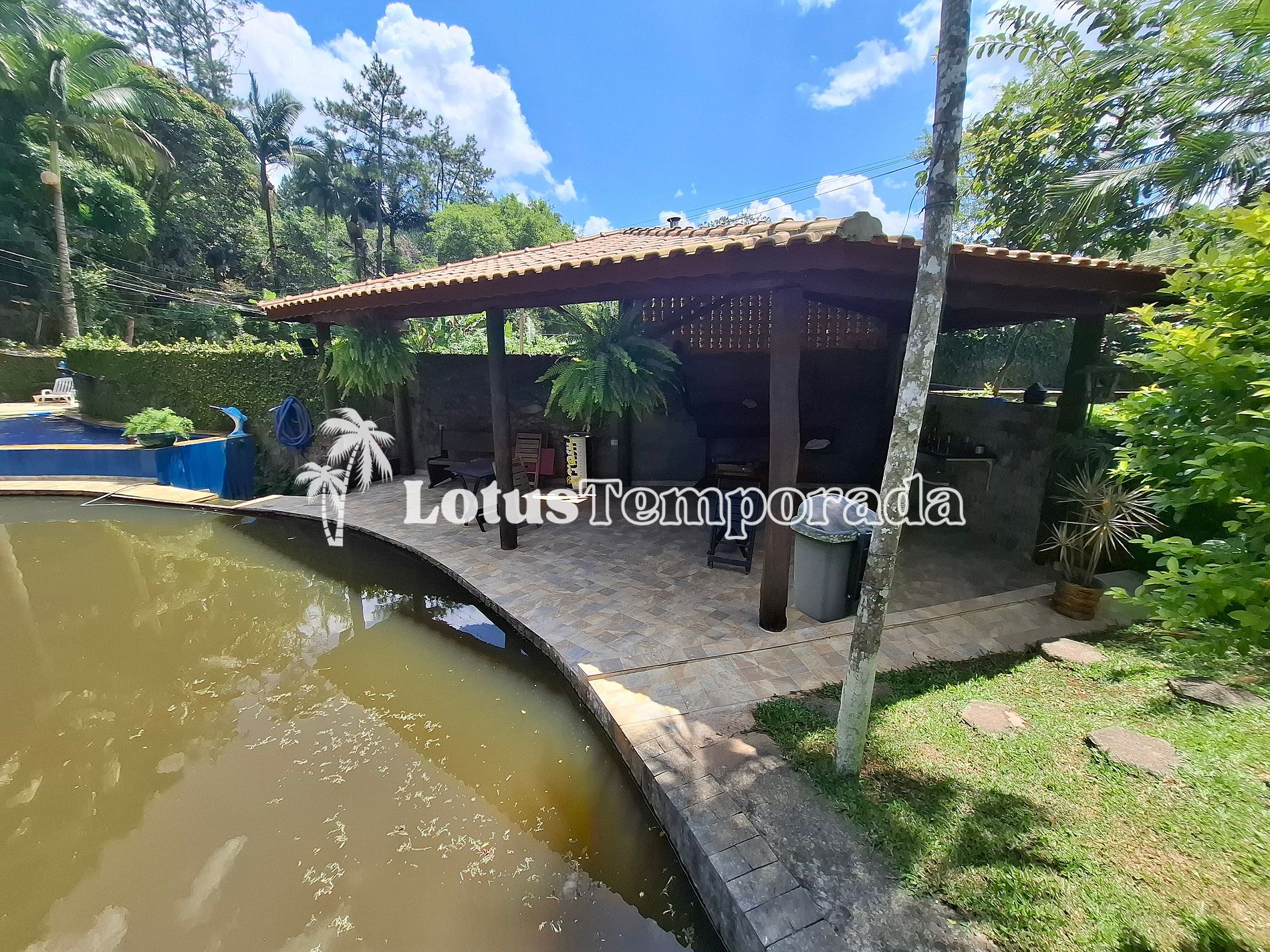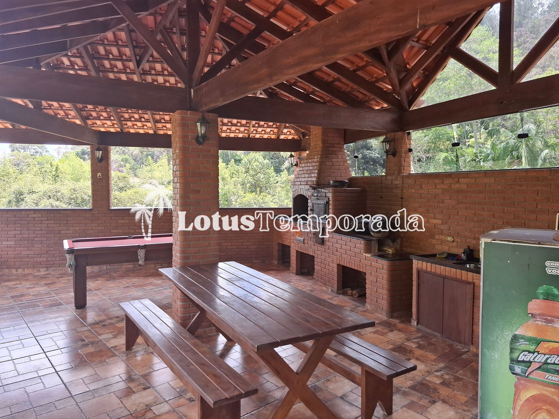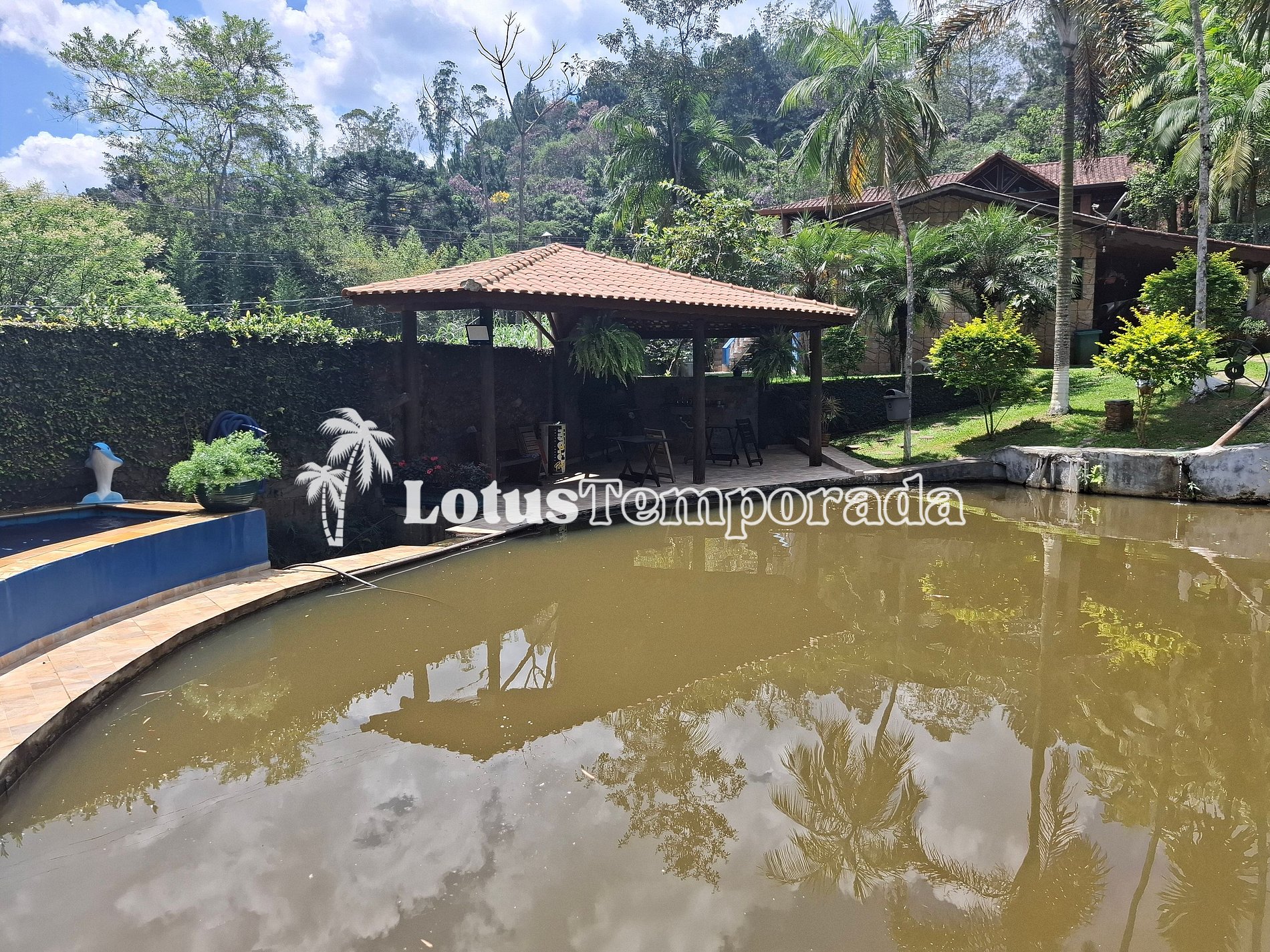 Linda chácara em Juquitiba para grupo familiar, casa sede com 02 dormitórios, sala, cozinha e 01 wc social, 02 suítes externa, área gourmet com churrasqueira, fogão a lenha, forno, geladeira, mesa de sinuca, pebolim e 01 wc social, pomar com horta para consumo no local, playground, piscina e lago para pesca esportiva.