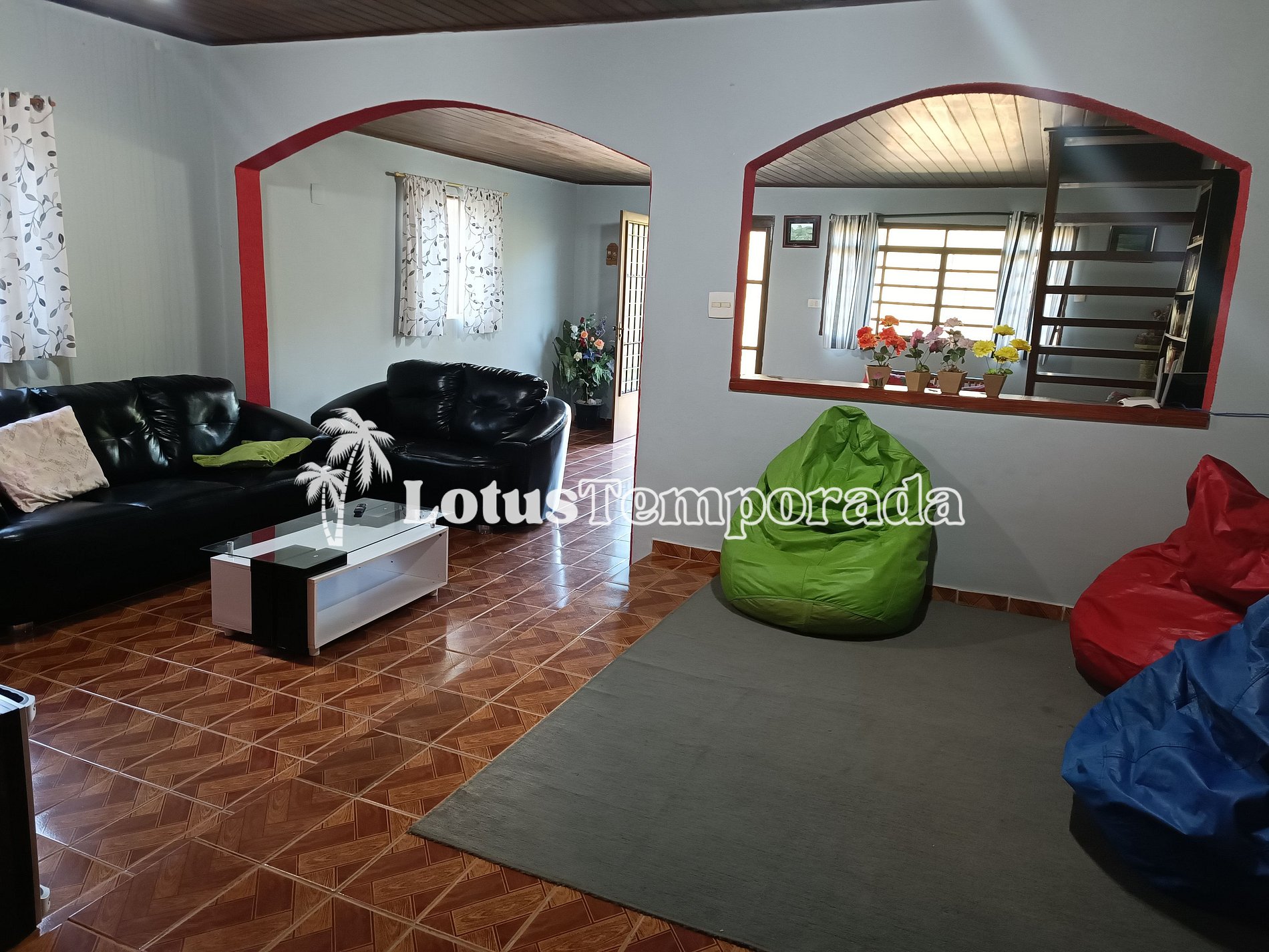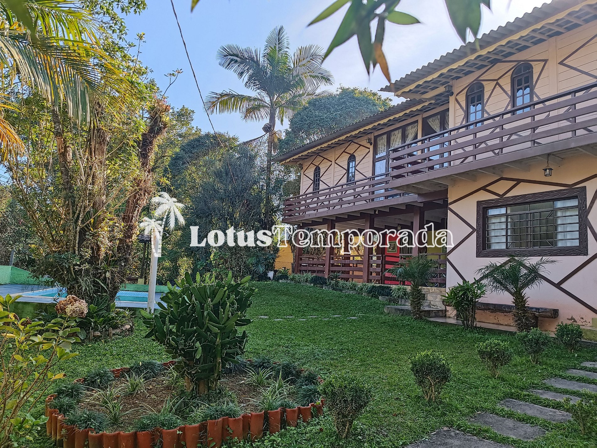 Casa sede em dois andares, sendo o andar térreo com 03 dormitórios sendo 02 suítes, 01 WC social, sala ampla com sofá, TV com Youtube e Netflix, Wi-fi, 01 cozinha com armário e mesa dentro da casa, 01 cozinha externa próximo a churrasqueira com uma geladeira, fogão, utensílios. No andar de cima são 02 dormitórios, 01 lavabo e uma linda varanda com uma vista para a piscina. Lindo jardim, piscina, área ao ar livre com churrasqueira, excelente localização 700 metros da rodovia Régis Bittencourt.