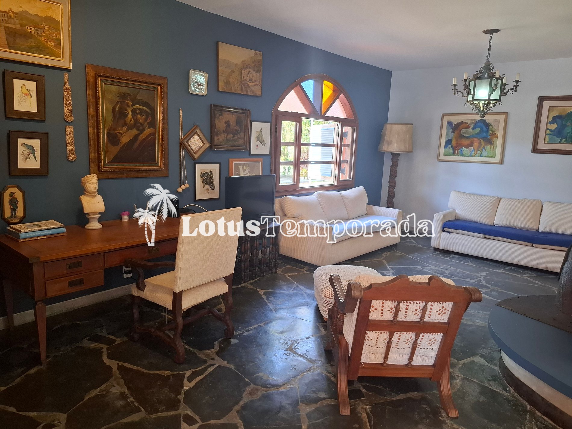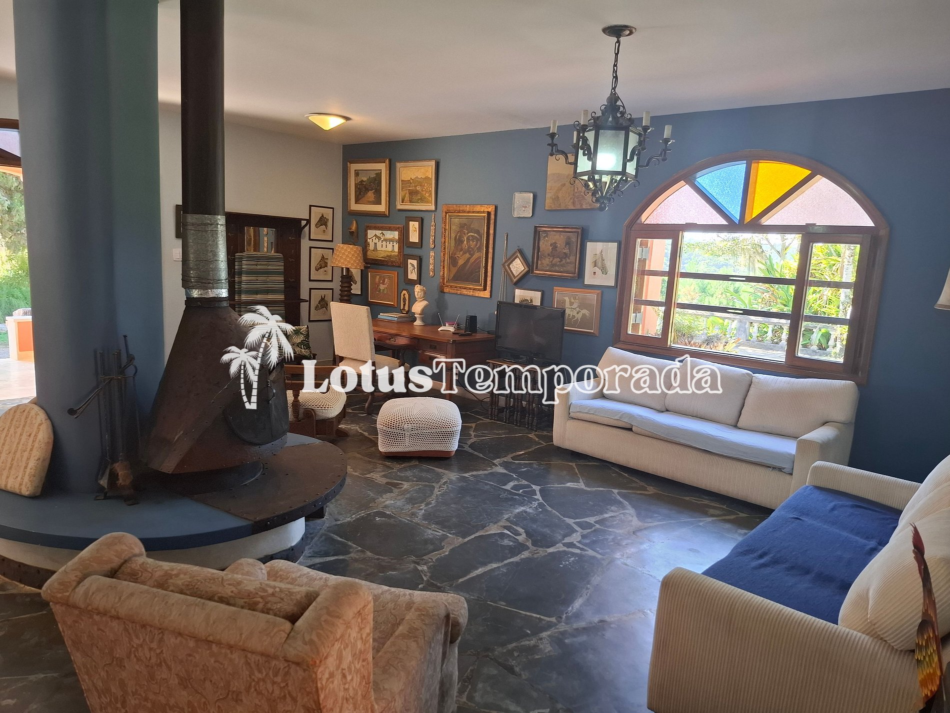 • Sala de estar com jogo de sofá cama rústico;