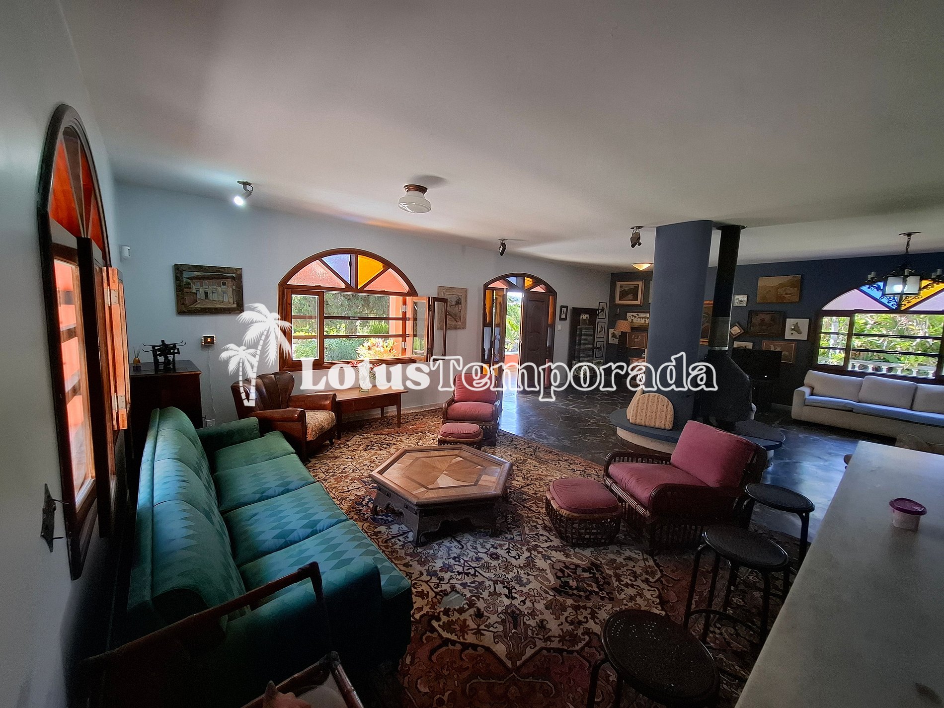Em relação ao lugar, simplesmente é muito lindo. A casa é muito única com decorações peculiares e super interessantes. Os quartos e banheiros muito limpos e confortáveis, muuuito espaço pra curtir com as pessoas tanto dentro quanto fora da casa. Infelizmente não conseguimos entrar na piscina pois o tempo fechou e choveu demais, mas nas pausas da chuva pudemos aproveitar a quadra de tênis por bastante tempo.