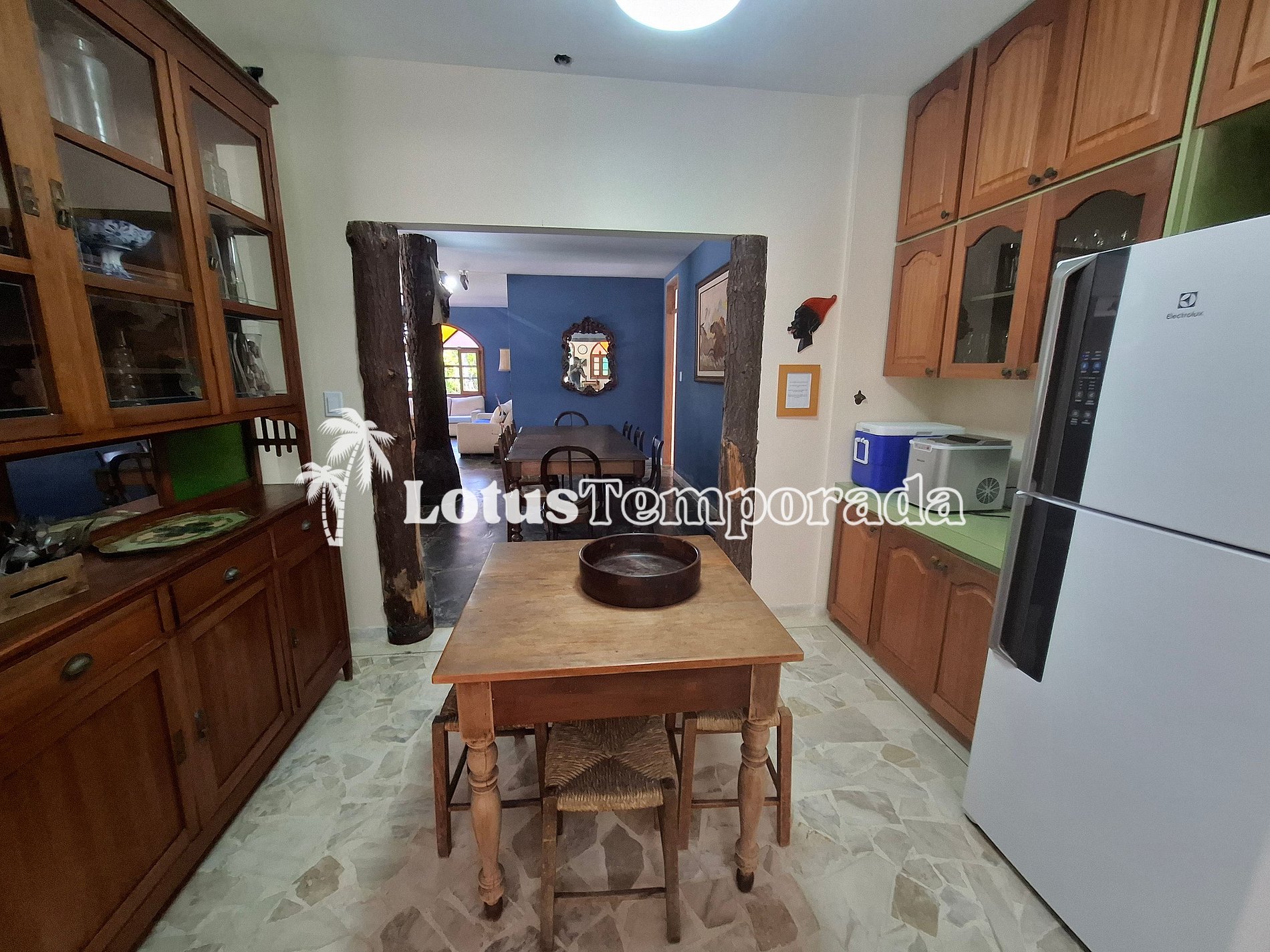 • Sala de Jantar com mesa de madeira de 8 lugares;
