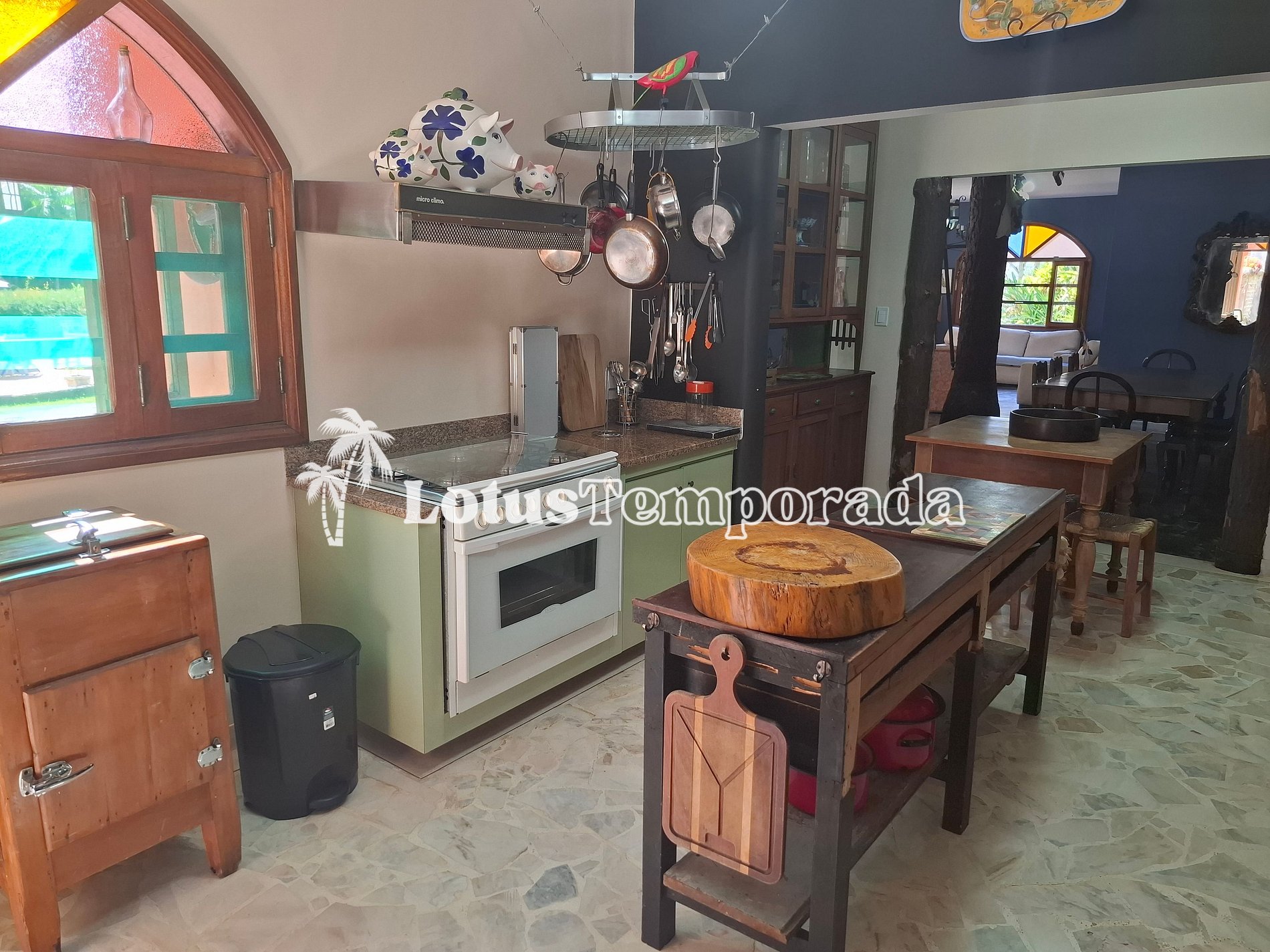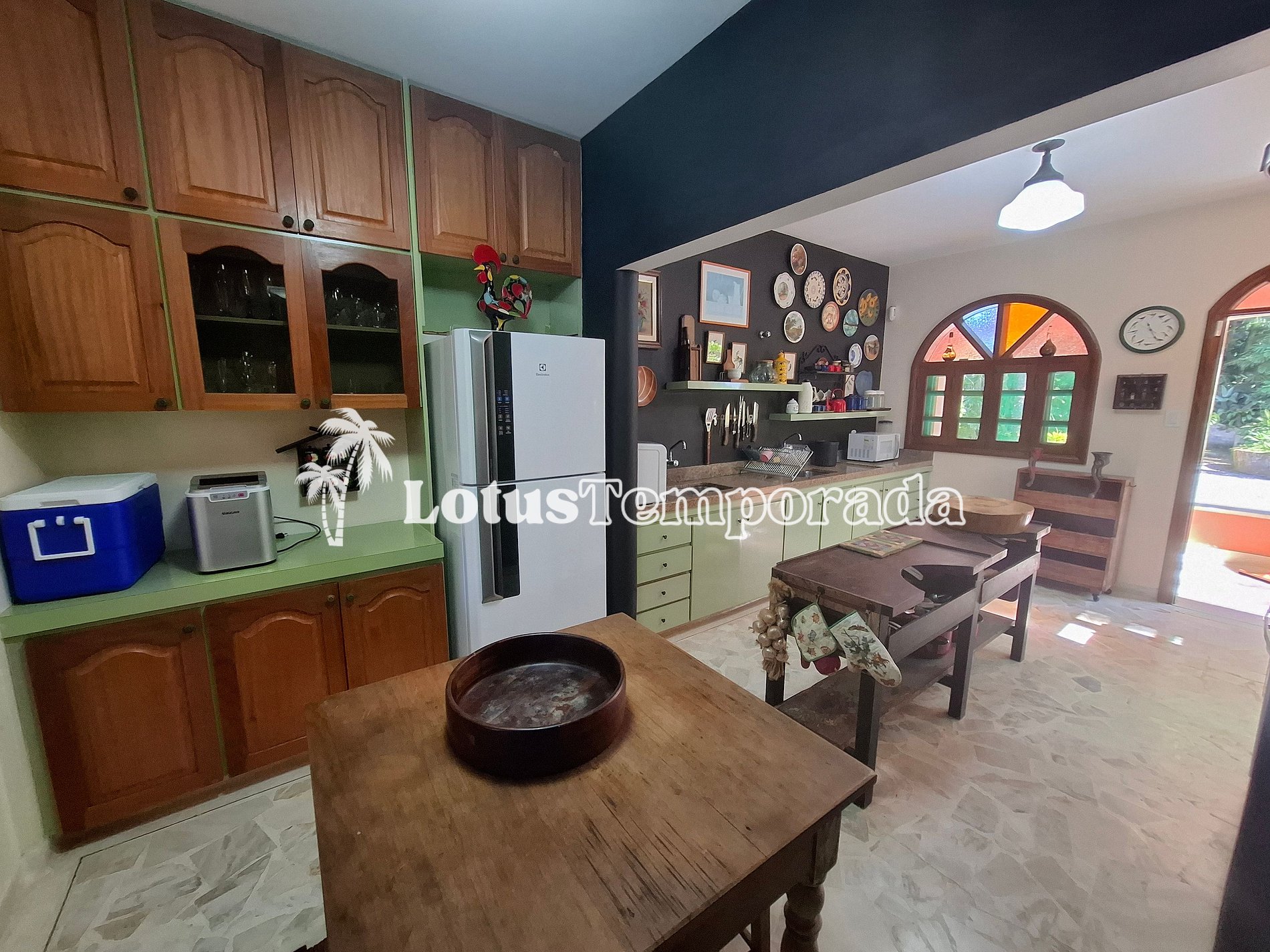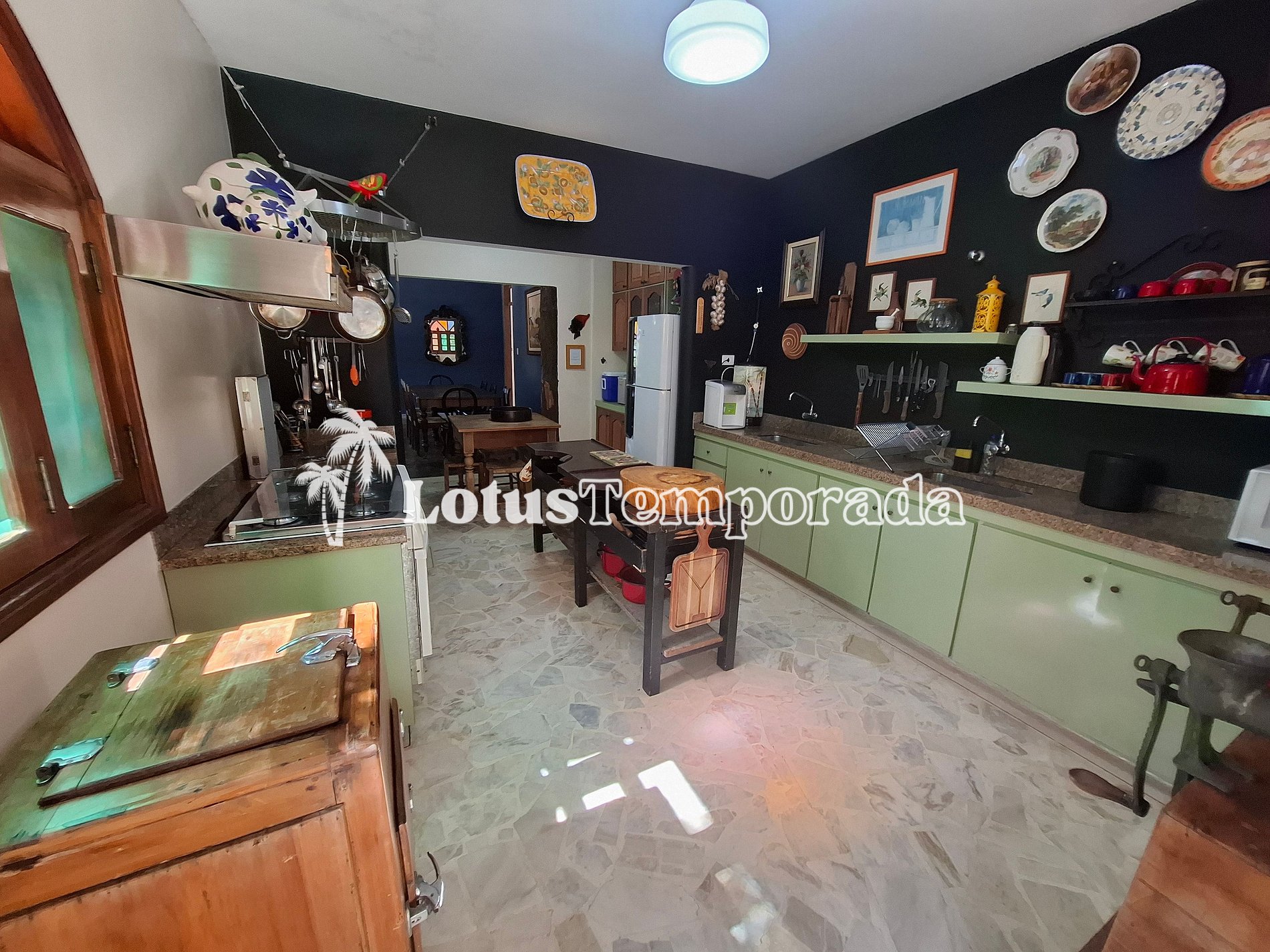 • Cozinha com utensílios básicos, pia dupla, geladeira duplex, micro-ondas, bebedouro, air fryer, máquina de gelo suggar e fogão de 6 bocas com forno,