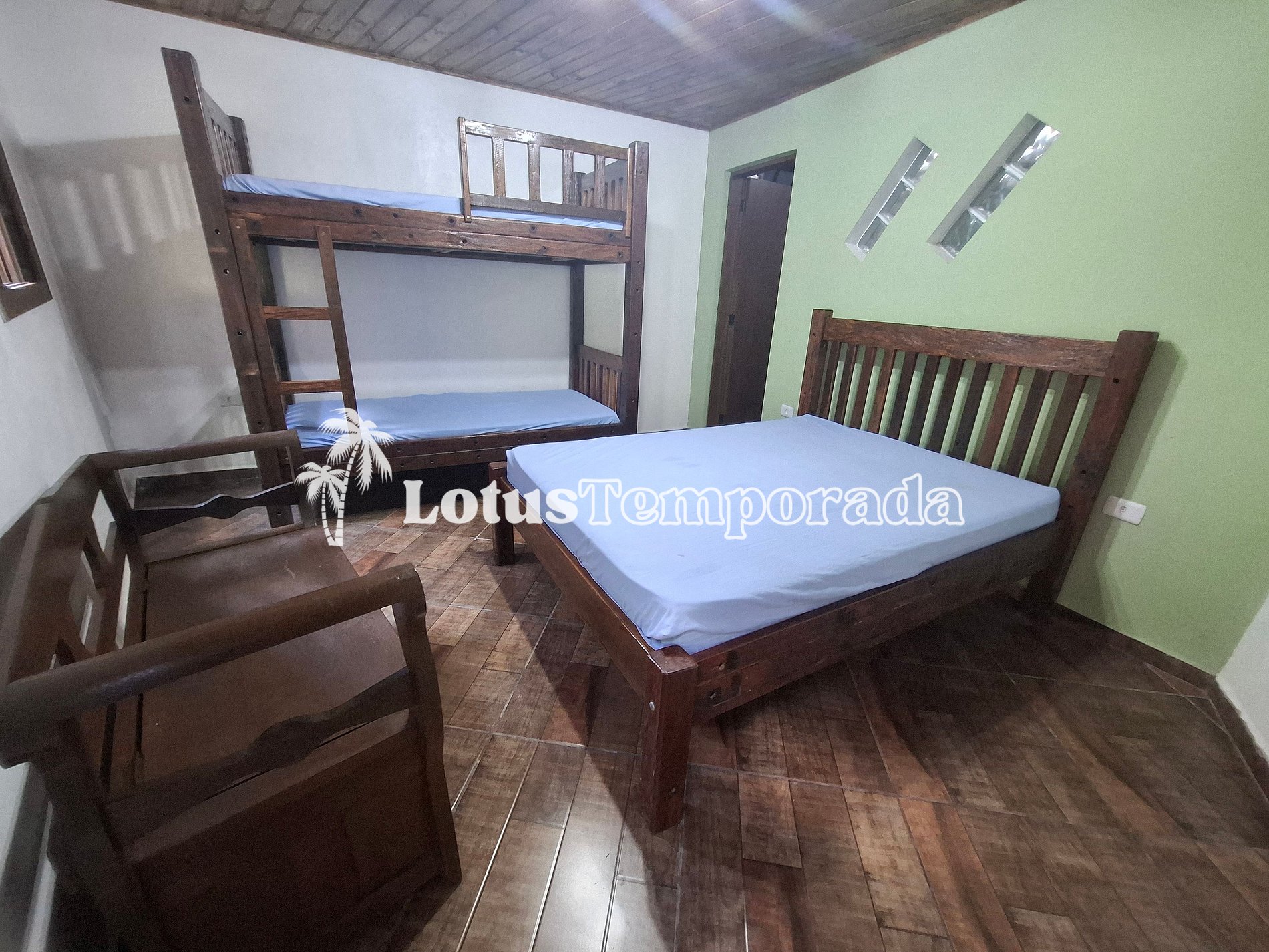 • 02 dormitórios internos, ambos com 01 cama de casal e 01 beliche.