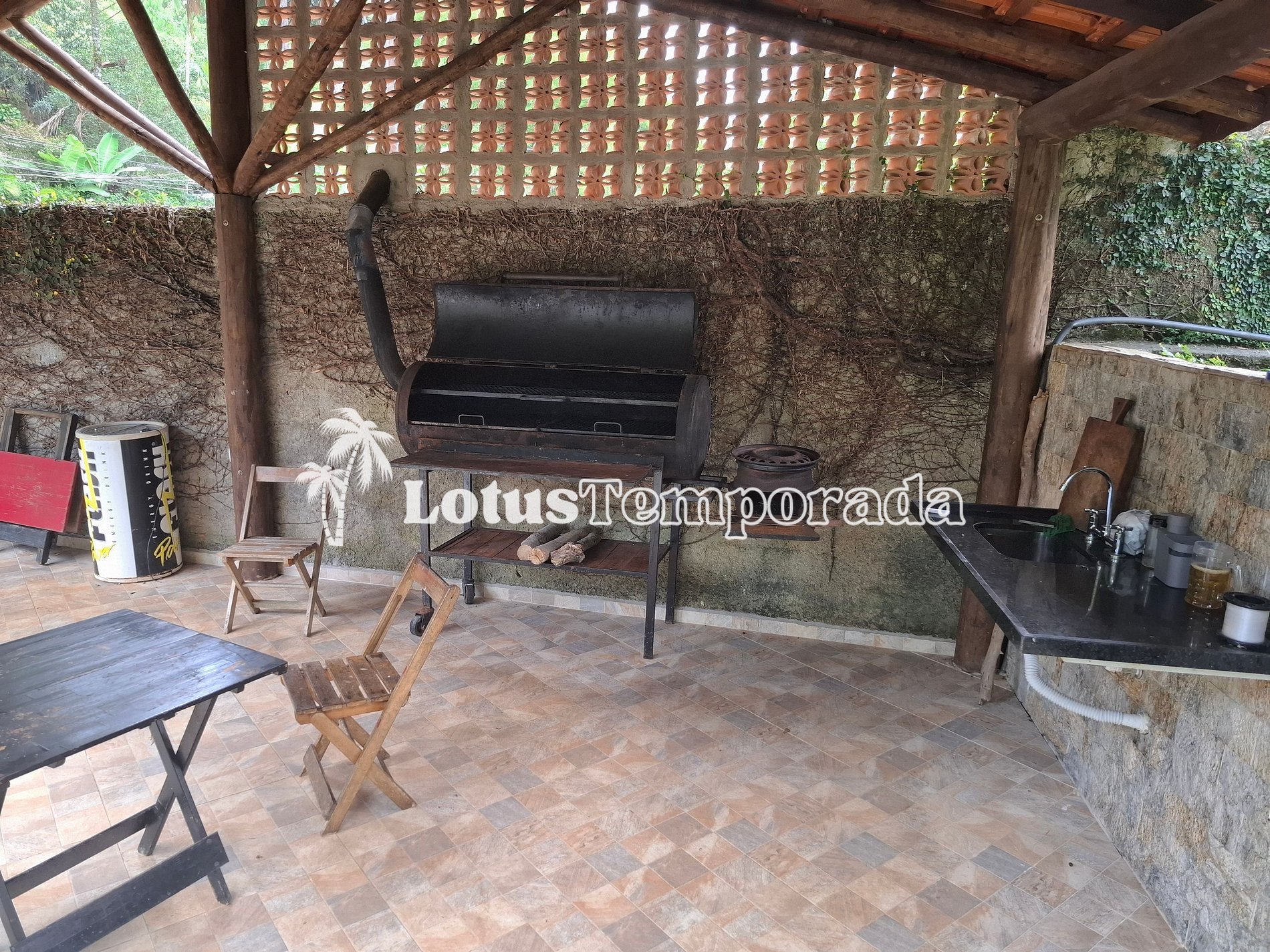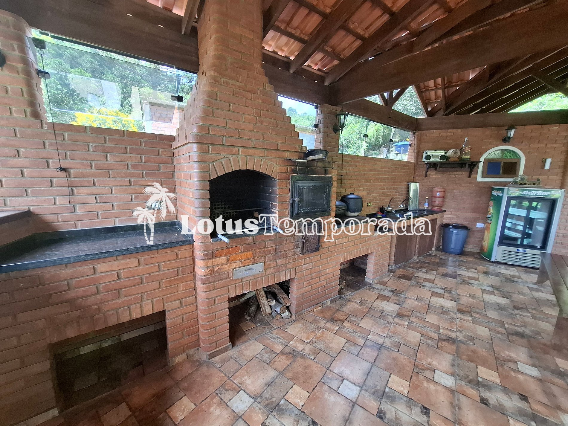 • Churrasqueira, forno e fogão a lenha para aquele sabor especial das refeições feitas no campo.