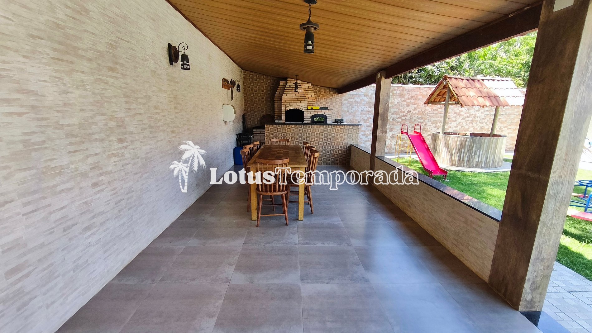 A área de lazer é um destaque, com espaço gourmet completo, equipado com churrasqueira, fogão e forno a lenha, ideal para confraternizações. Para as crianças, o playground garante diversão com segurança.